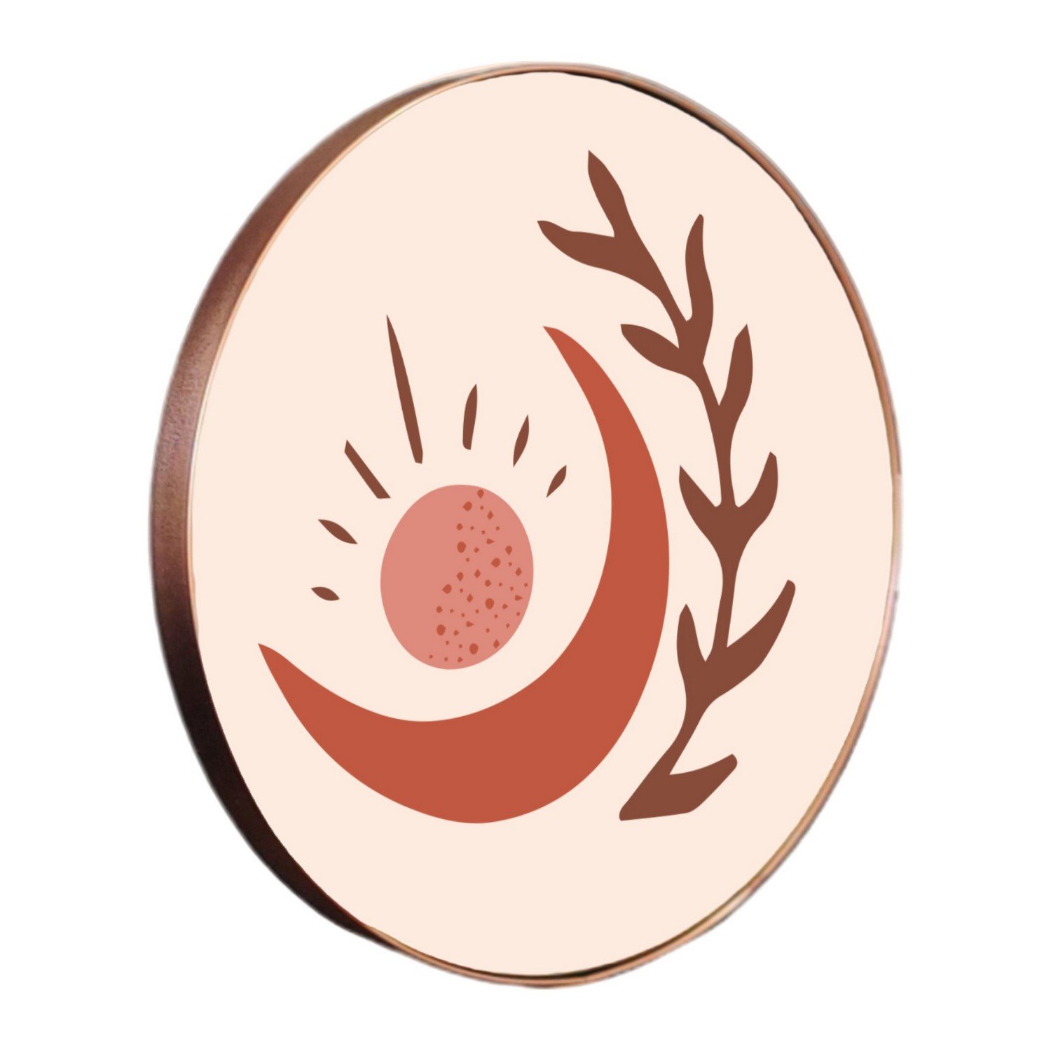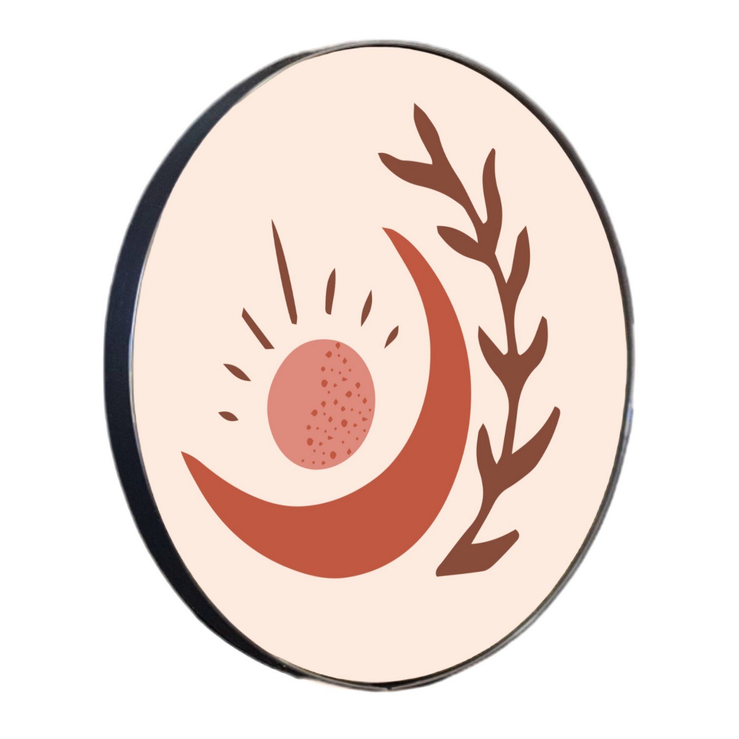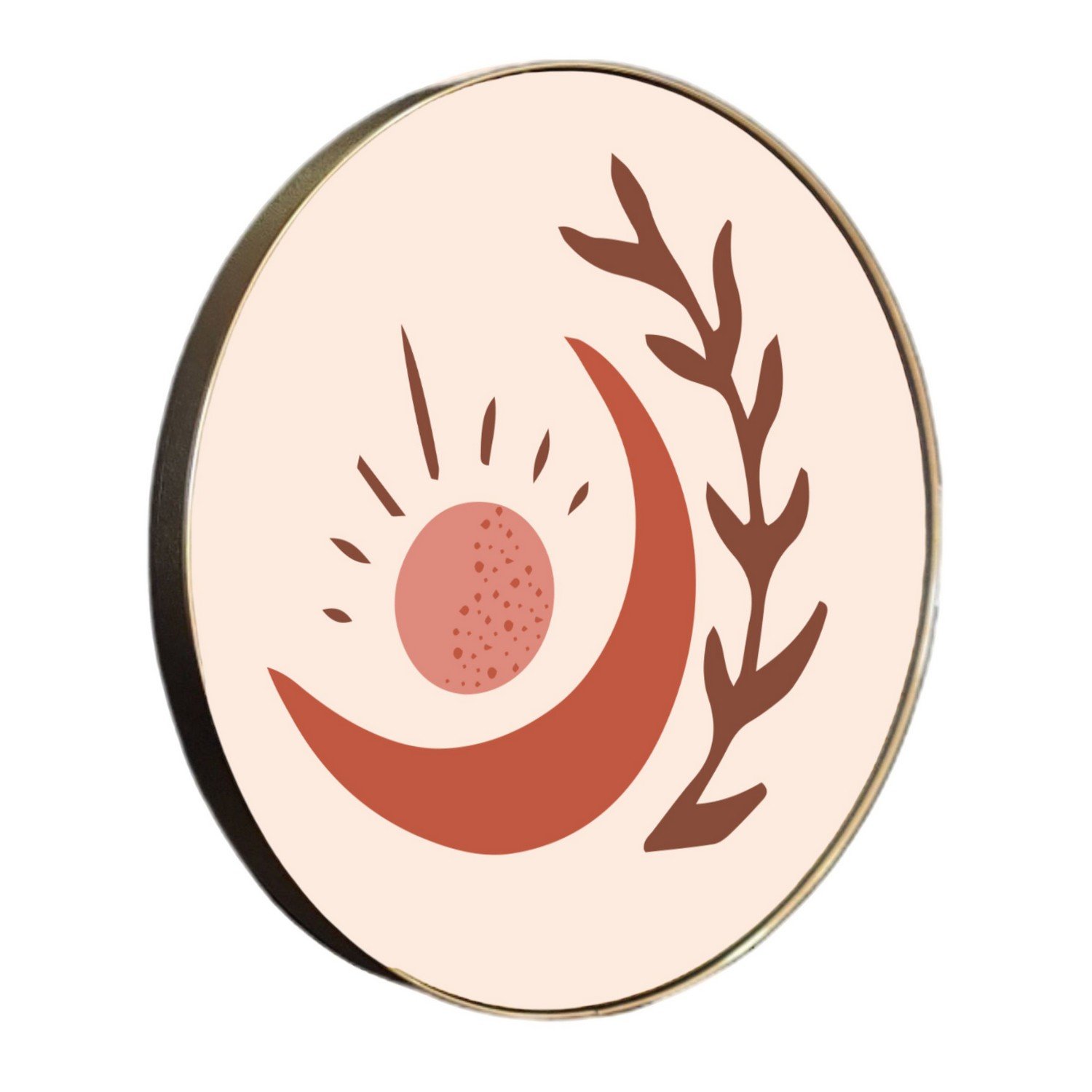 Quadro Decorativo Redondo Lua e Folha com Moldura Flexível Metalizada