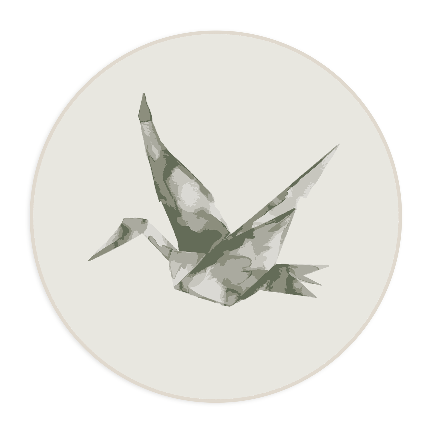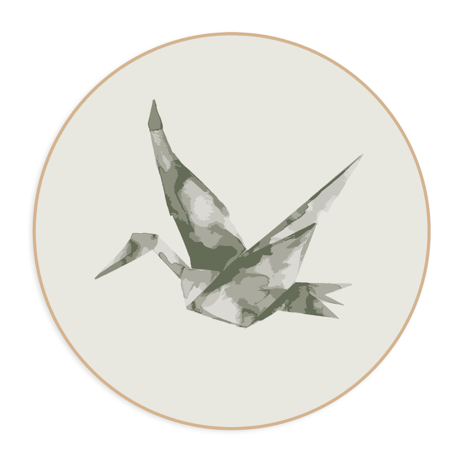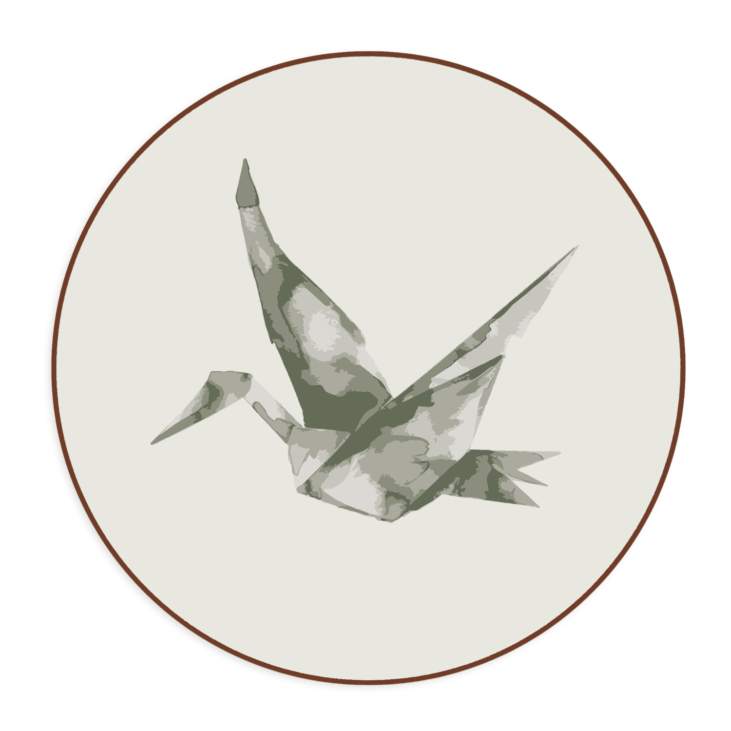 Quadro Decorativo Redondo Pássaro Tsuru Com Moldura Em Couro Sintético