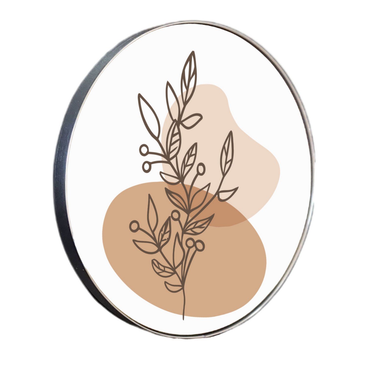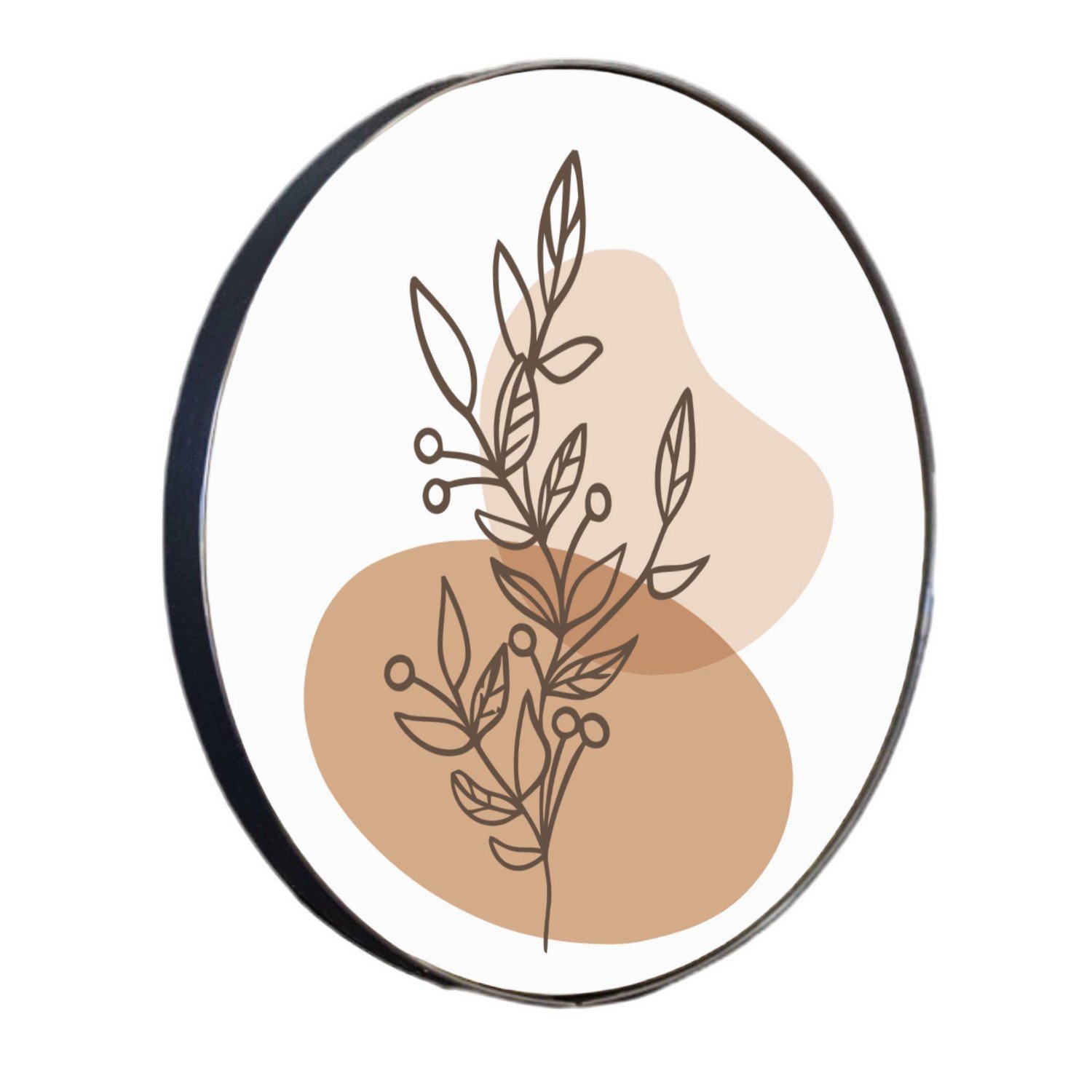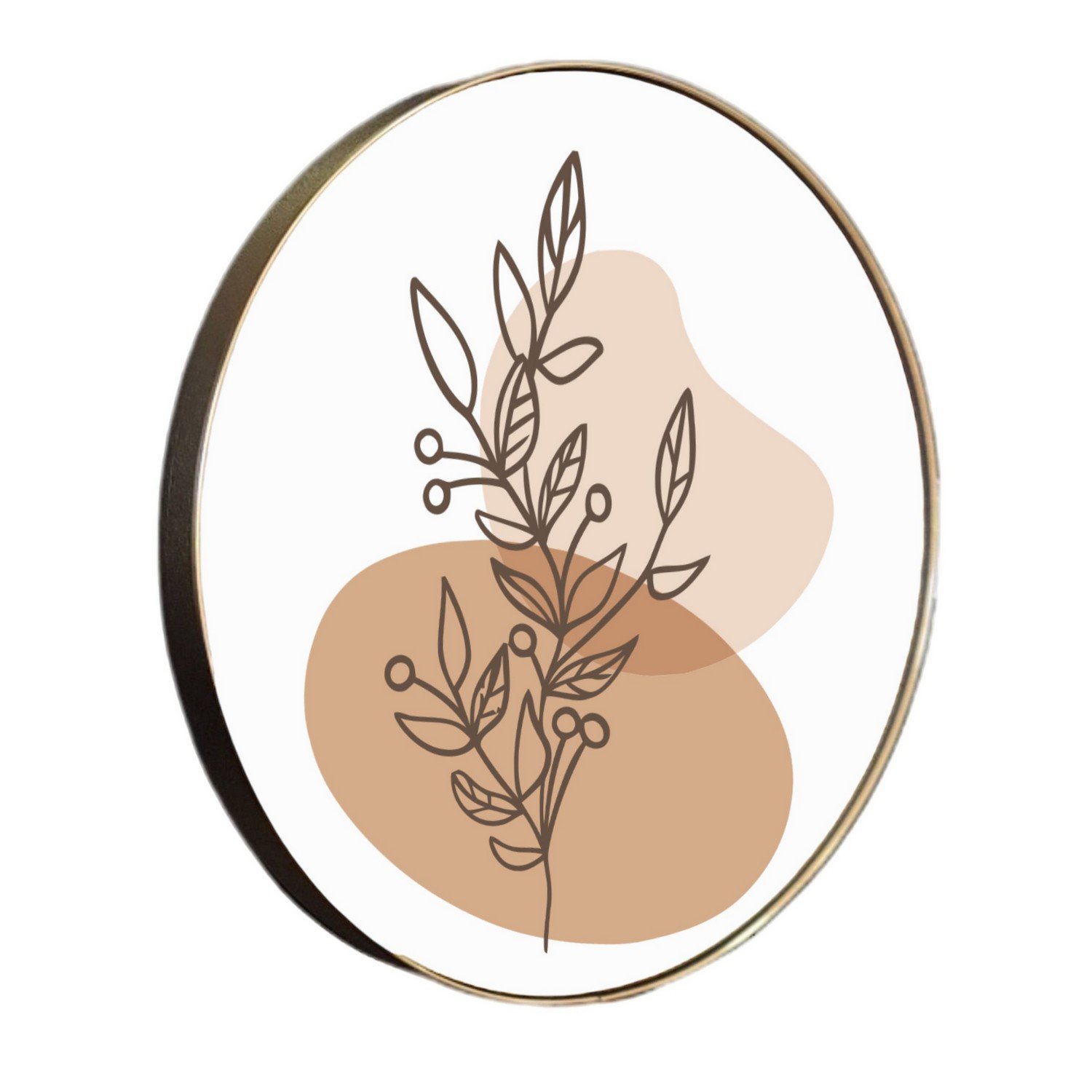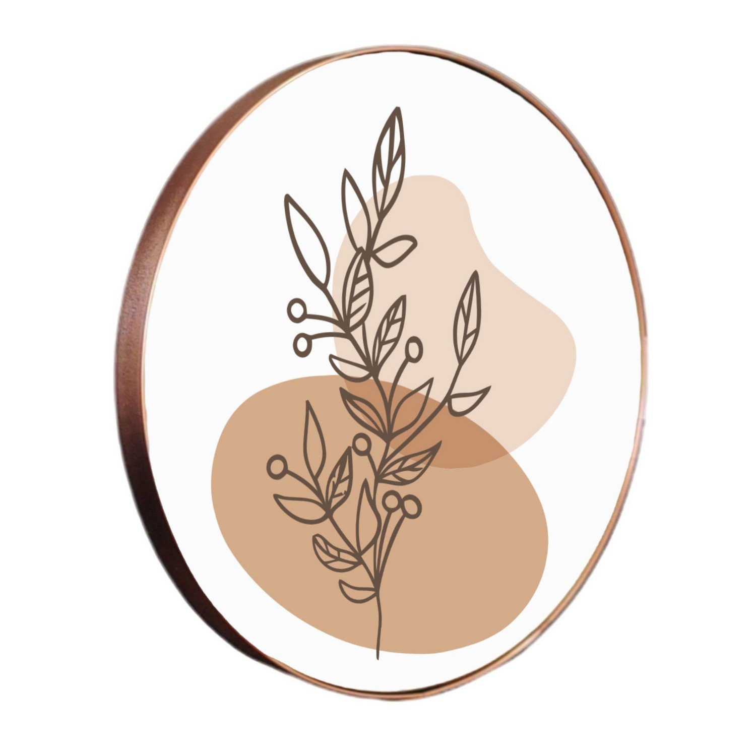 Quadro Decorativo Redondo Silhueta Folhagem com Moldura Flexível Metalizada