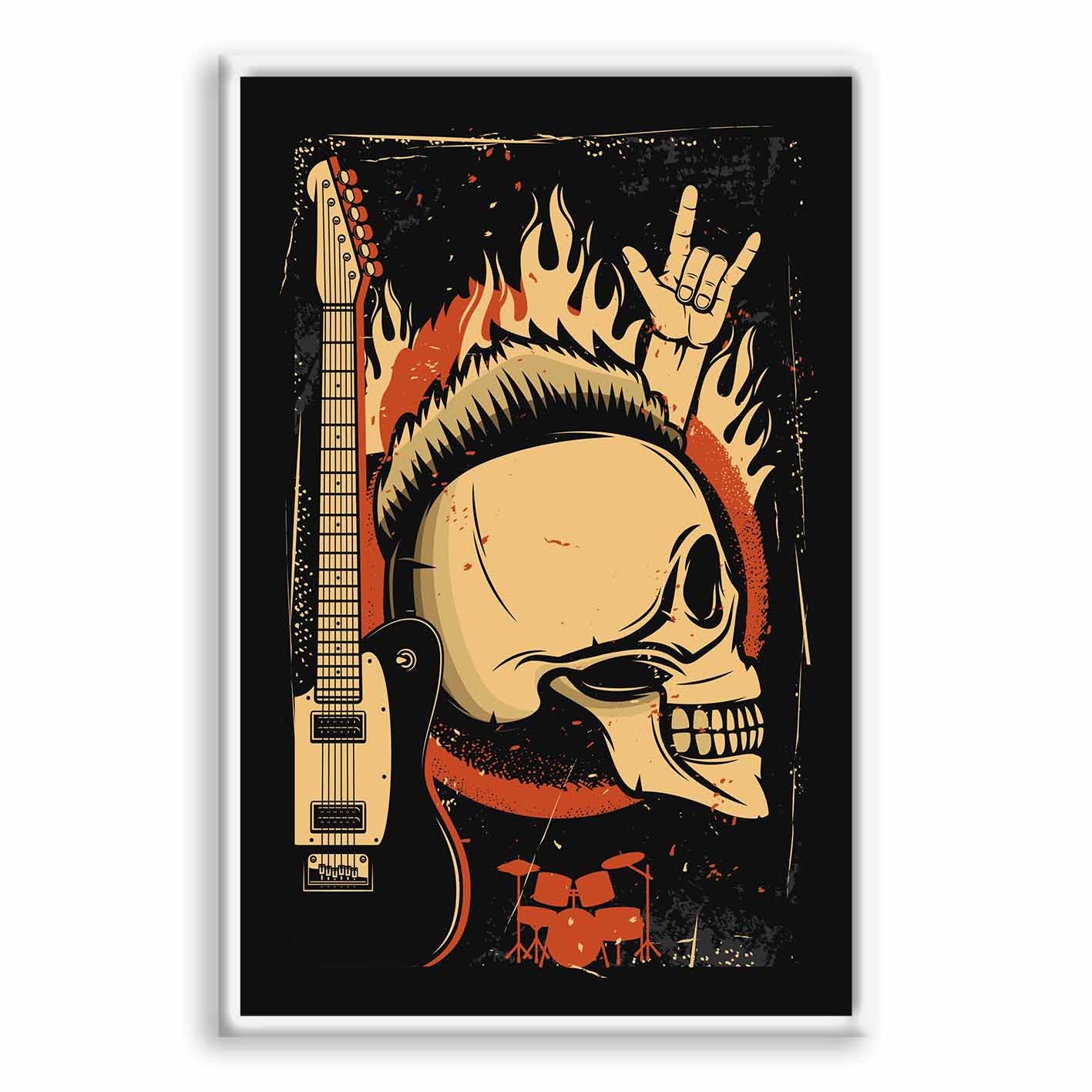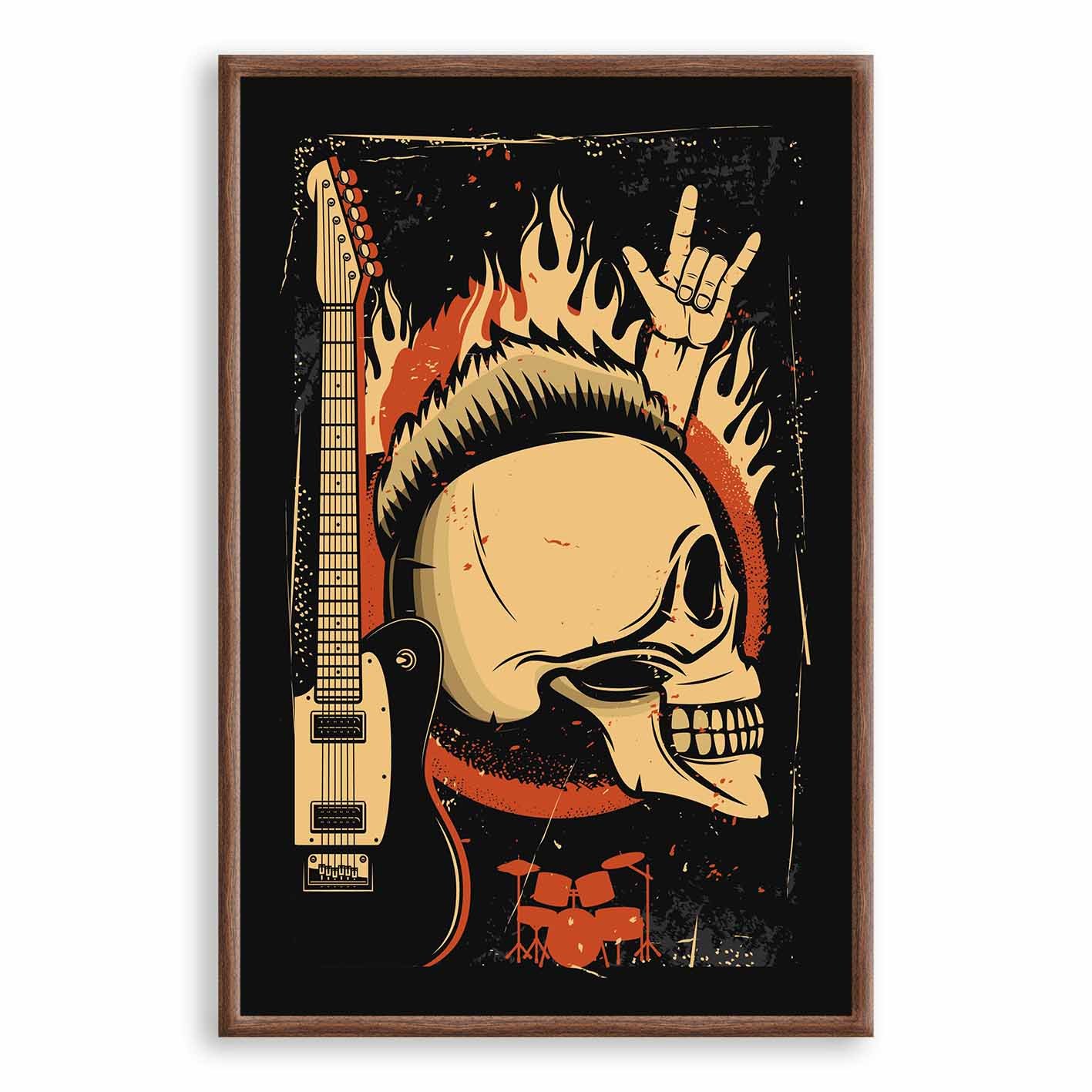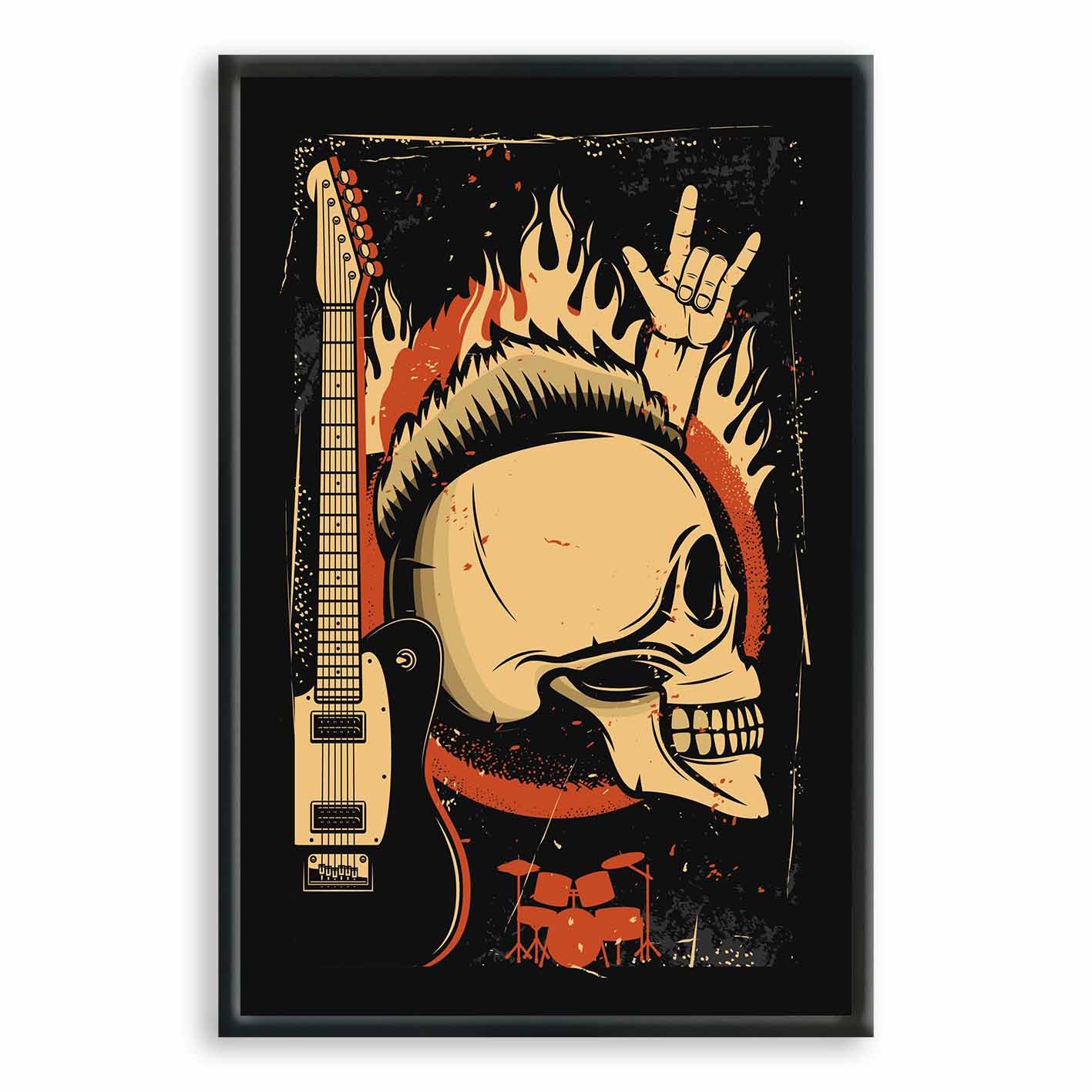 Quadro Decorativo Rock And Roll Crânio E Guitarra