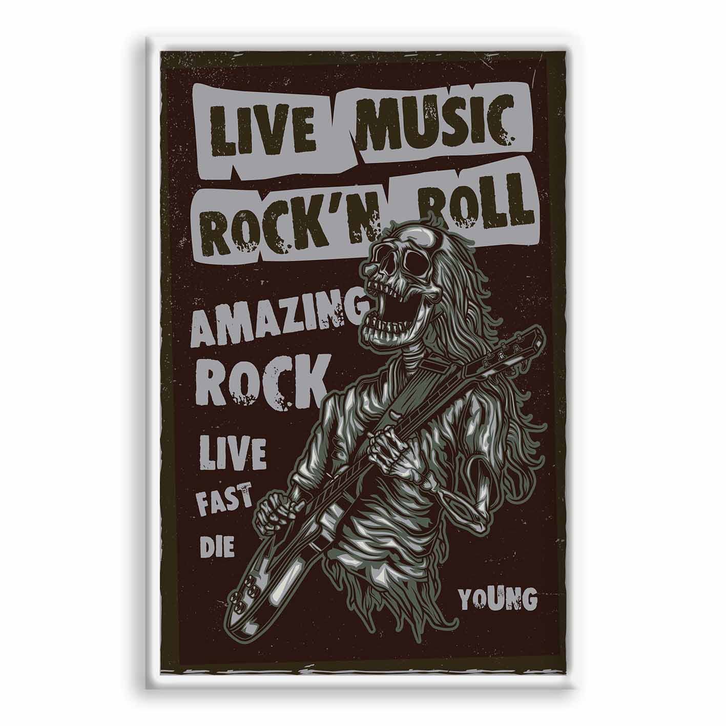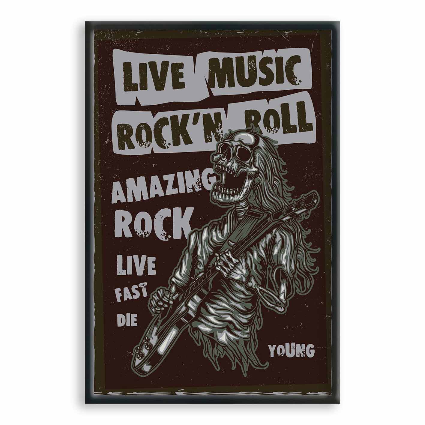 Quadro Decorativo Rock And Roll Live Music Esqueleto