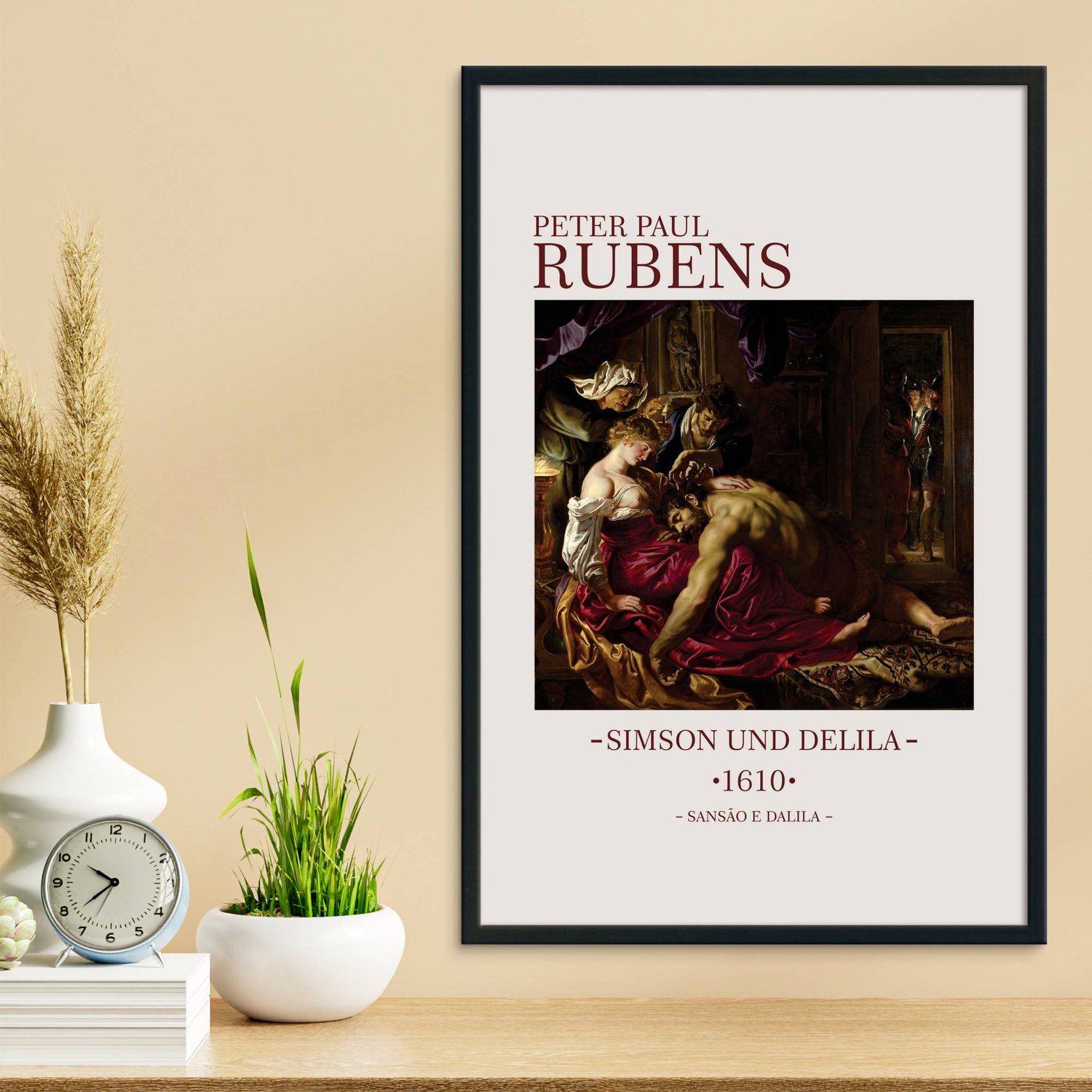O quadro mostra a história do velho testamento, representando o motivo da ruína de Sansão. Sua queda veio devido ao seu desejo pela filisteia Dalila, que o enganou e o fez revelar a fonte secreta da sua força: seu cabelo comprido.