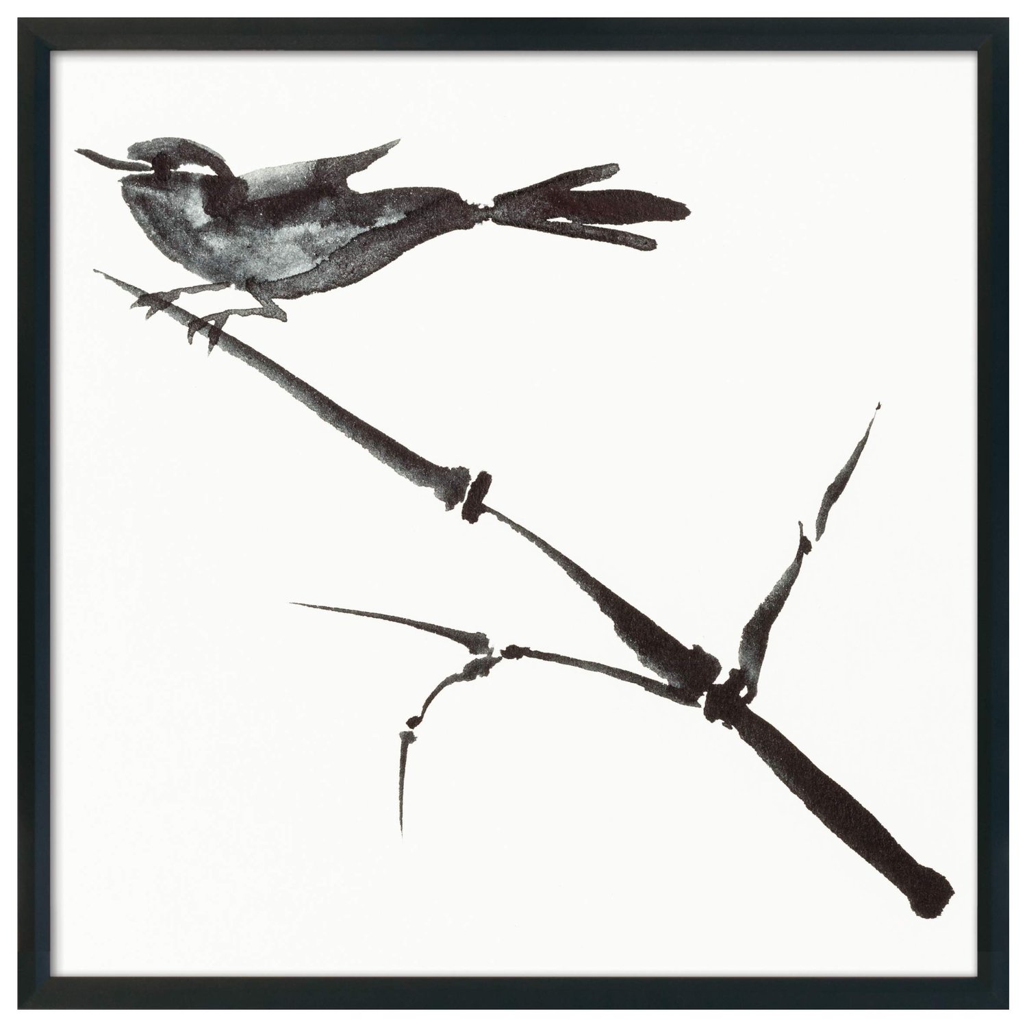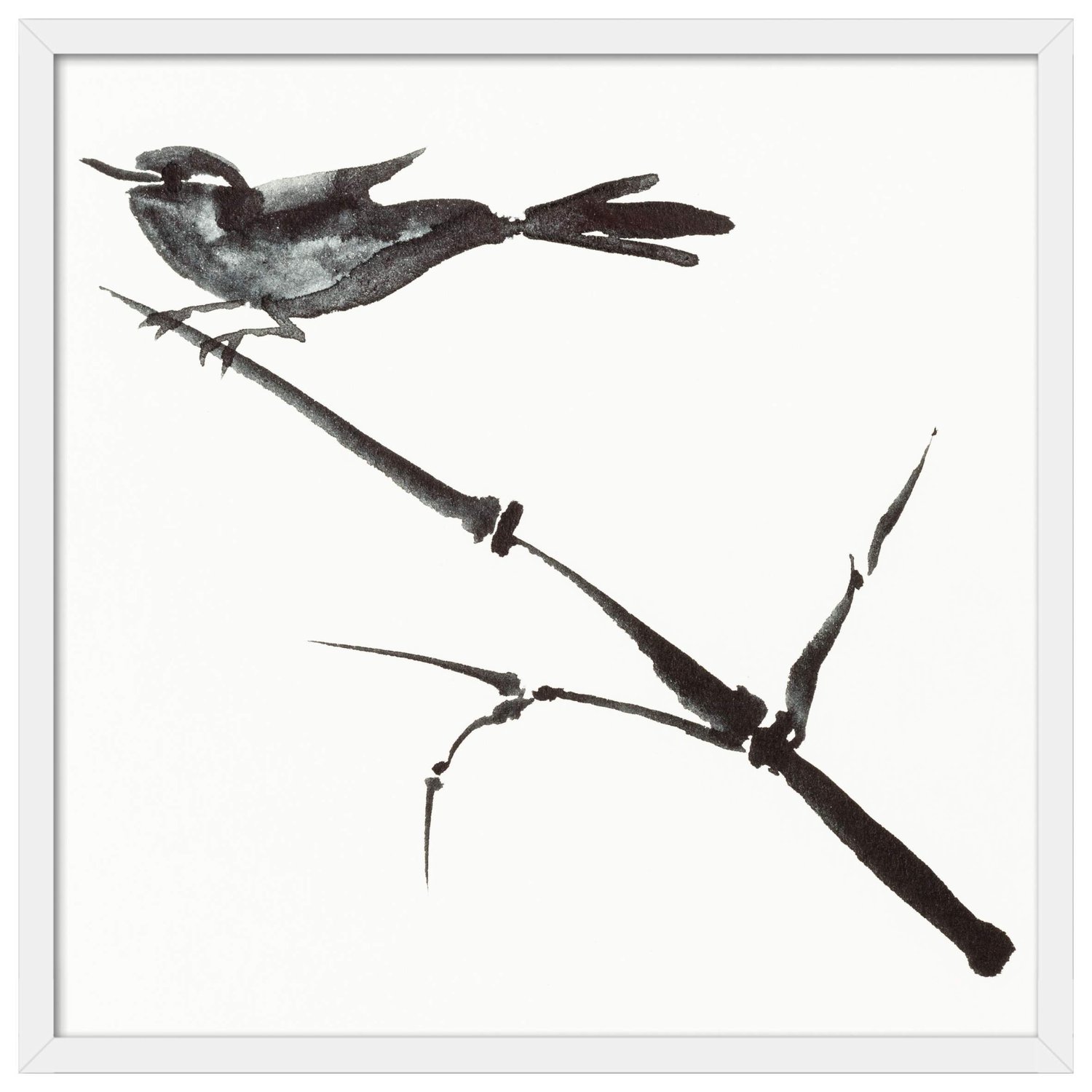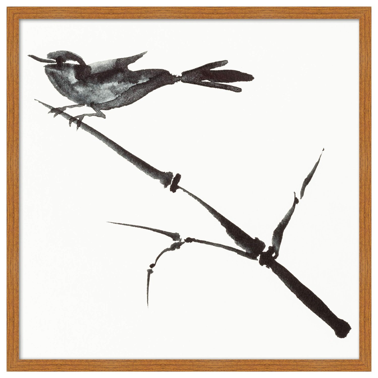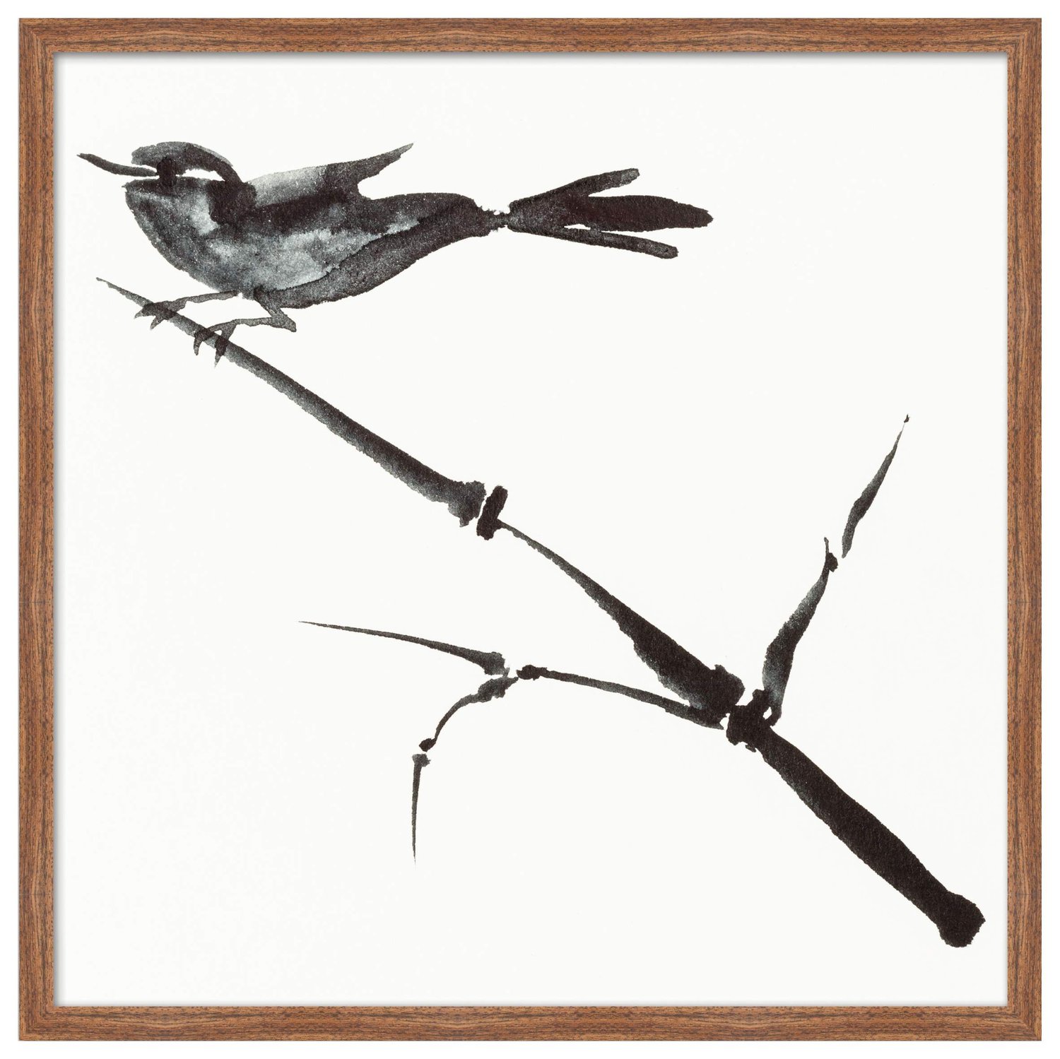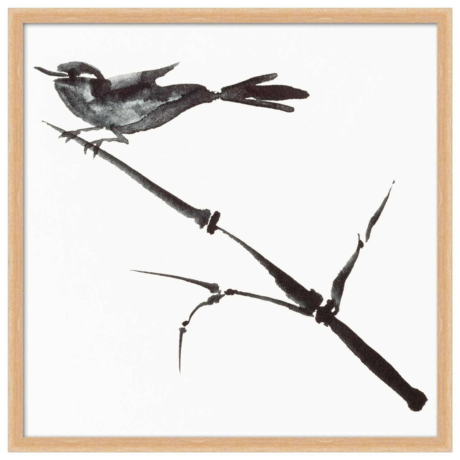 Quadro Decorativo Suzume Arte de Pardal Pousado em galho no Estilo Sumiê