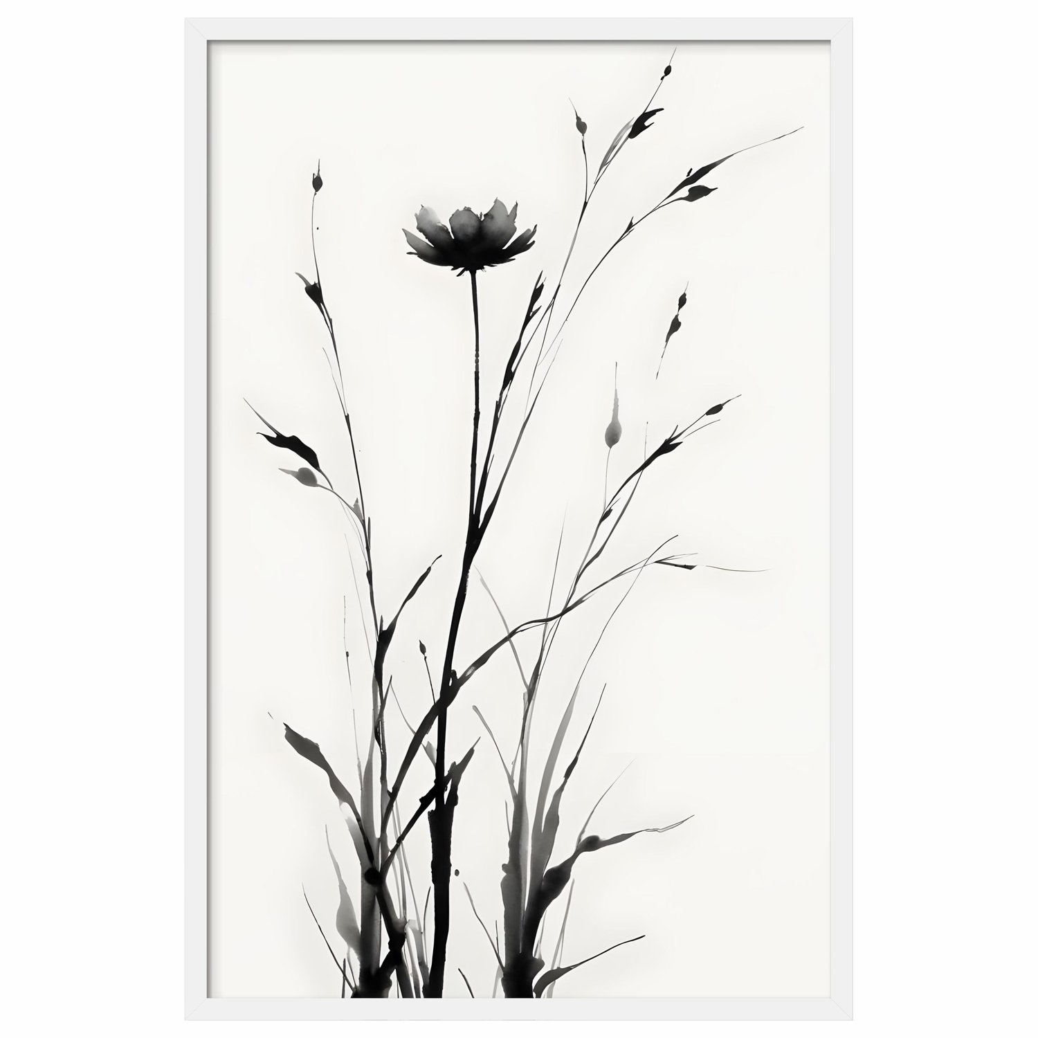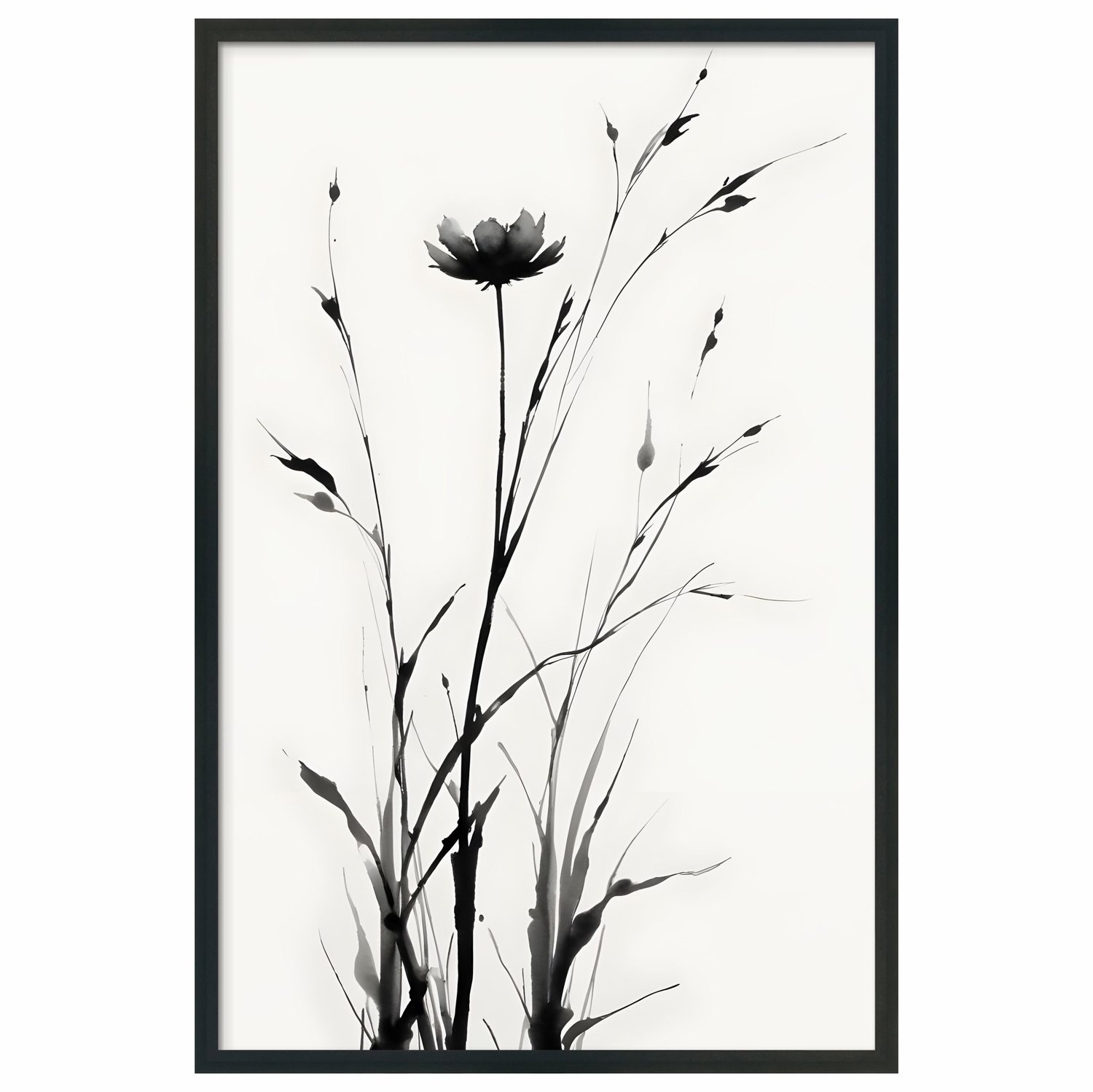 Quadro Decorativo Hana Pintura de Flor em Meio à Vegetação no Estilo Sumiê