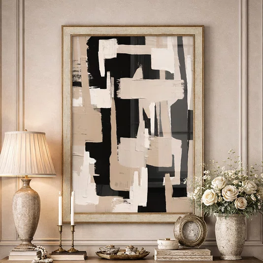 Quadro Decorativo Textura Bege e Preto Estilo Modern Heritage