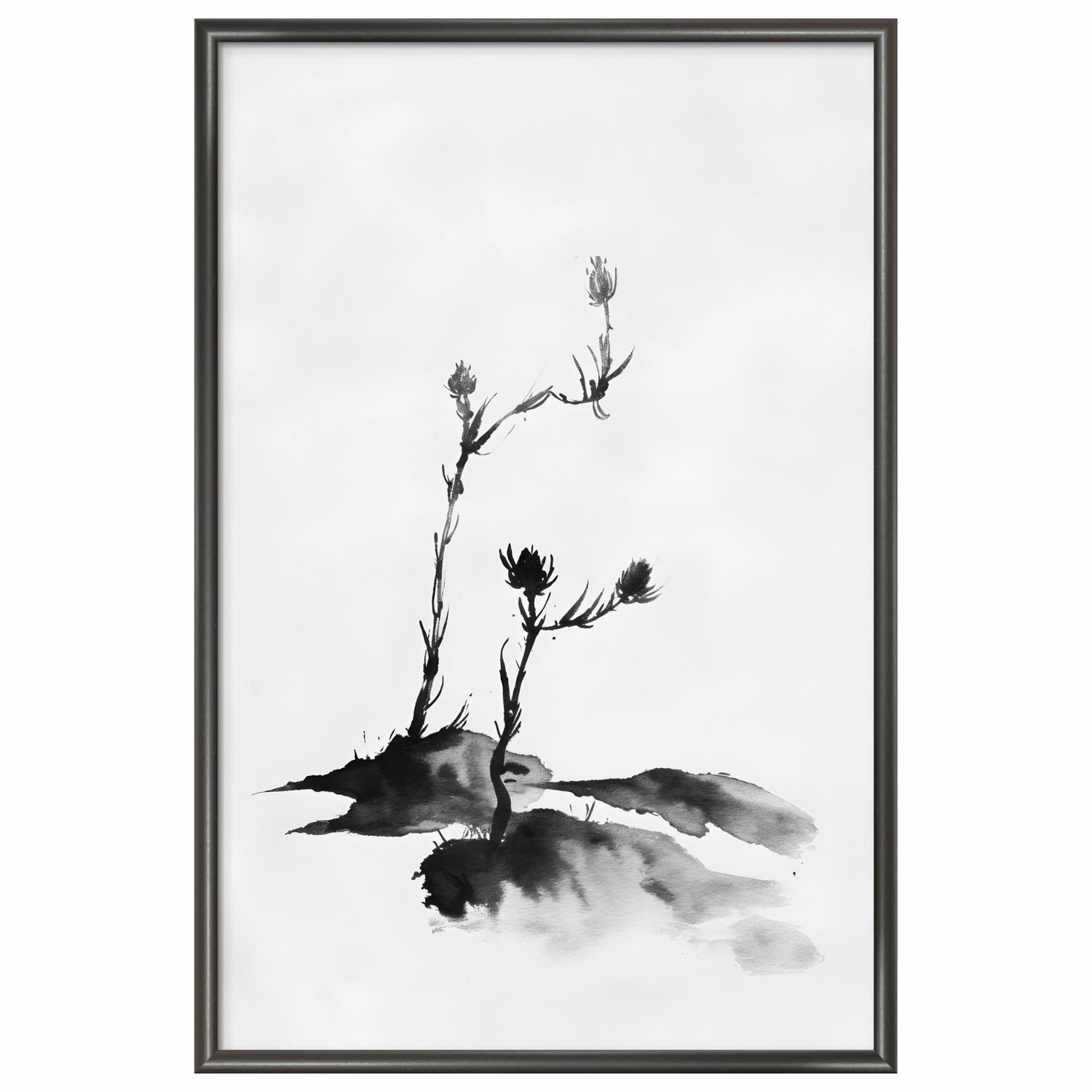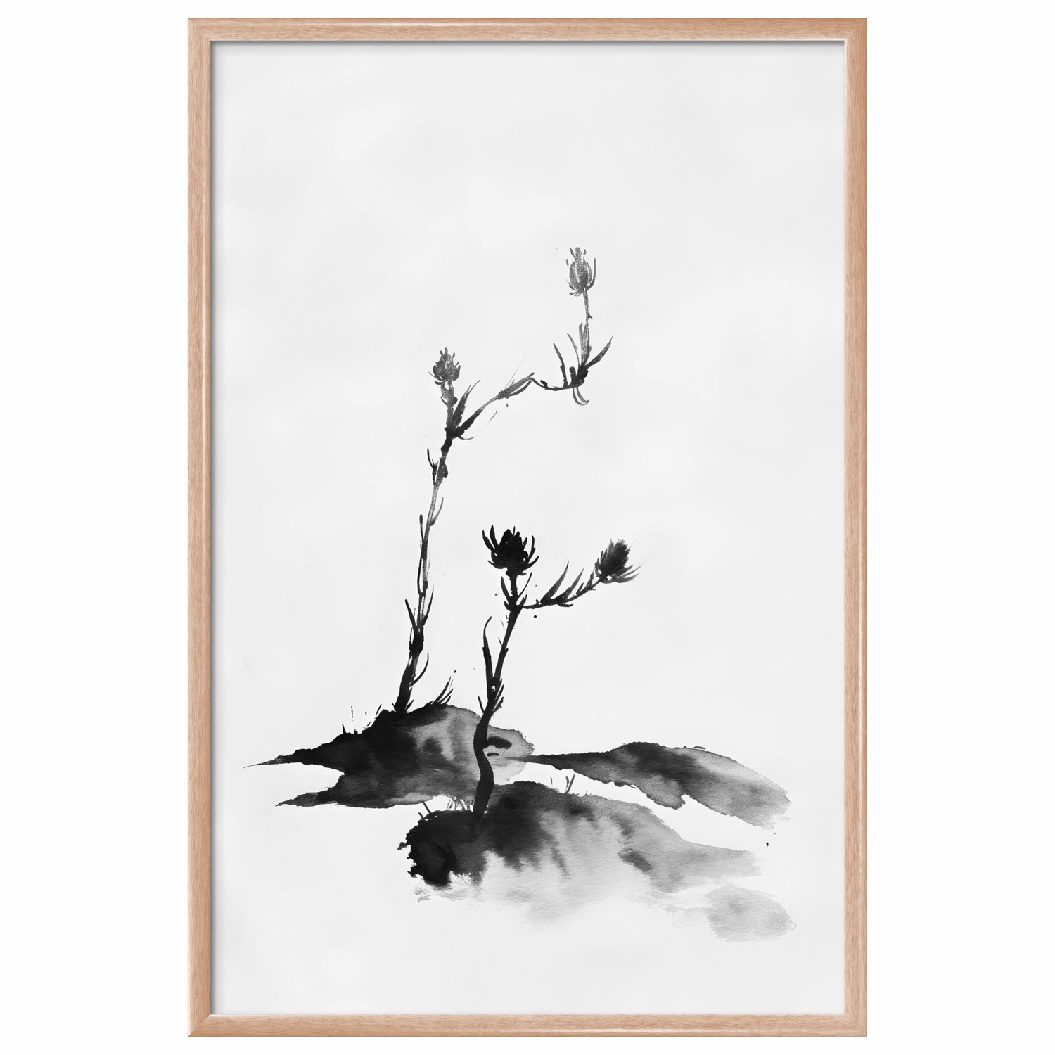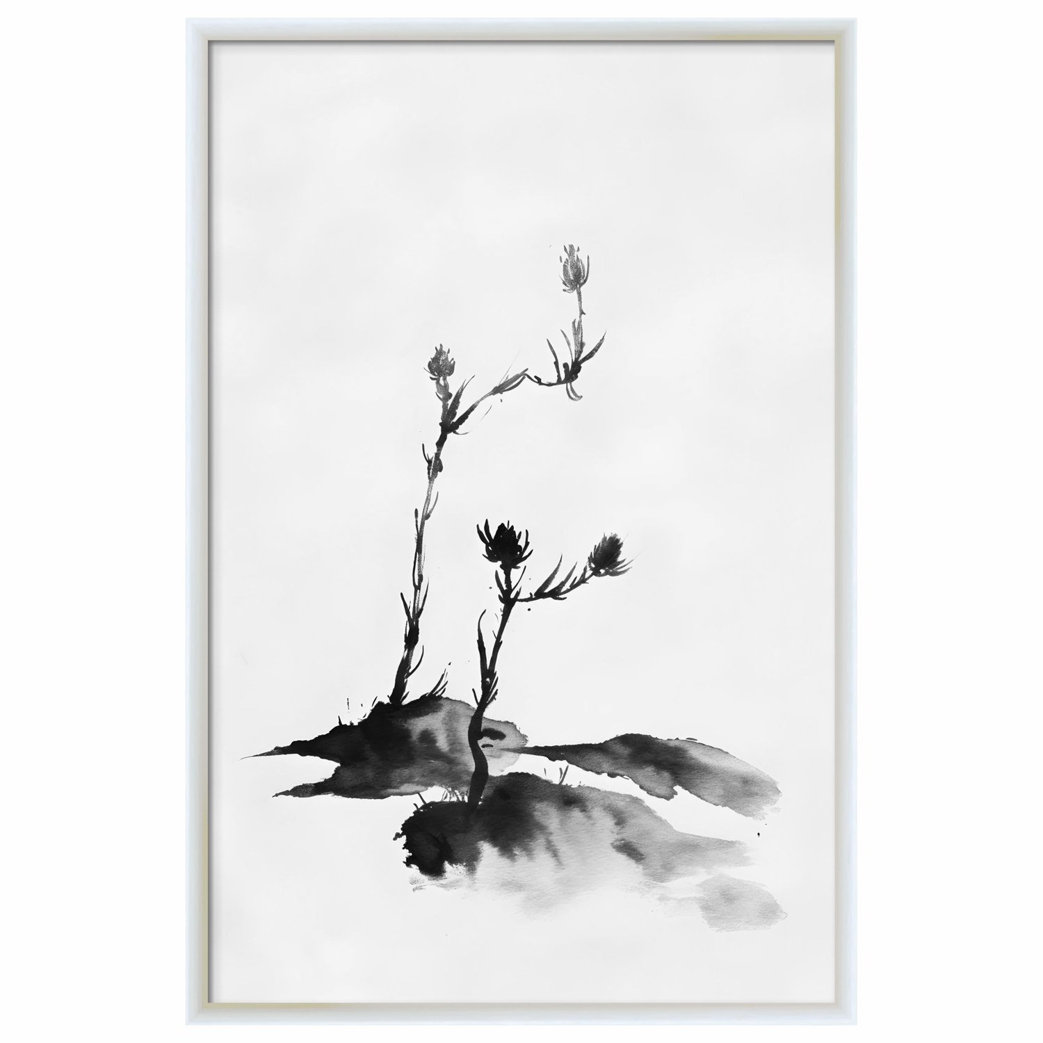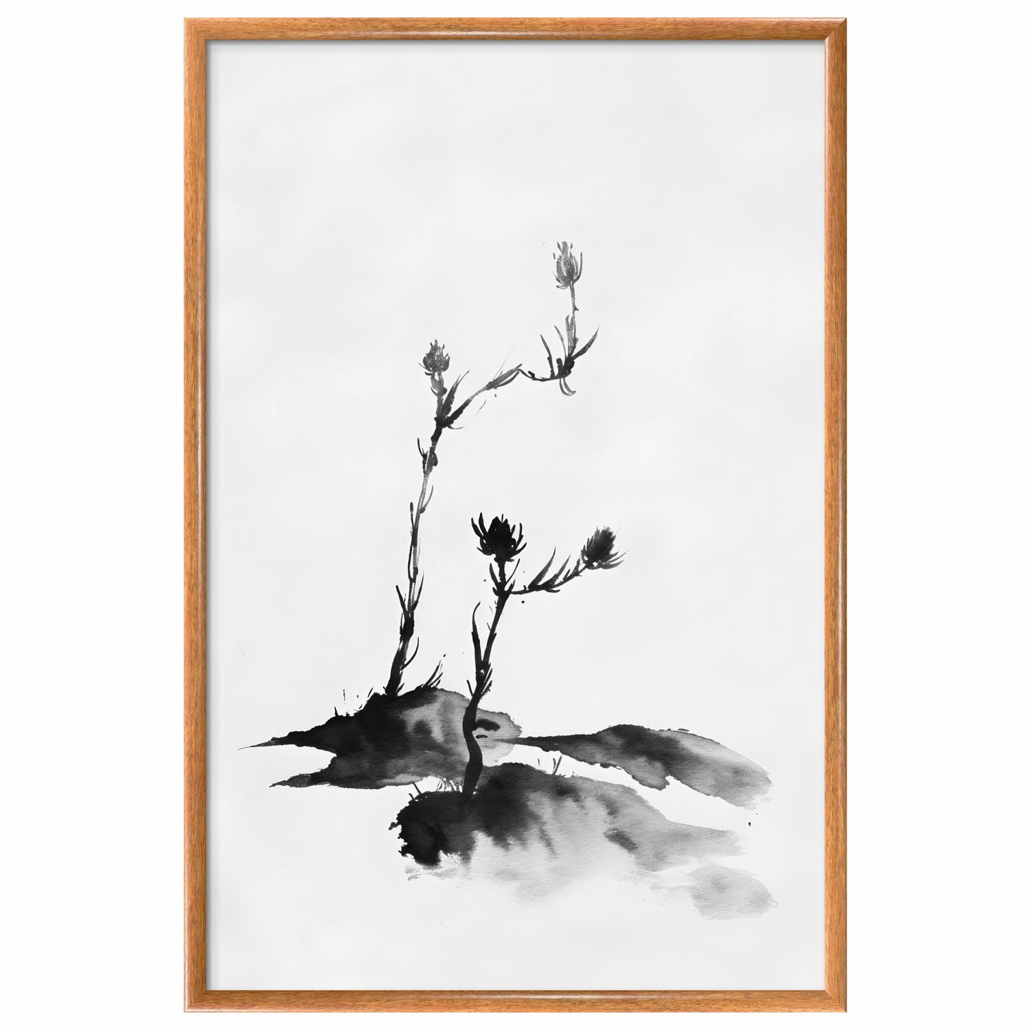 Quadro Decorativo Tsubomi Pintura de Botões de Flores no Estilo Sumiê