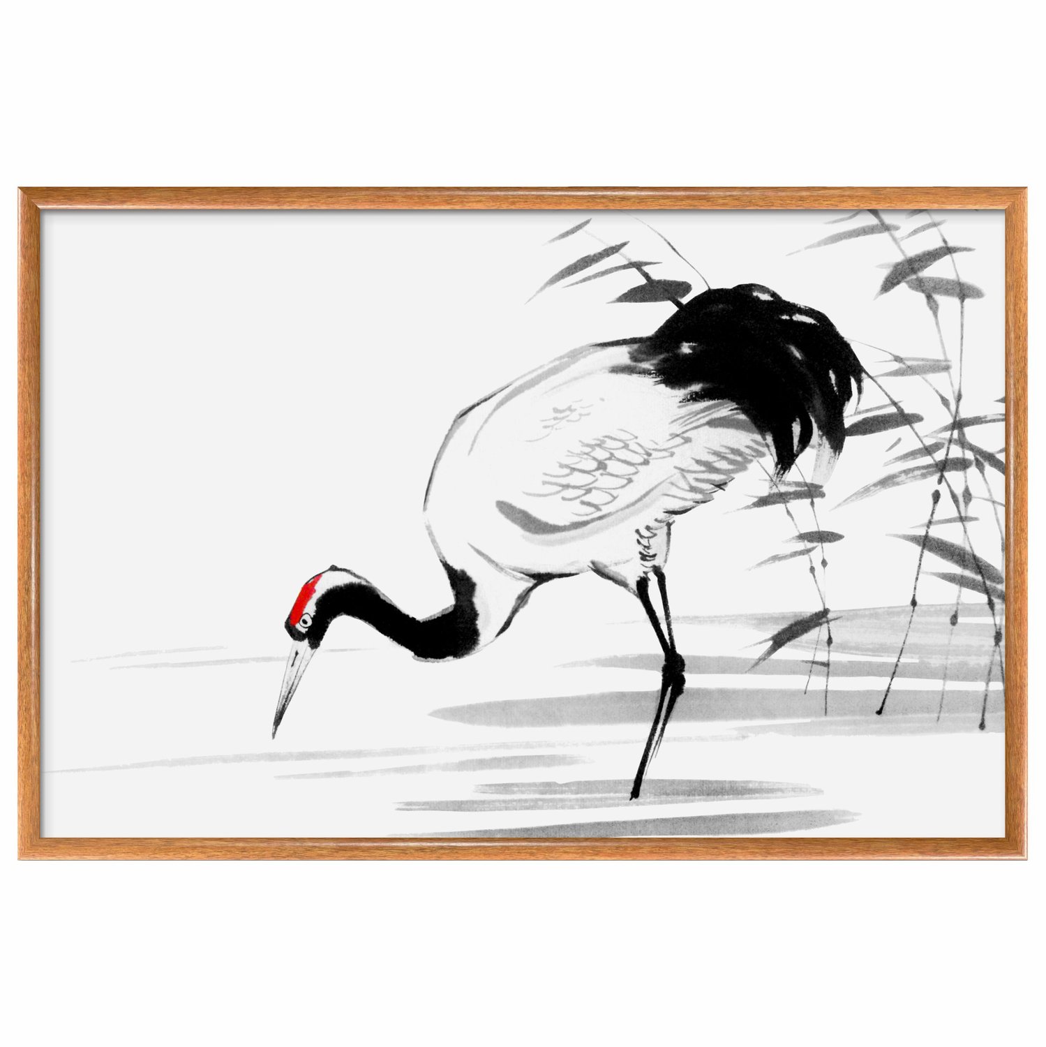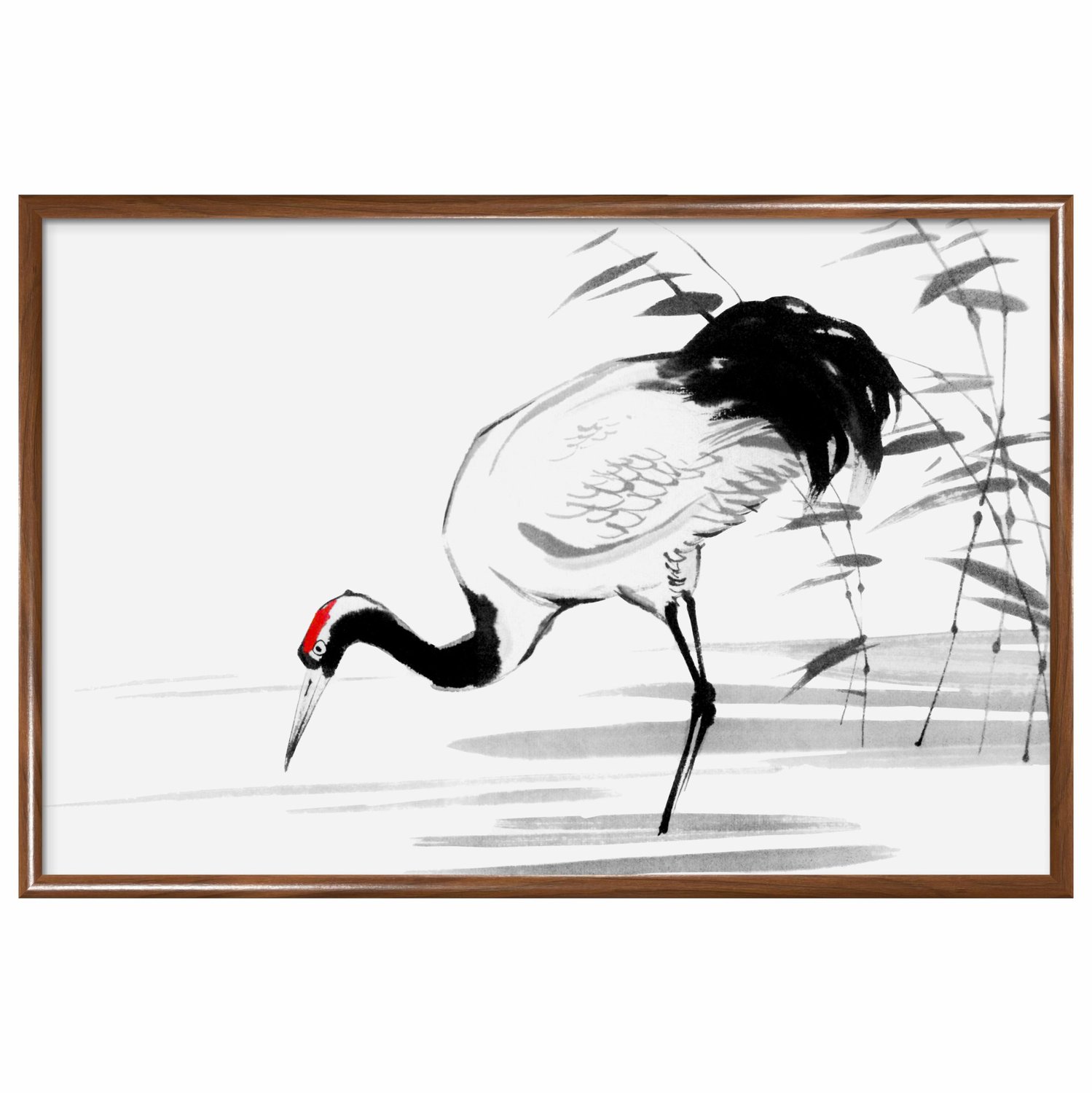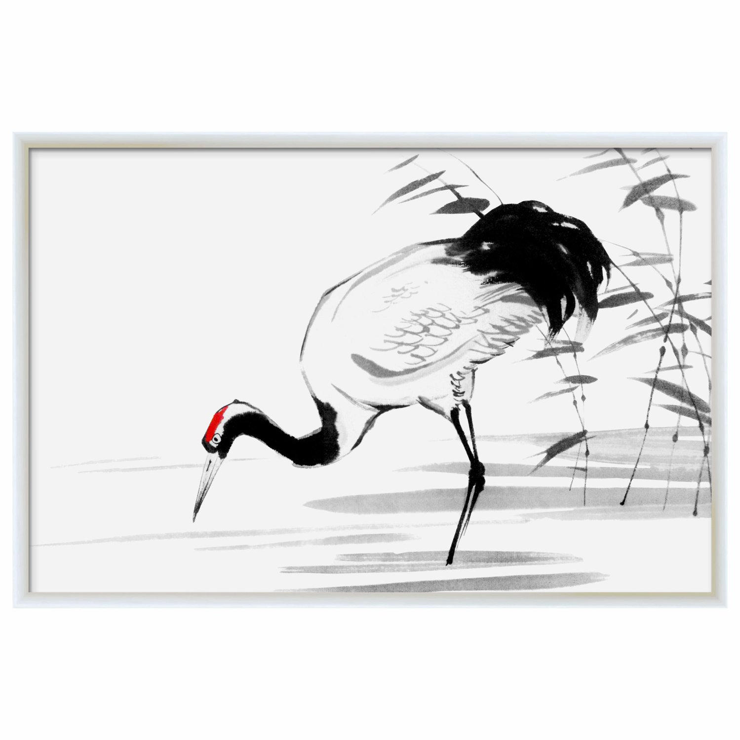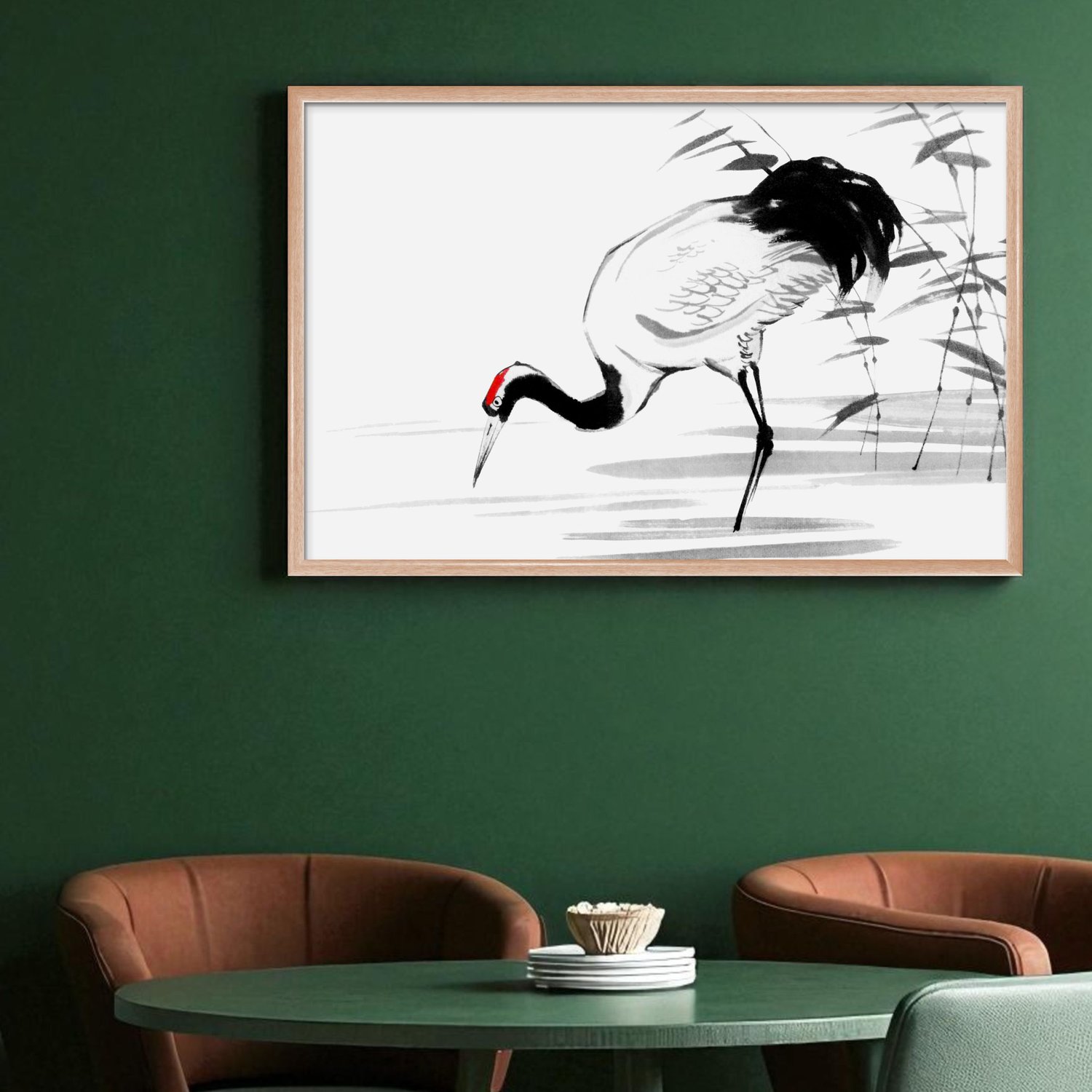 Quadro Decorativo Tsuru Pintura de Grou Japonês no Estilo Sumiê