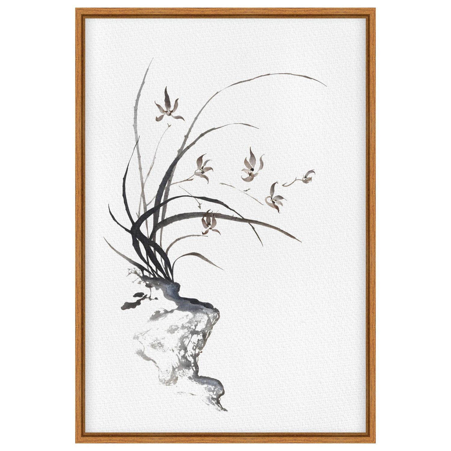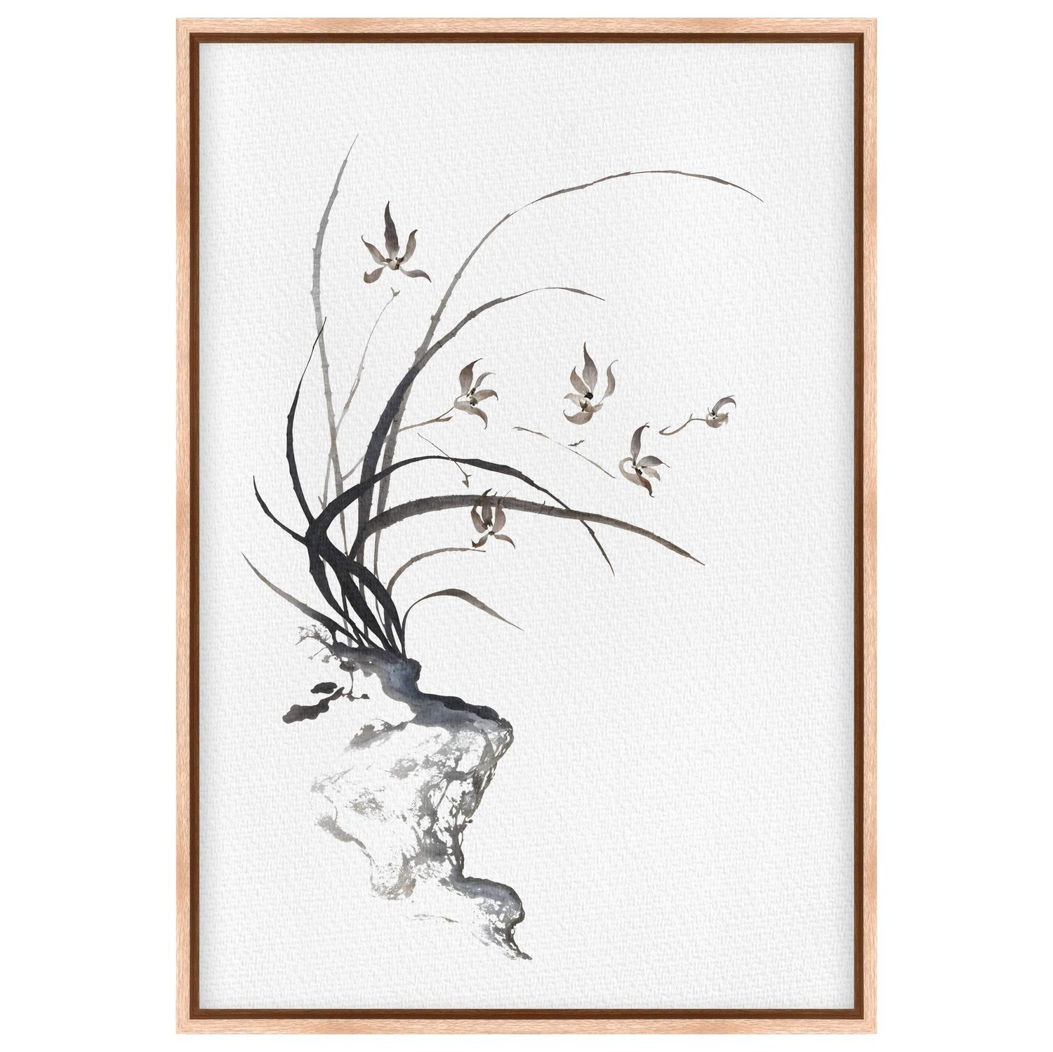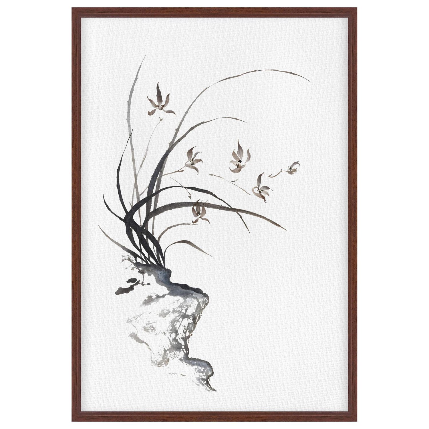 Quadro em Tela Canvas Furan Arte de Flor Ornamental Orquídea Samurai no Estilo Sumiê