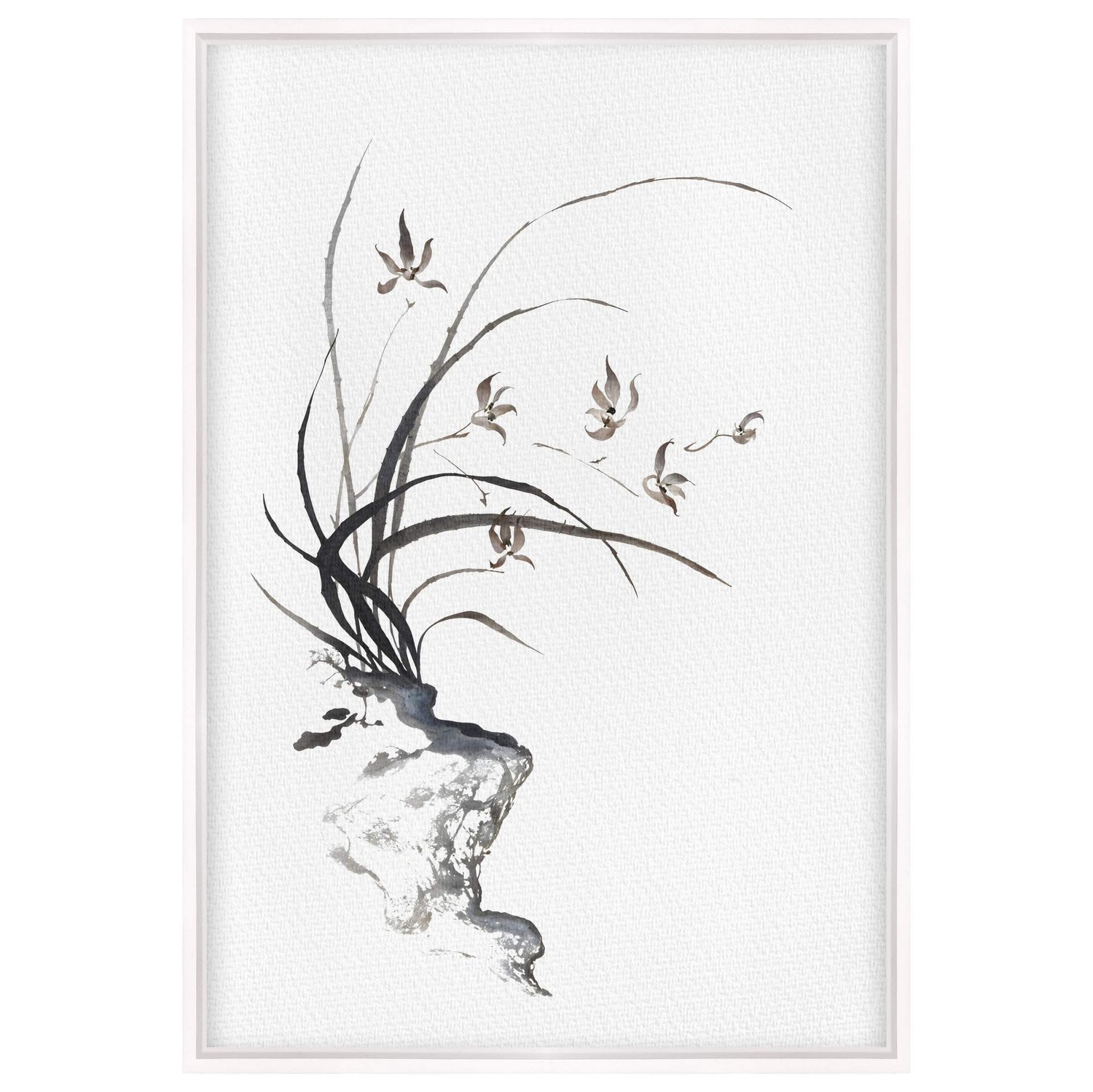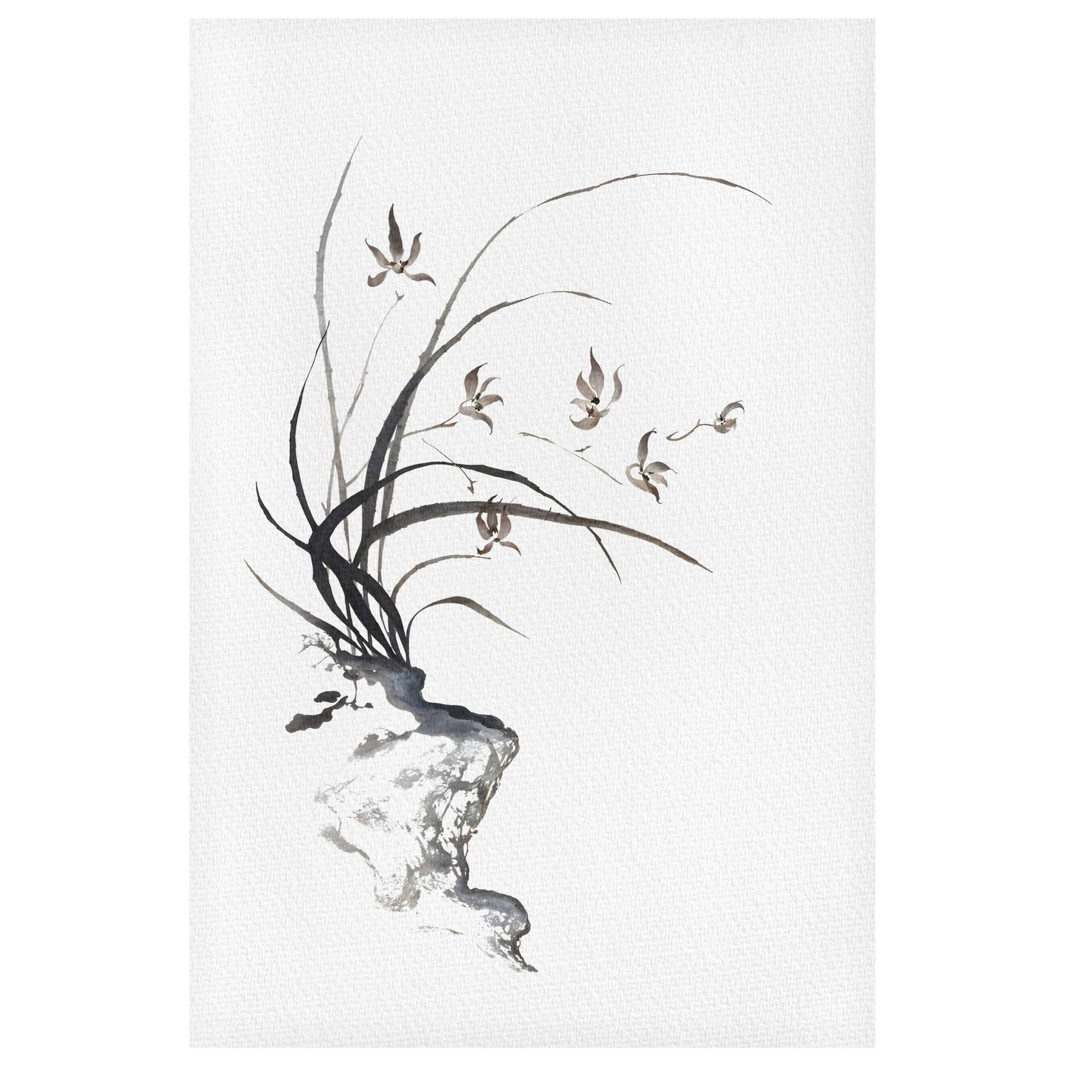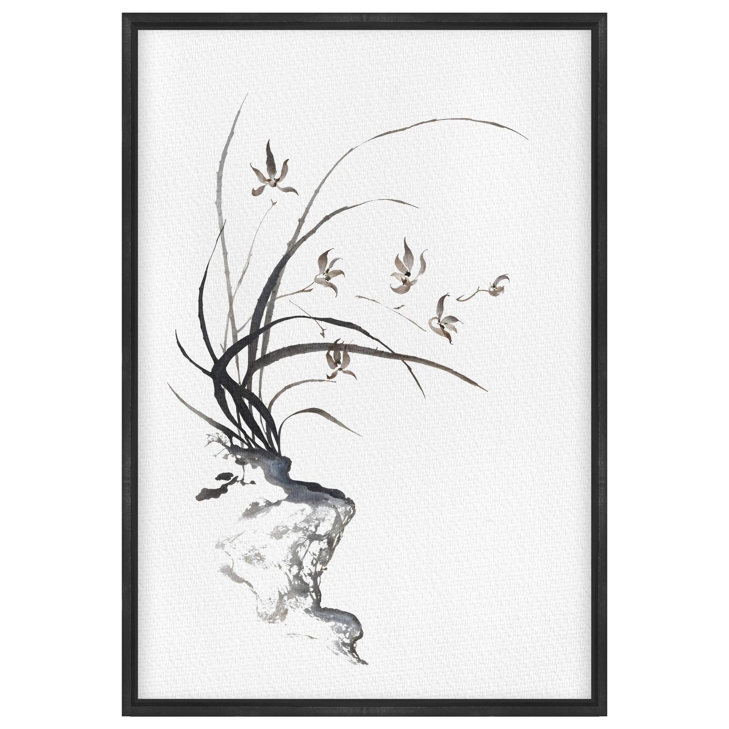 Quadro em Tela Canvas Furan Arte de Flor Ornamental Orquídea Samurai no Estilo Sumiê
