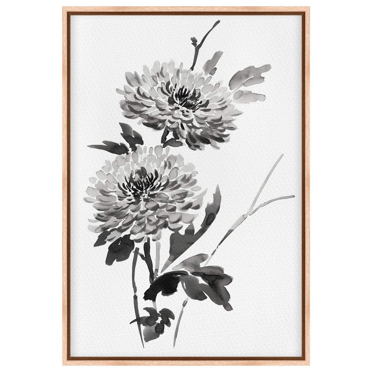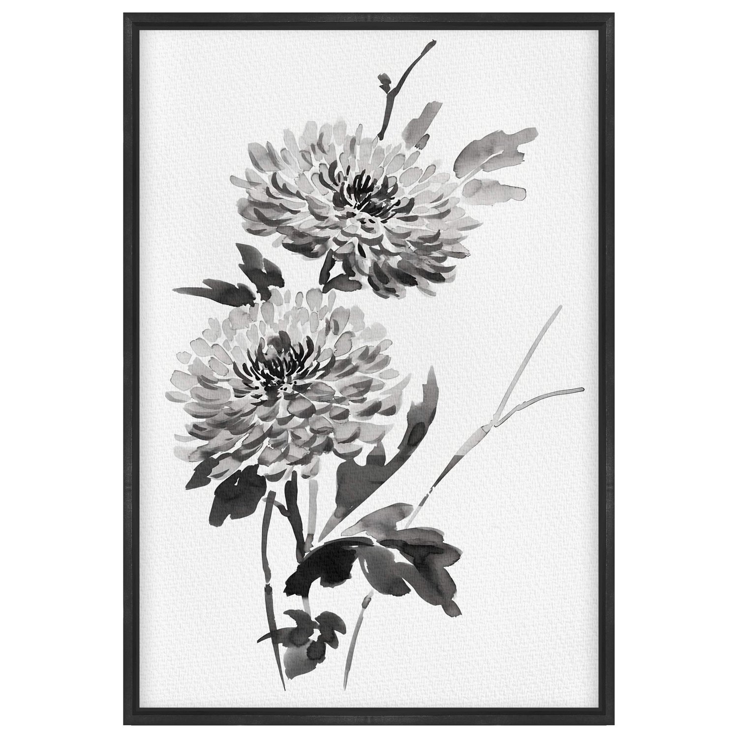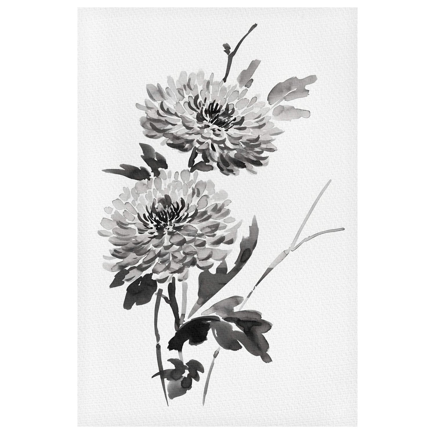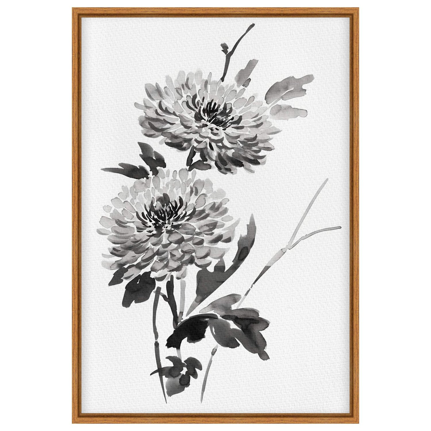 Quadro em Tela Canvas Kiku Pintura de Flor Ornamental Crisântemo no Estilo Sumiê