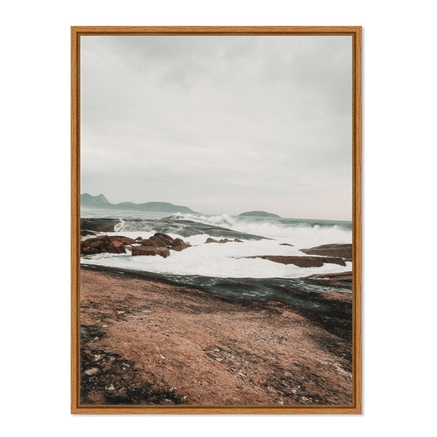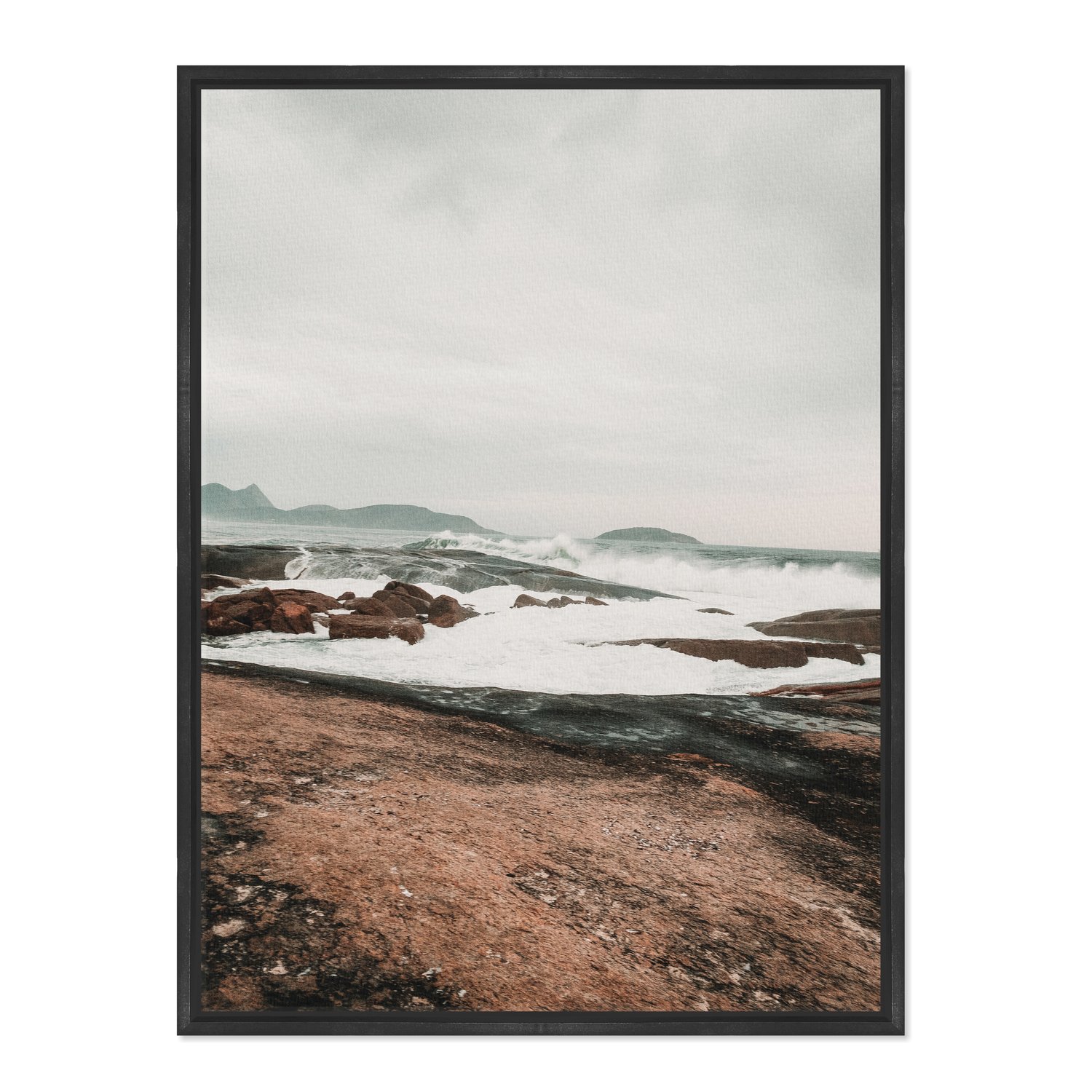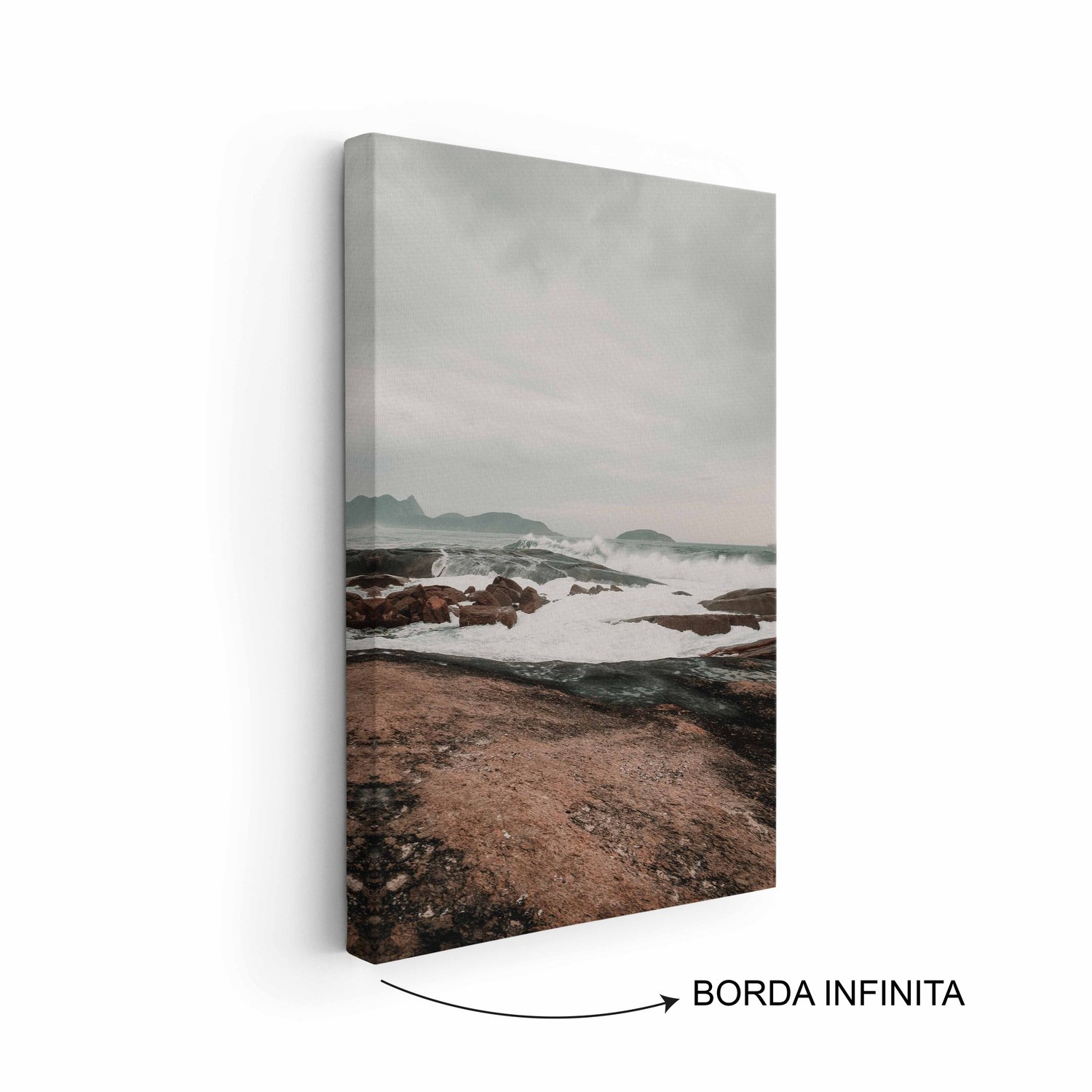Quadro Em Tela Canvas Praia Com Rochas na Costa Estilo Japandi