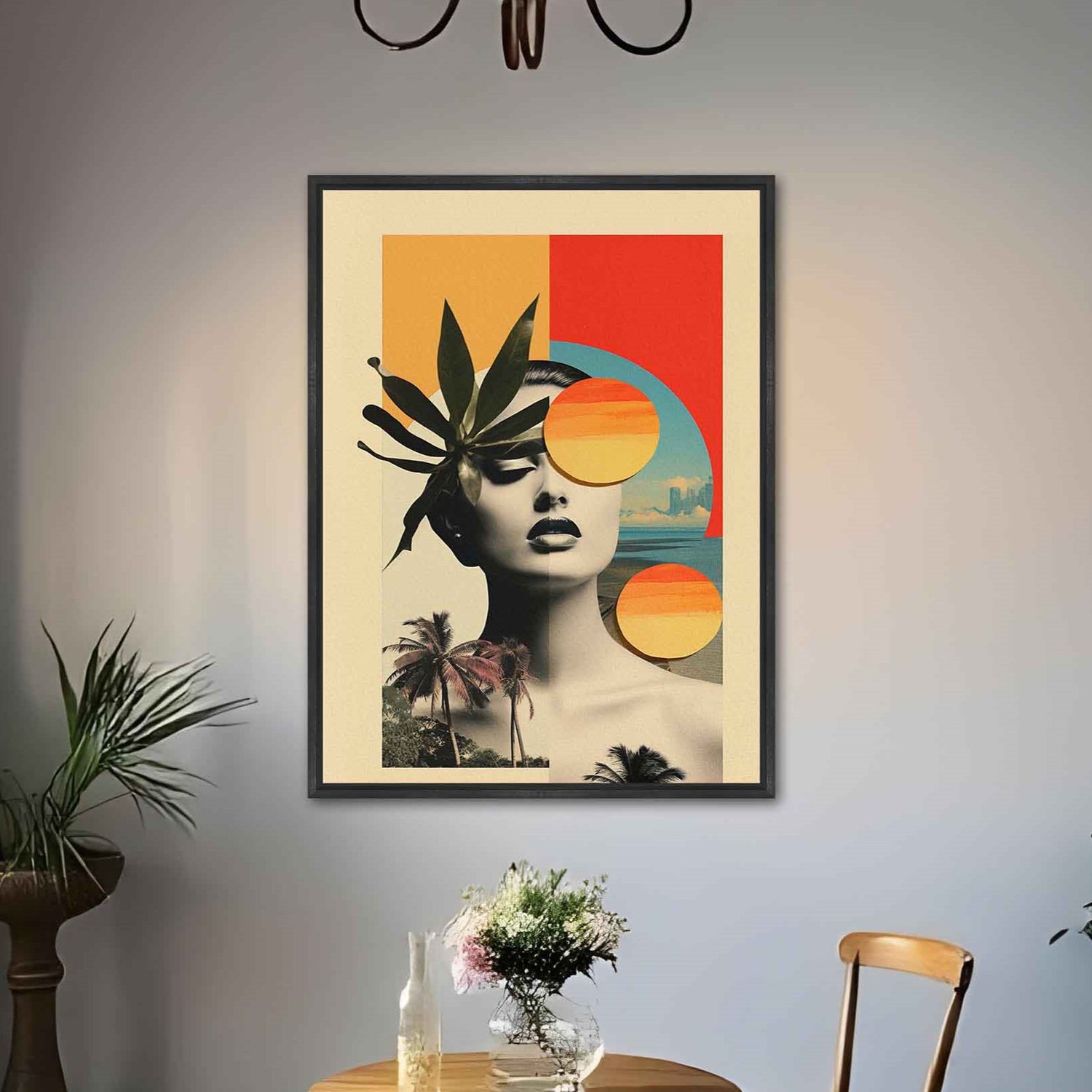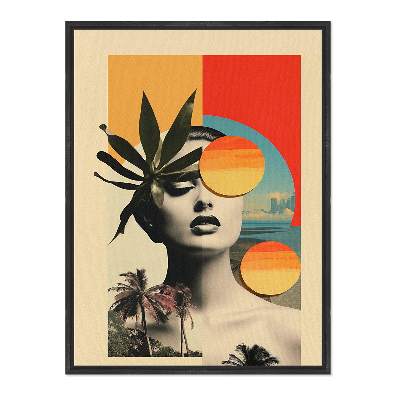 Quadro em Tela Canvas Rosto Com Folha Abstrata
