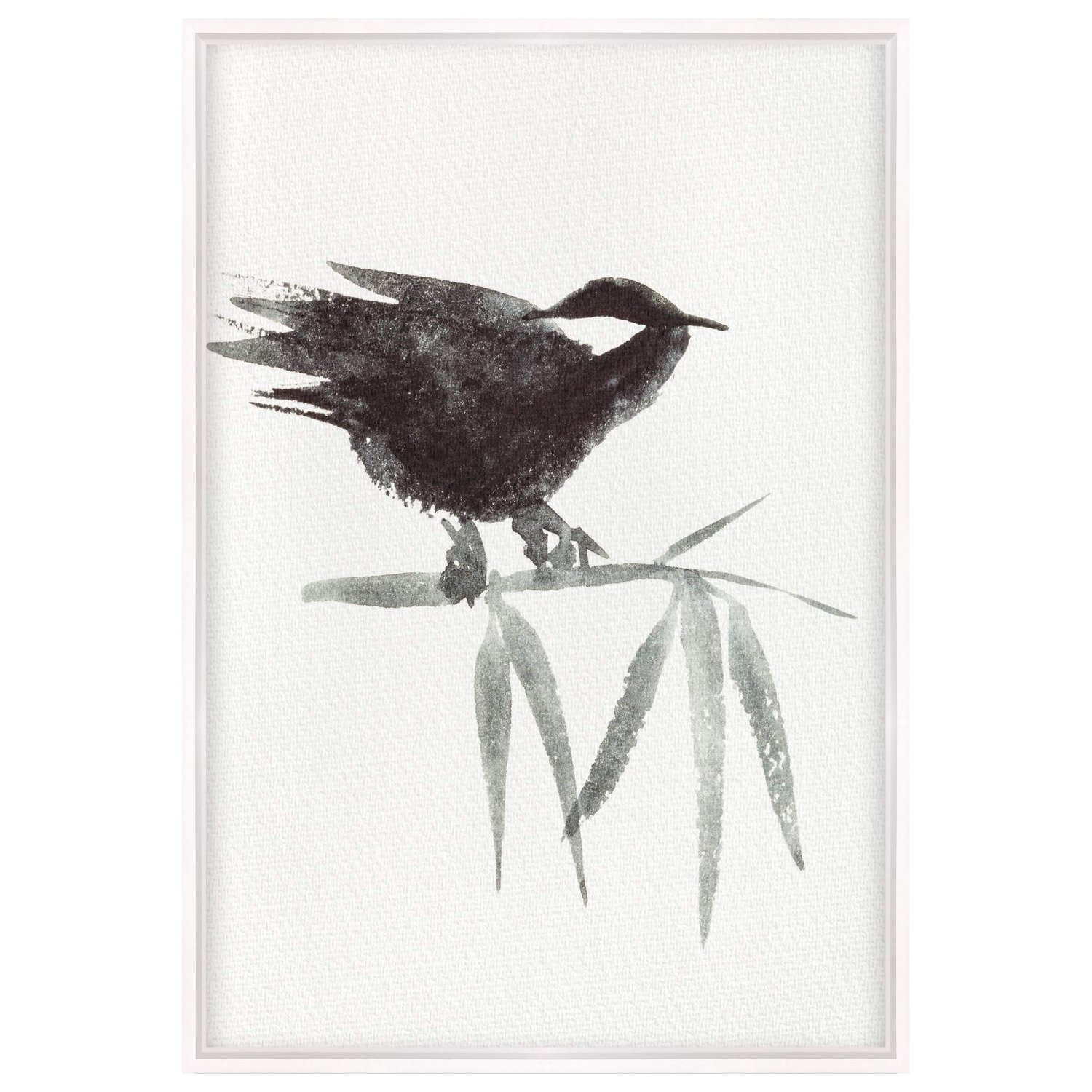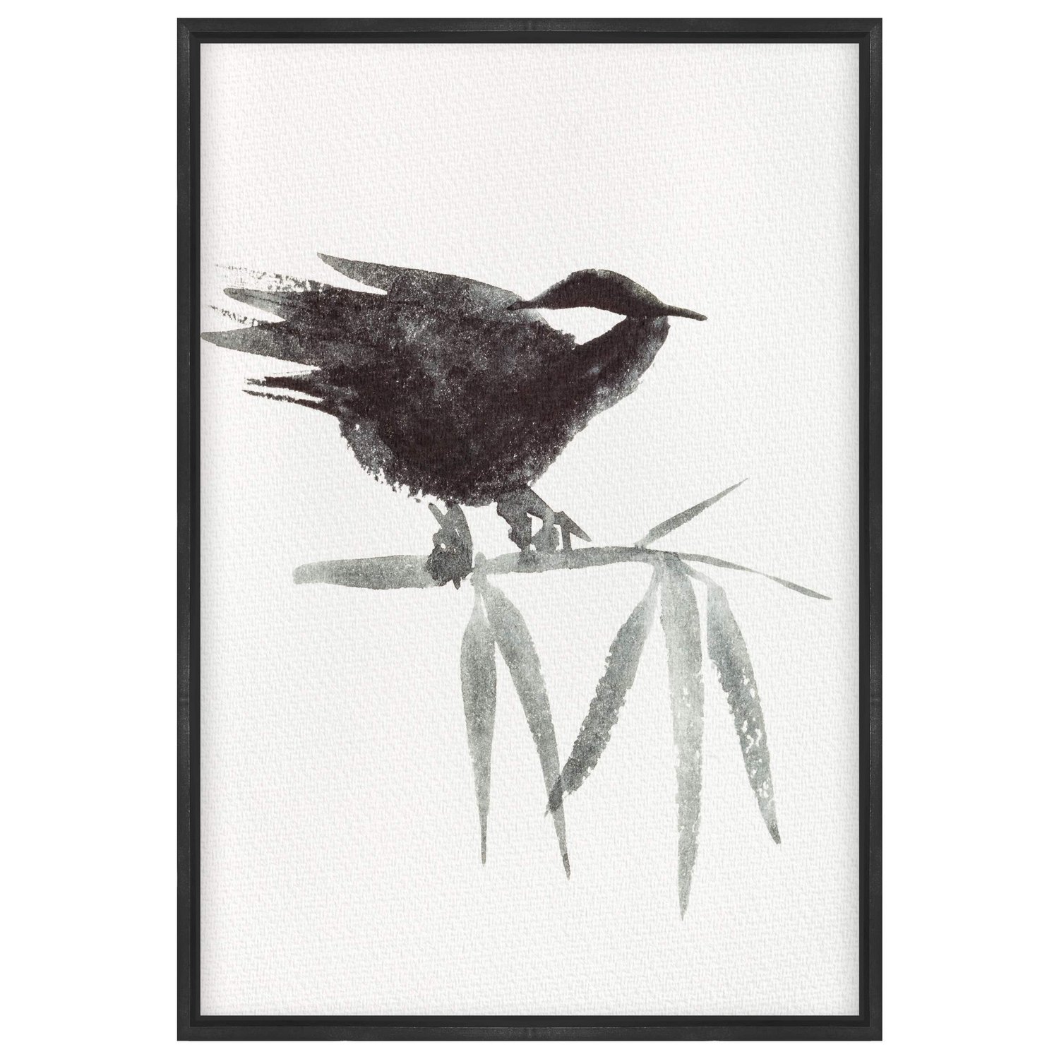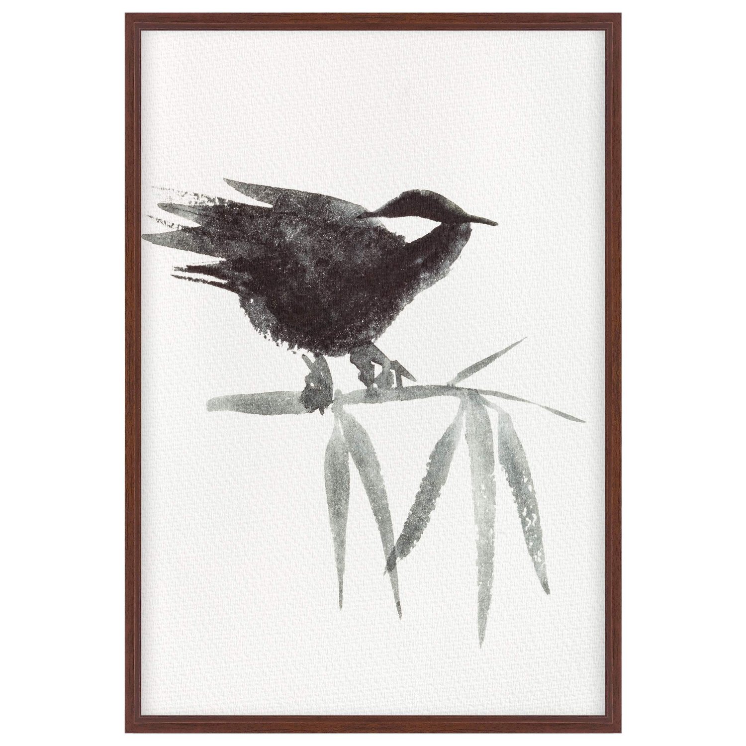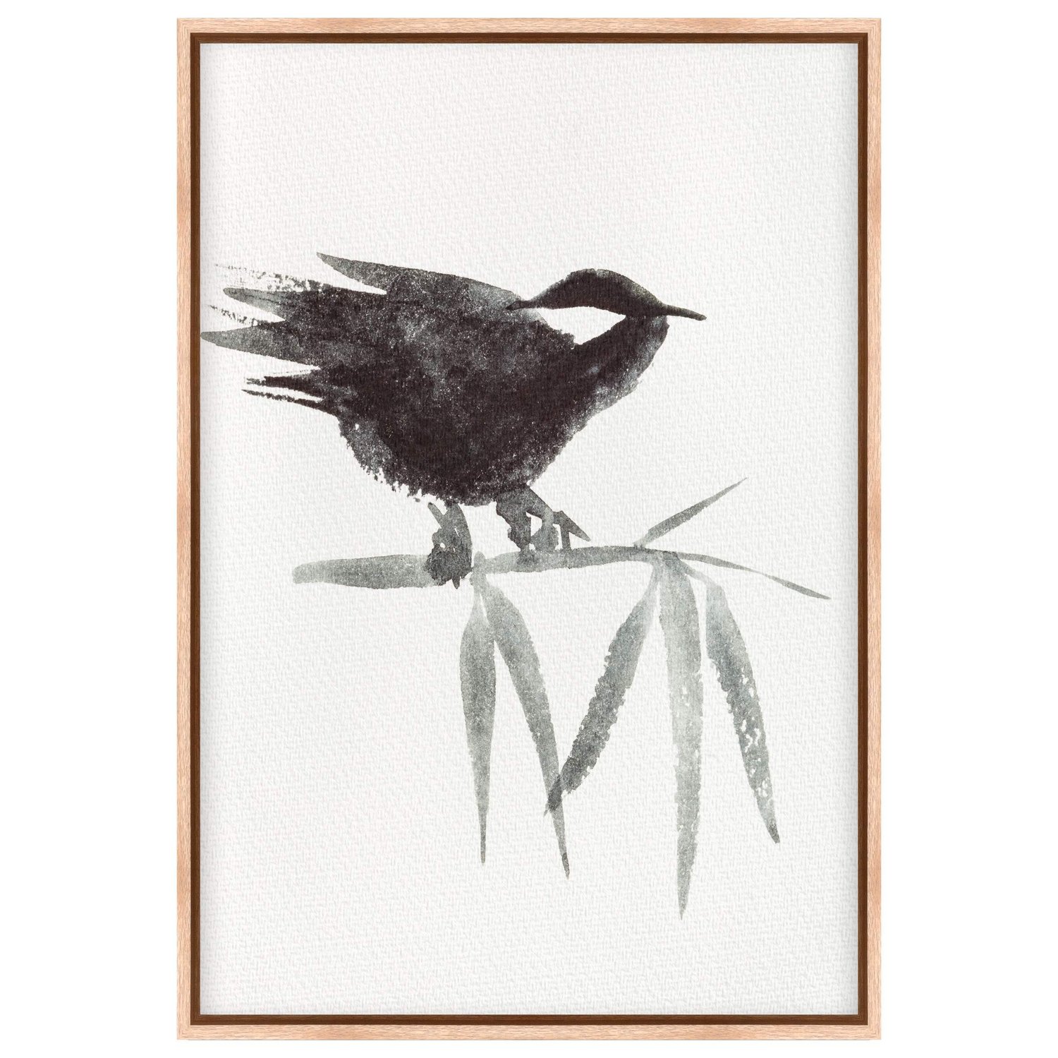 Quadro em Tela Canvas Suzume Pintura de Pardal Pousado em Folhas no Estilo Sumiê