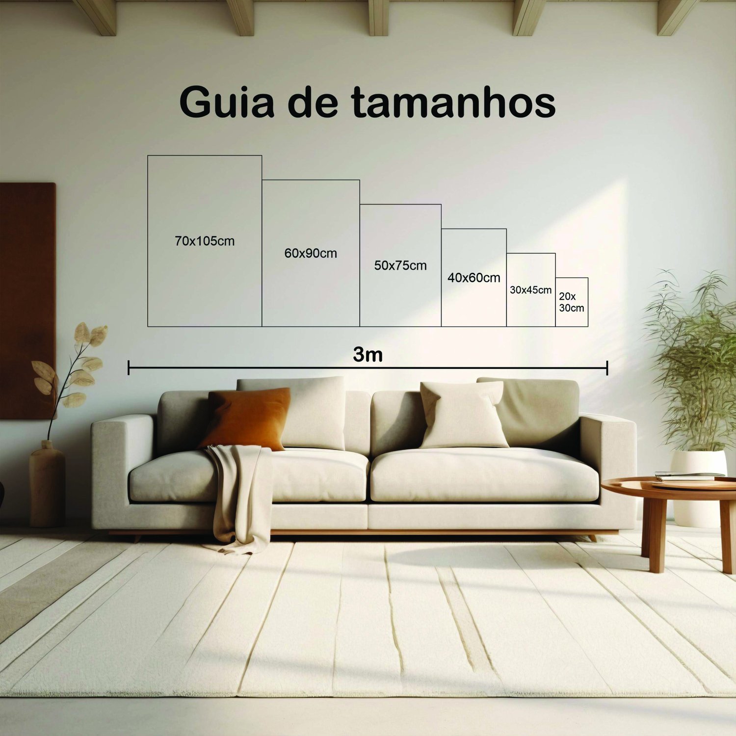 Material: moldura canaleta, chassi em madeira pinus natural, tela canvas original 100% algodão e penduradores