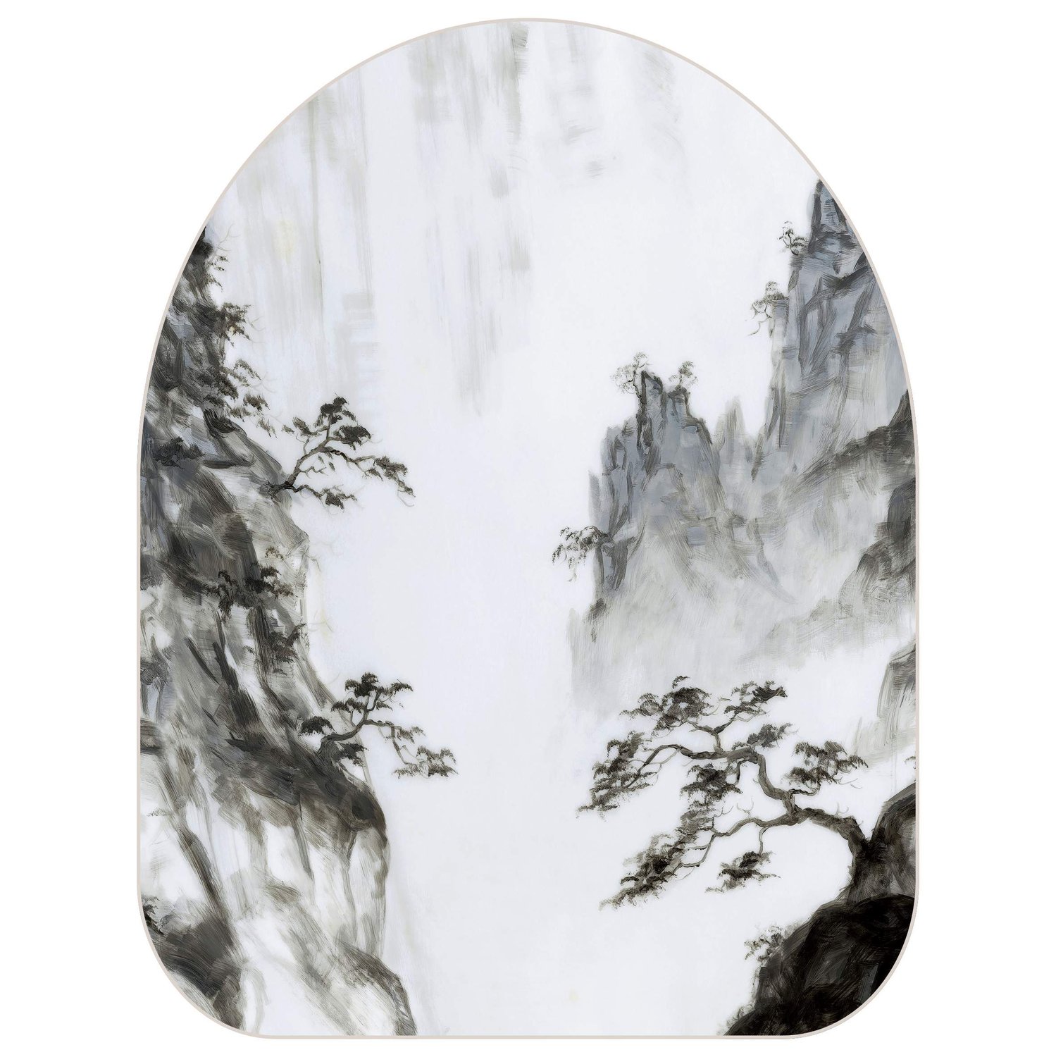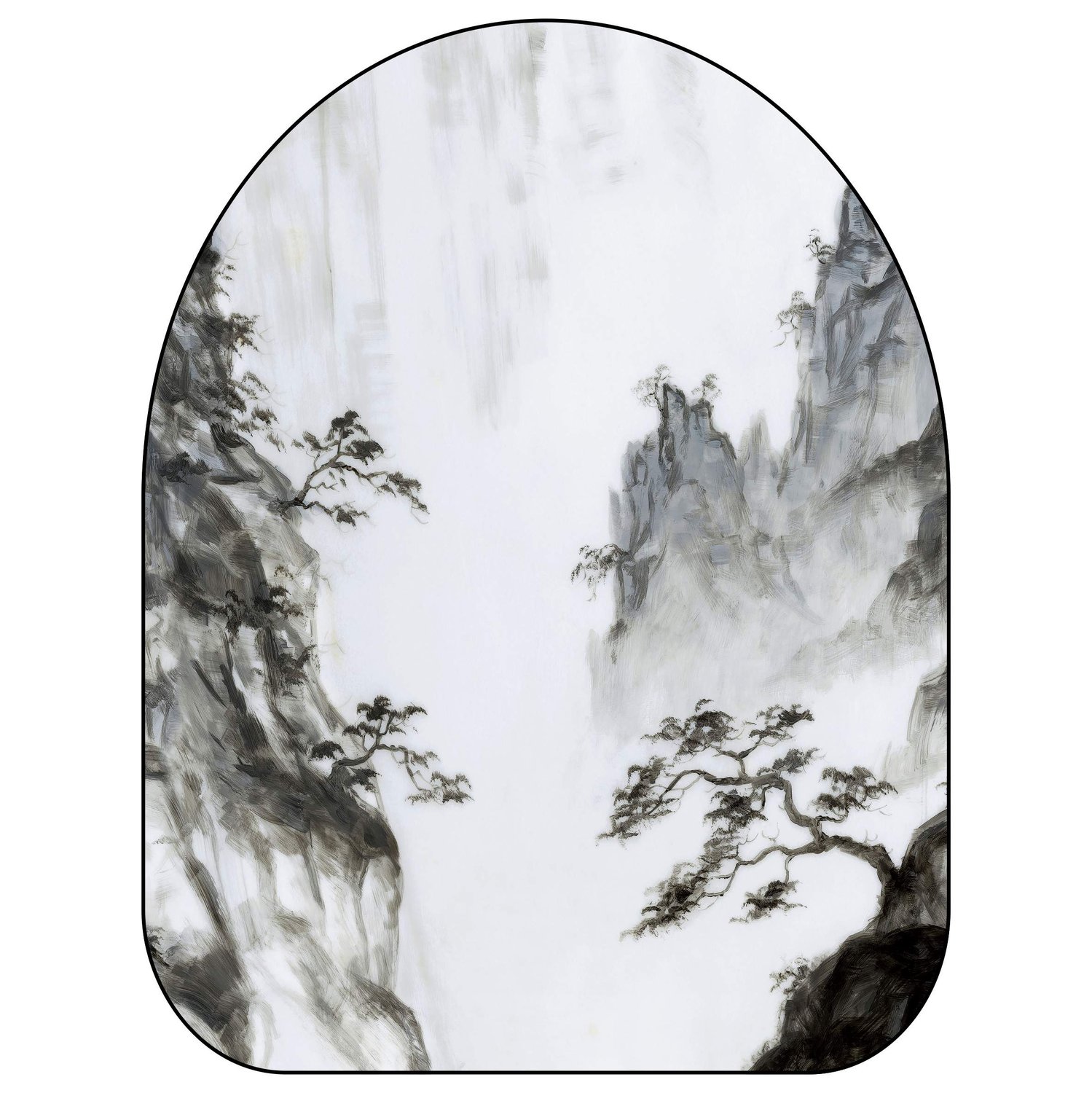 Quadro Orgânico Decorativo Ki Yama Pintura de Árvores nas Montanhas no Estilo Sumiê com Moldura em Couro Sintético