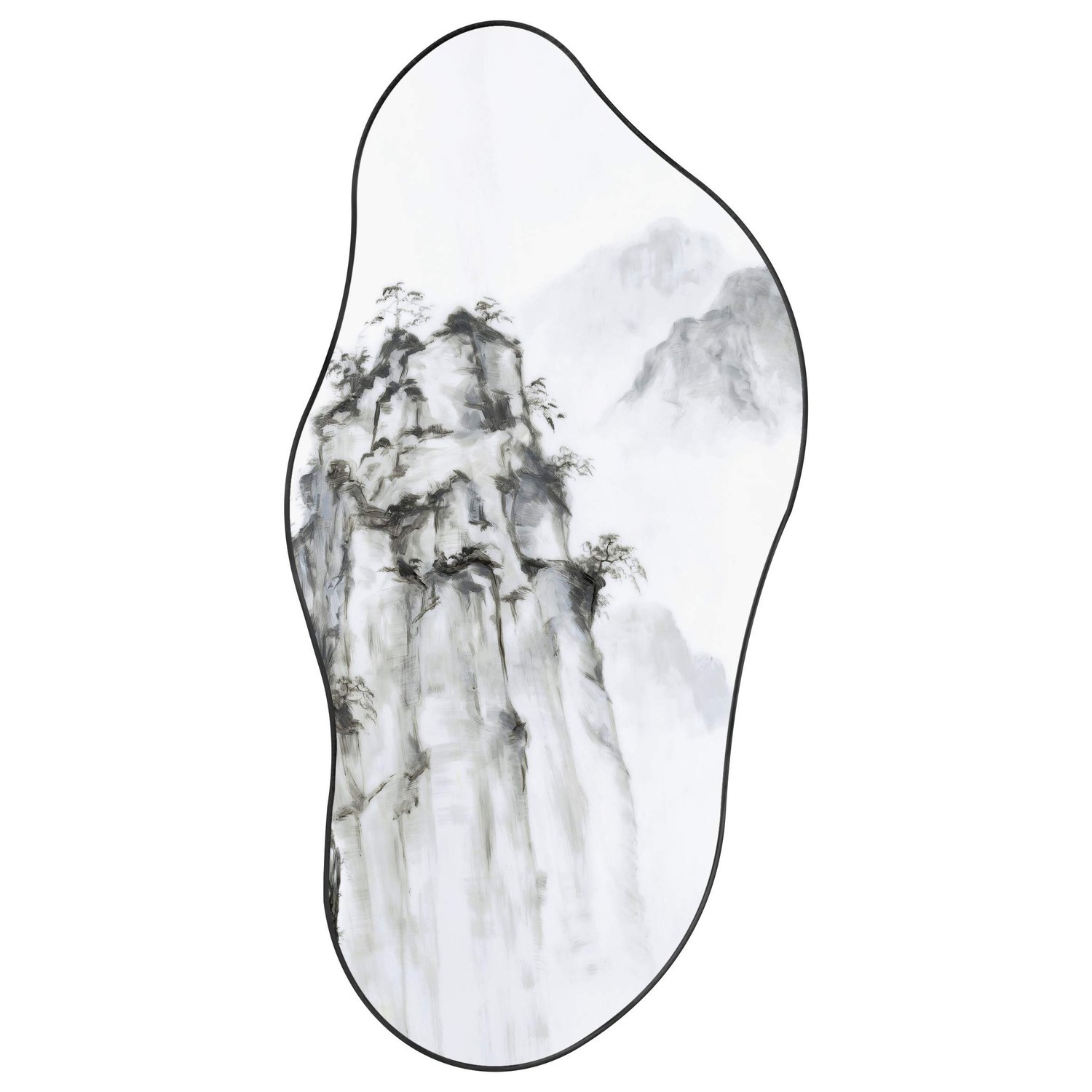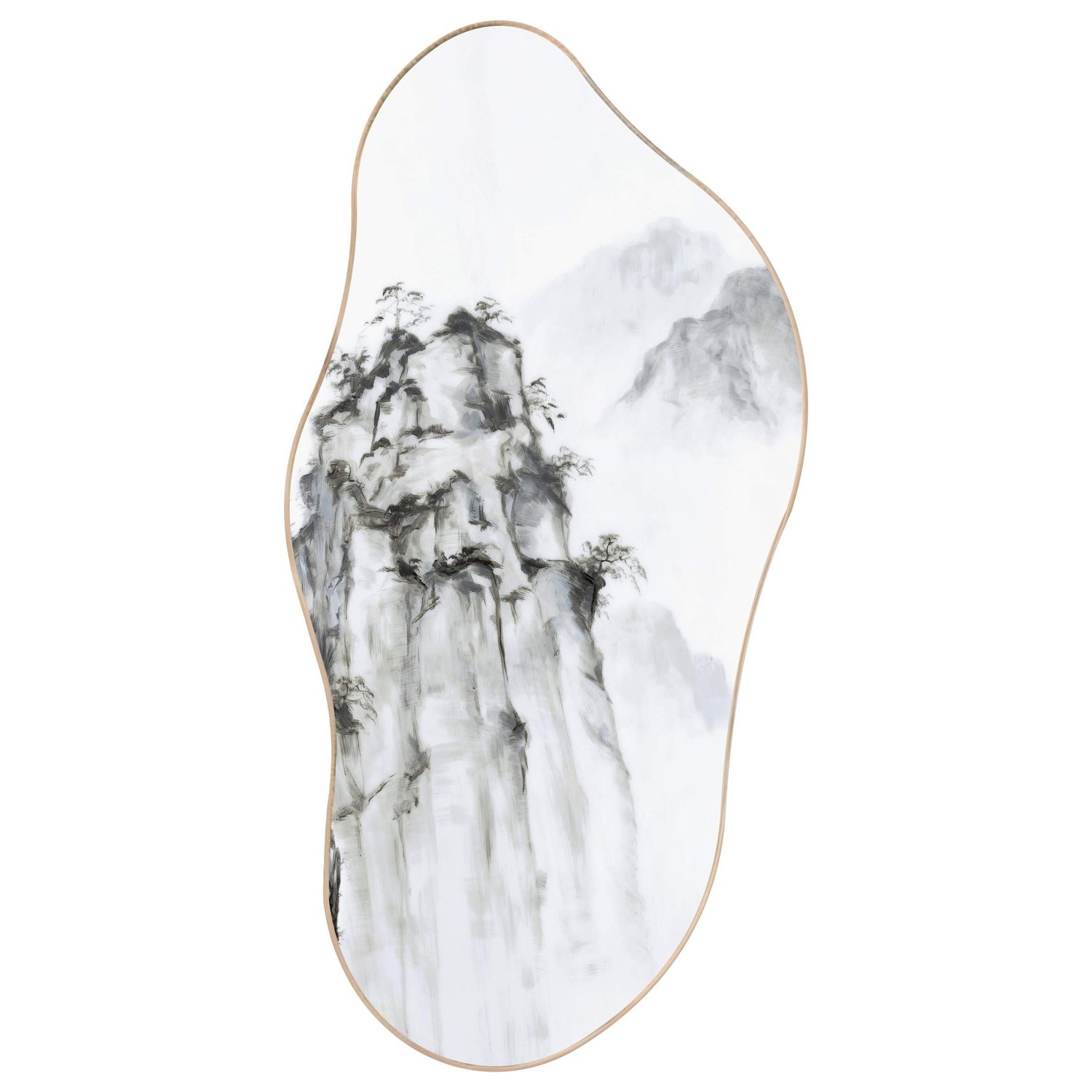 Quadro Orgânico Decorativo Yama Pintura de Montanha no Estilo Sumiê com Moldura em Couro Sintético