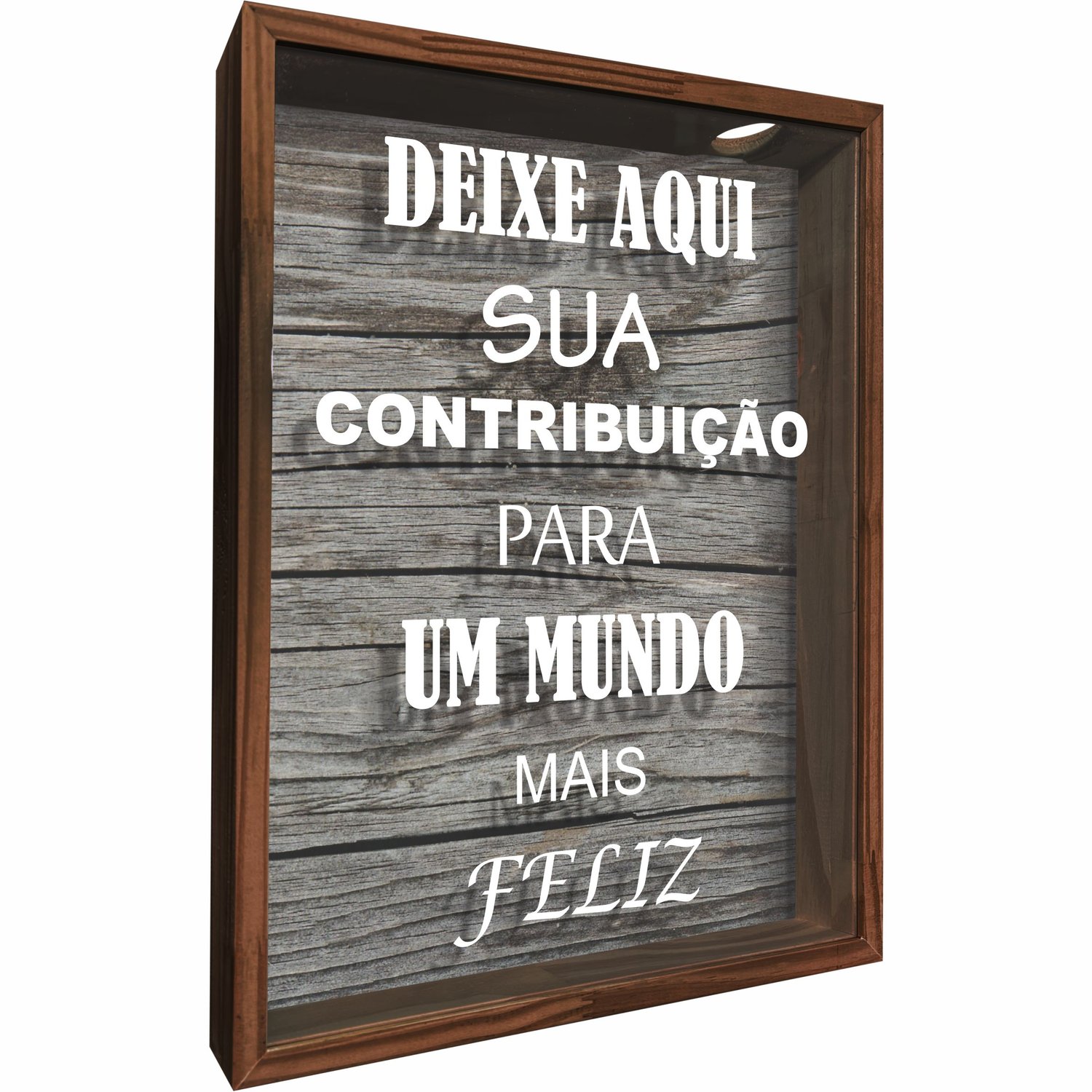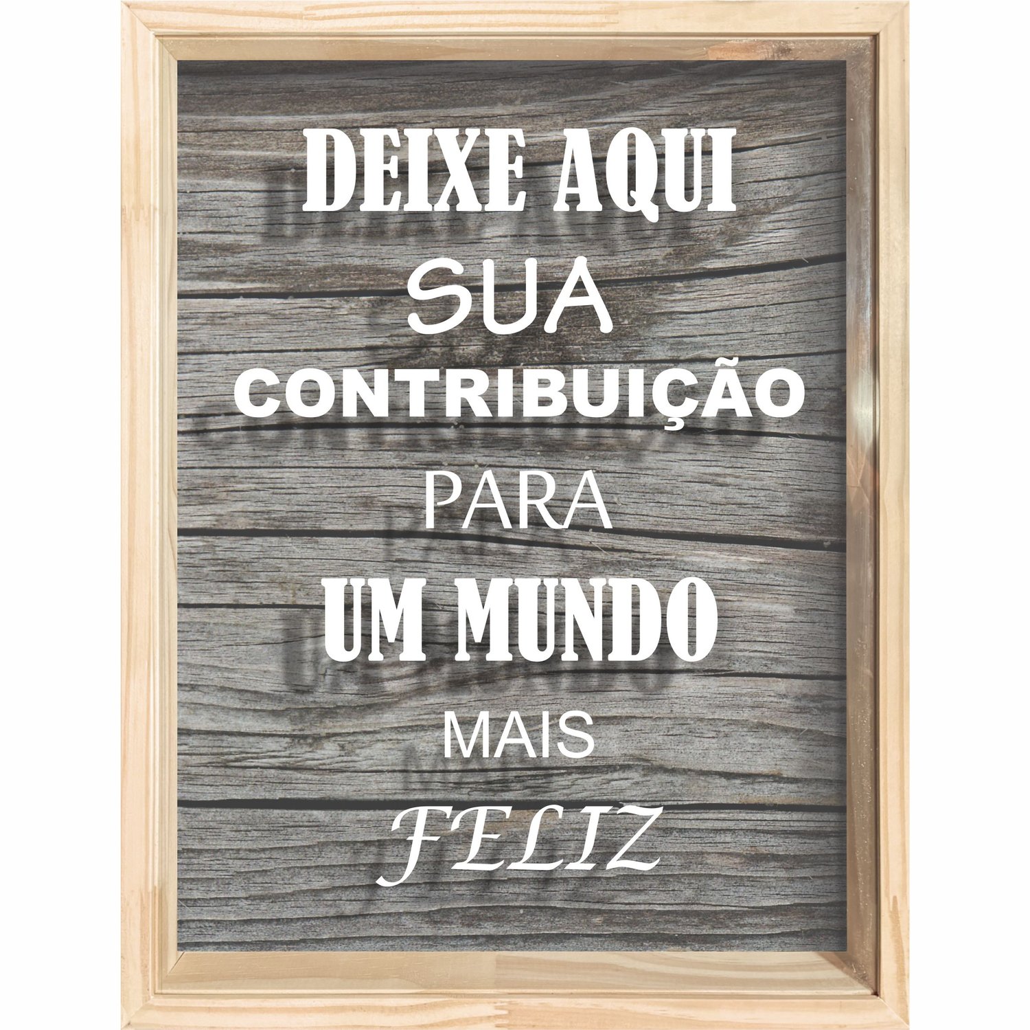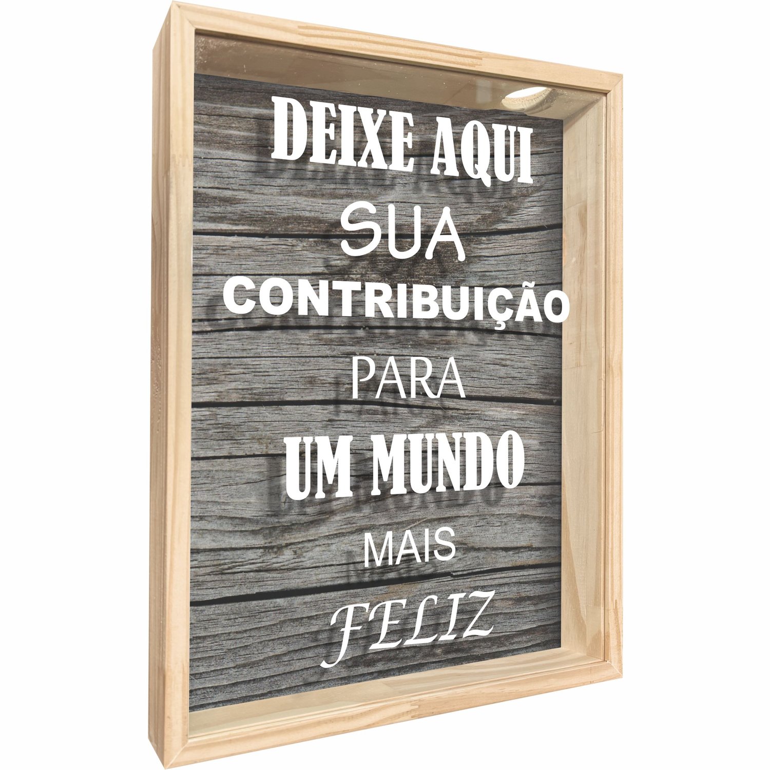 Quadro Porta Rolhas e Tampinhas Deixe Aqui Sua Contribuição Para um Mundo Mais Feliz