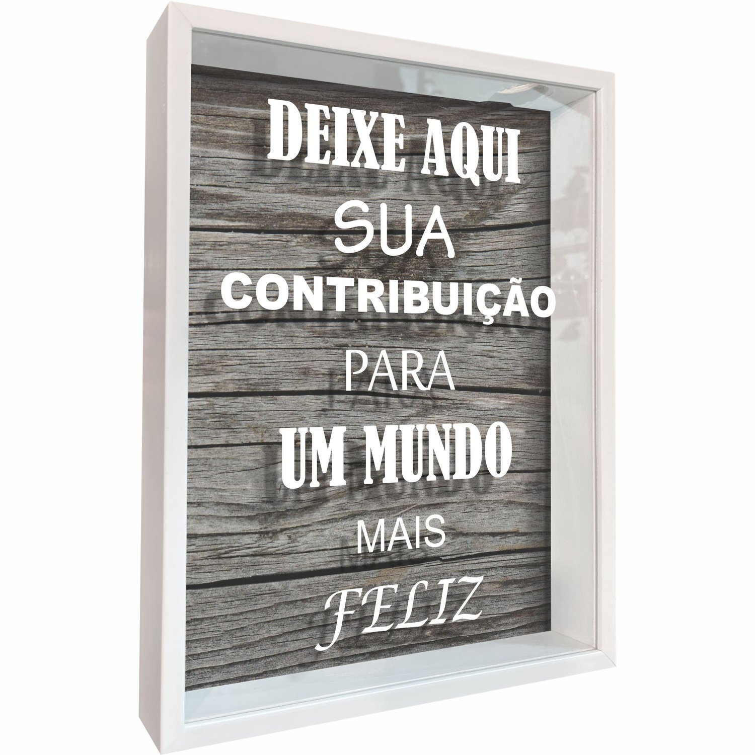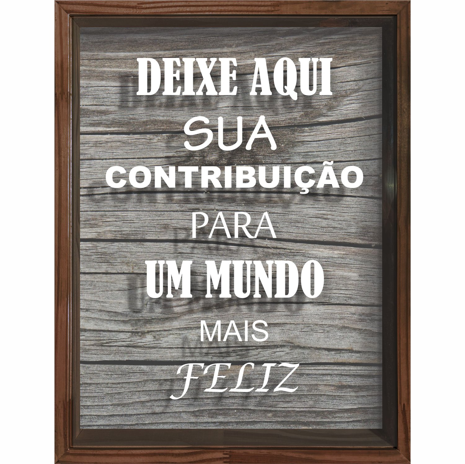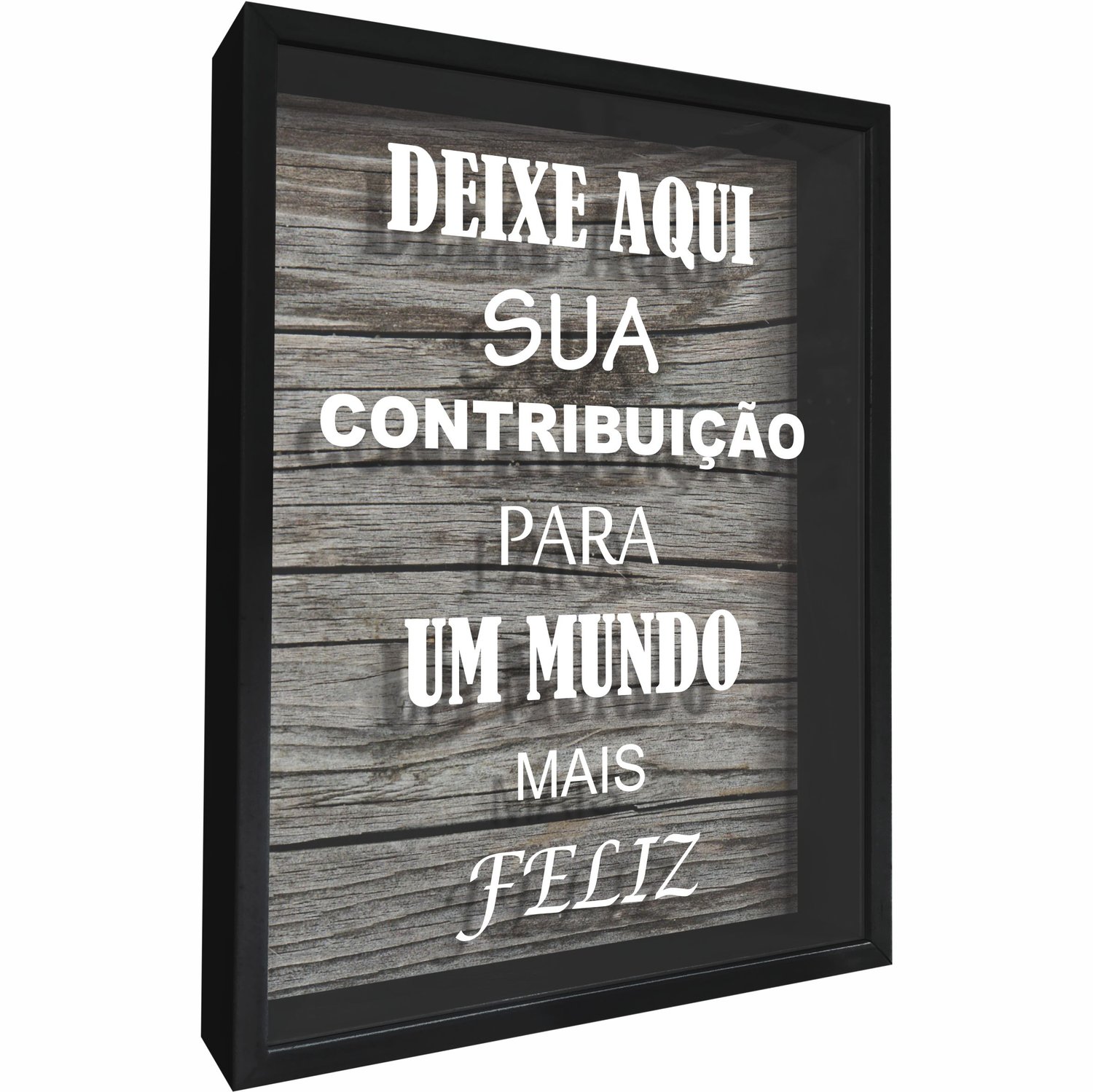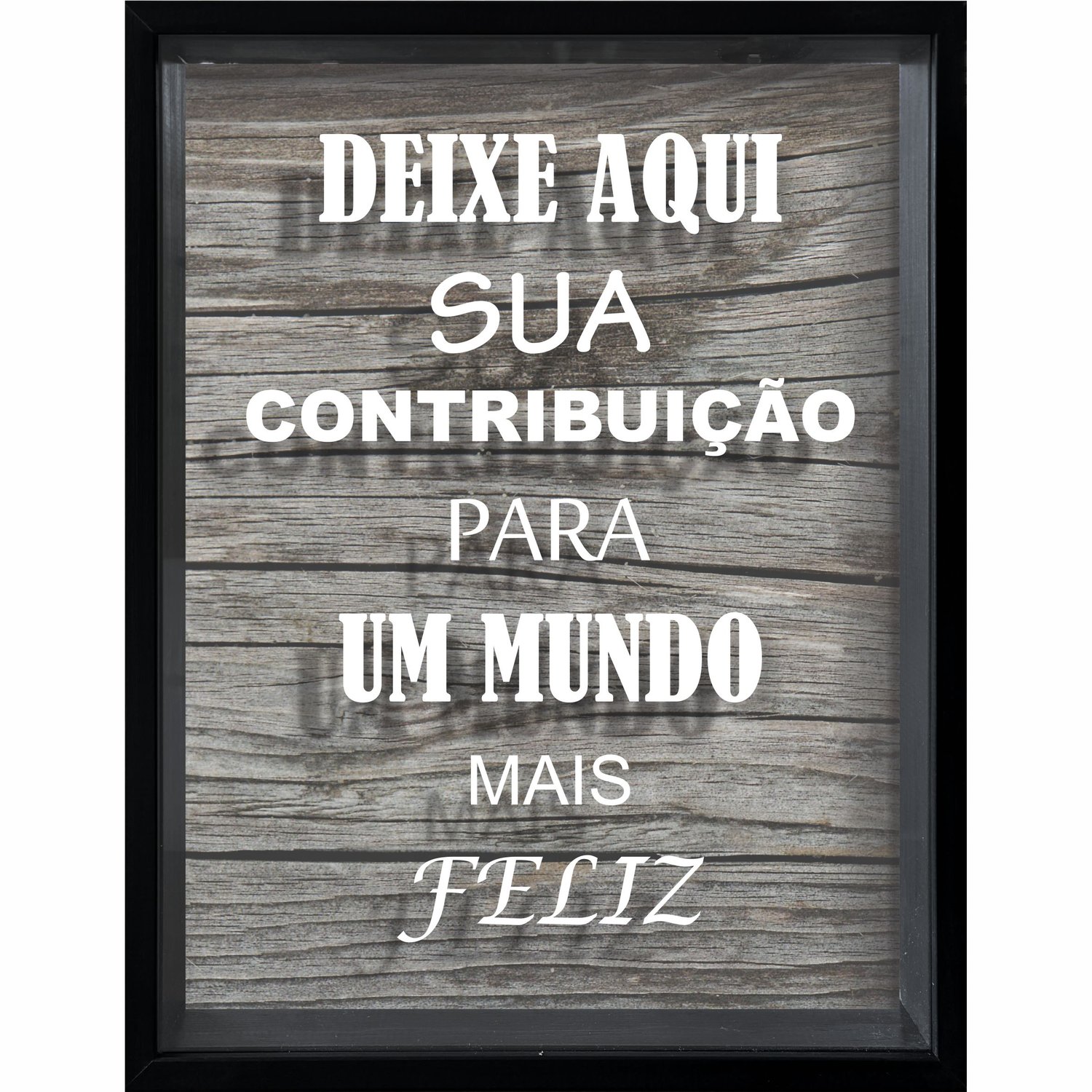 Quadro Porta Rolhas e Tampinhas Deixe Aqui Sua Contribuição Para um Mundo Mais Feliz