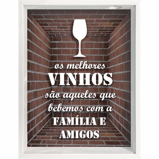 Oi! Fiquei em dúvida sobre o local em que a frase é colocada. A frase está no vidro (quando o quadro estiver cheio de rolhas, ela ainda estará evidente, já que a frase está de fora. Ou a frase está do lado de dentro? (Quando o quadro estiver cheio, não se