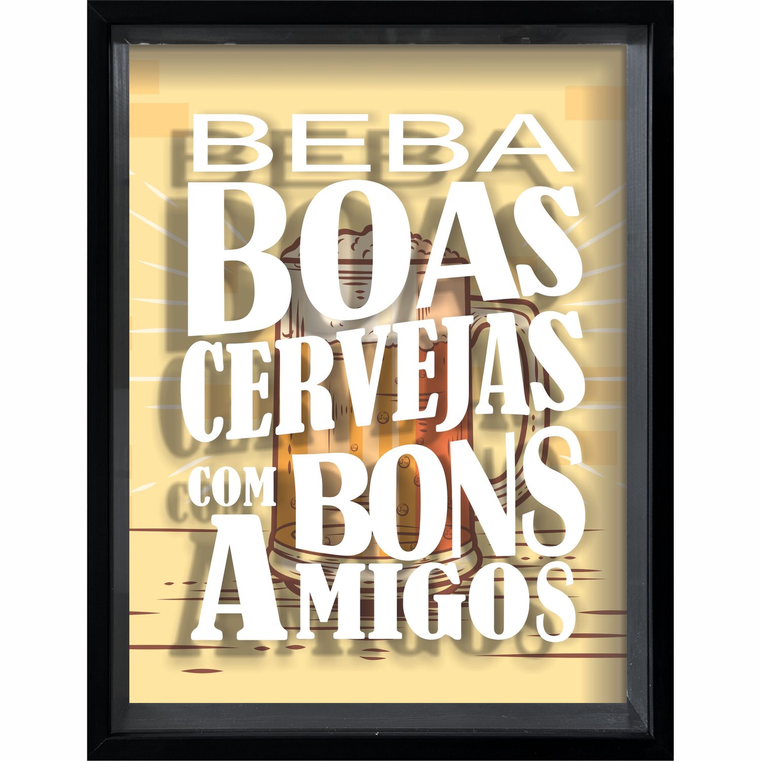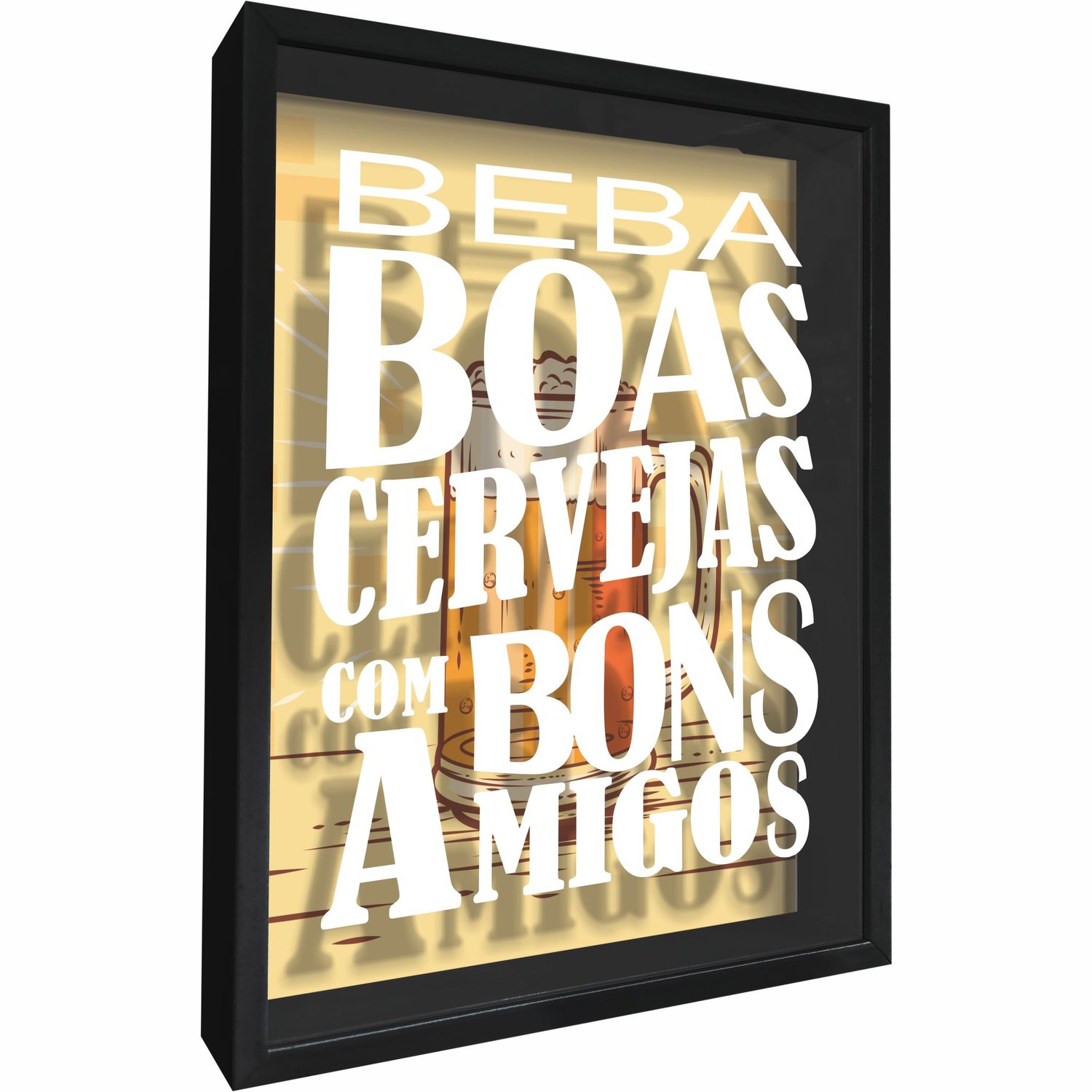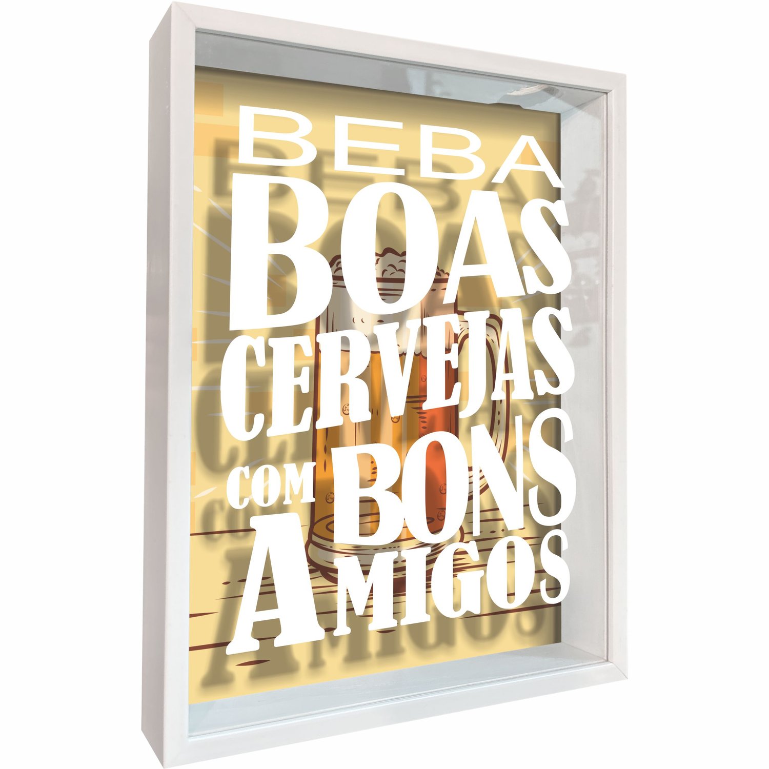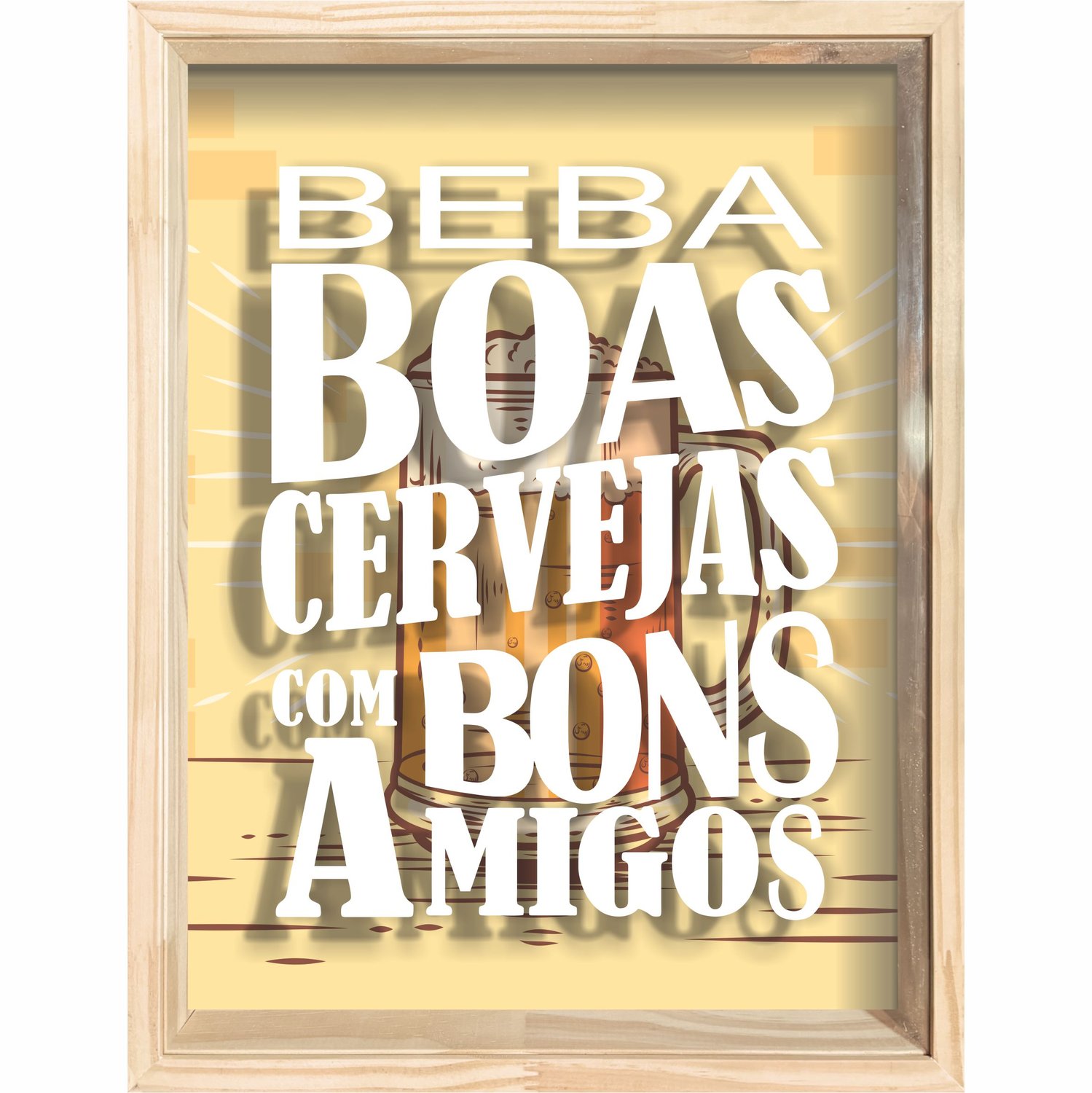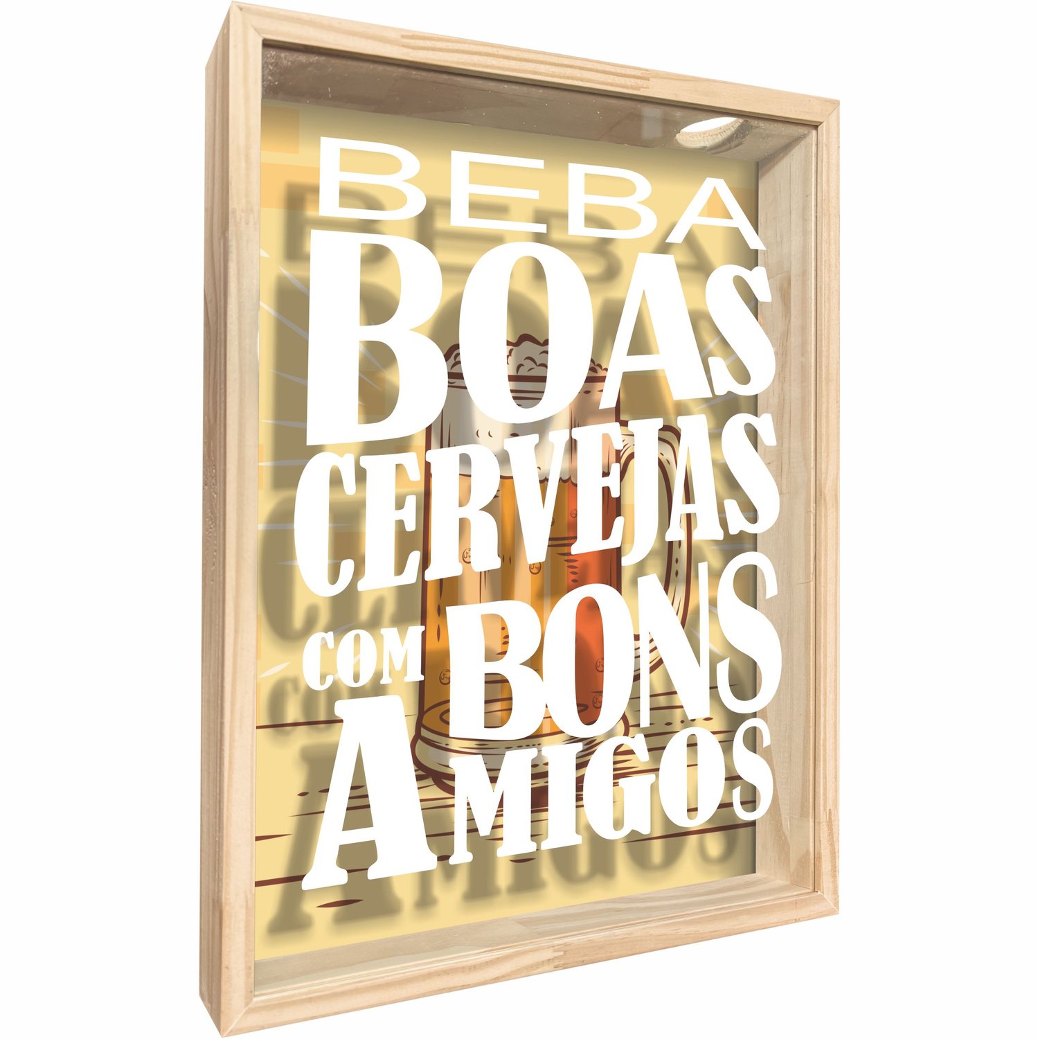 Quadro Porta Tampinhas Beba Boas Cervejas com Bons Amigos