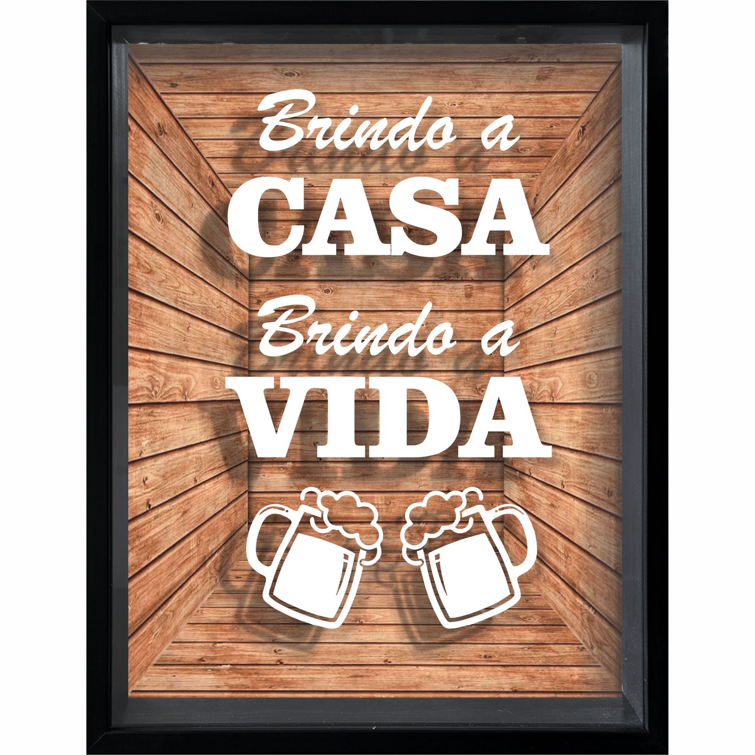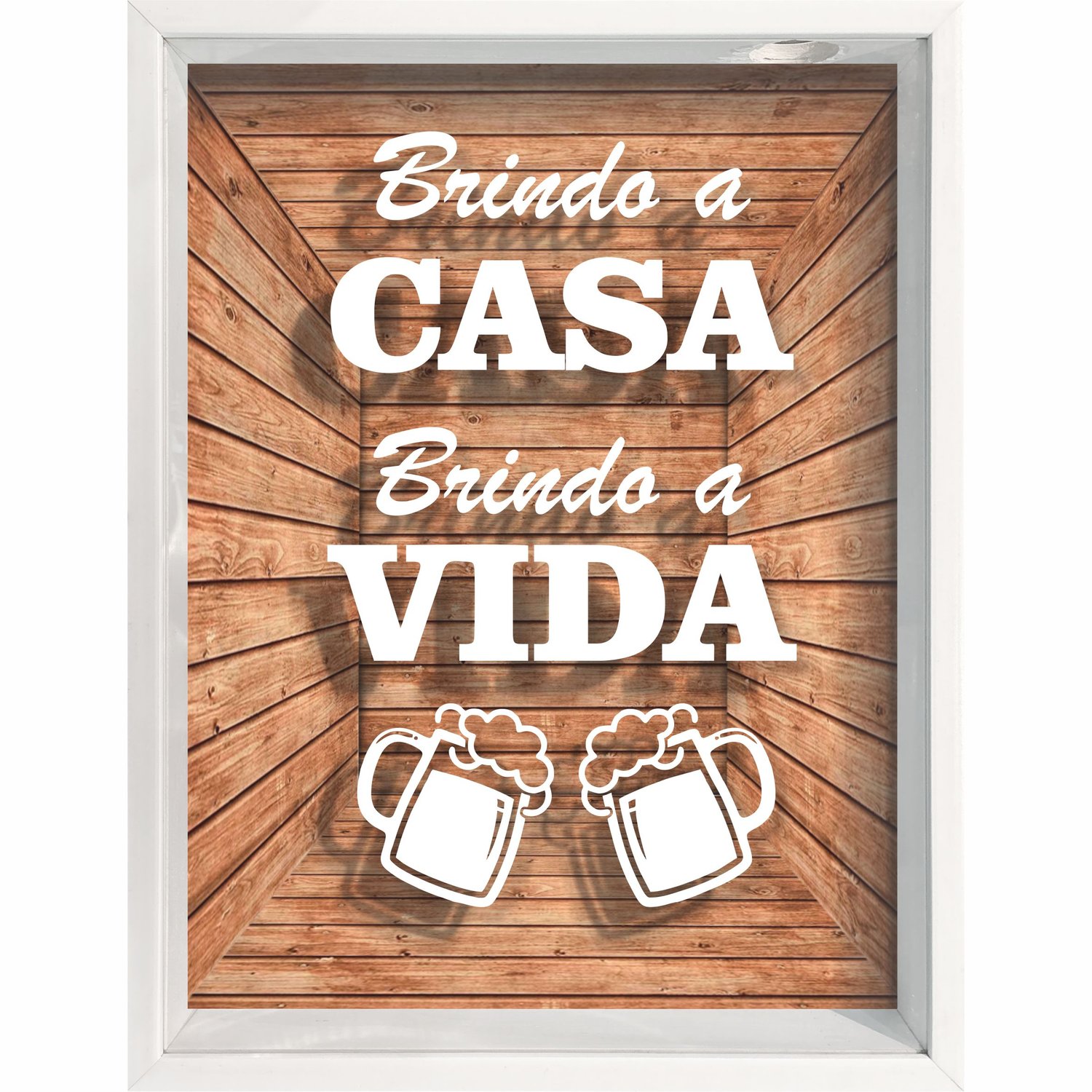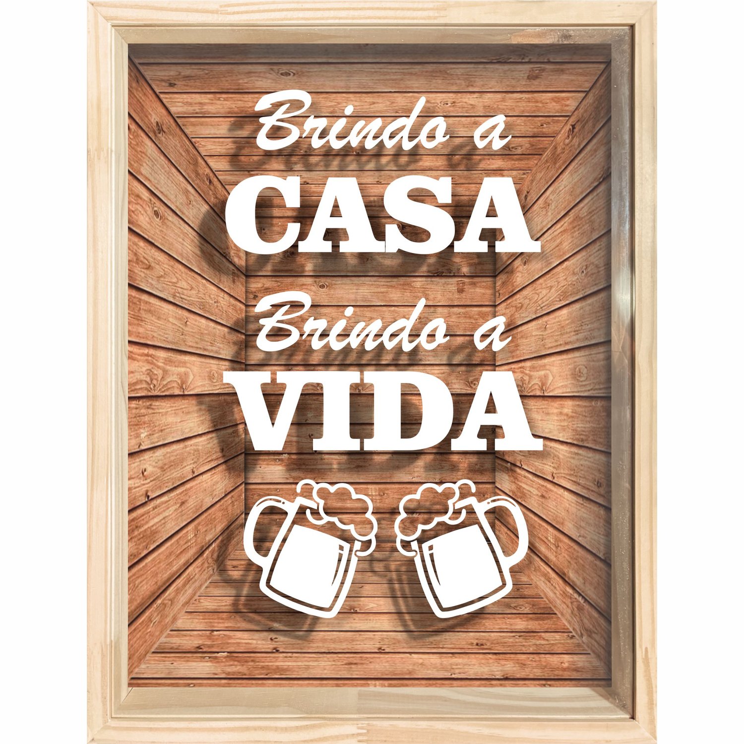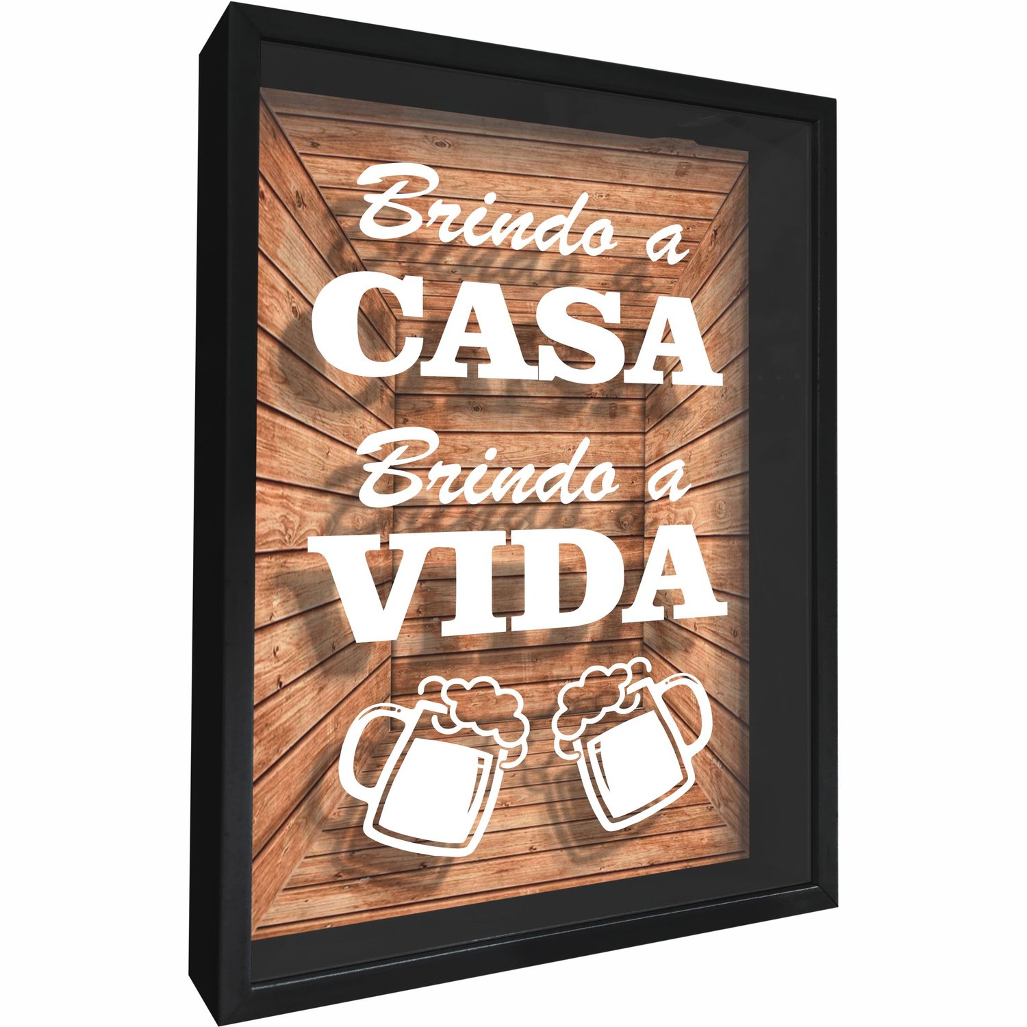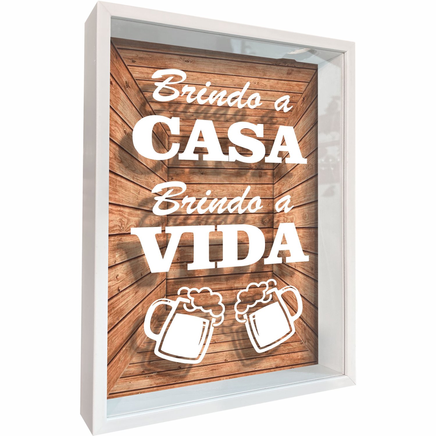 Quadro Porta Tampinhas Brindo a Casa Brindo a Vida