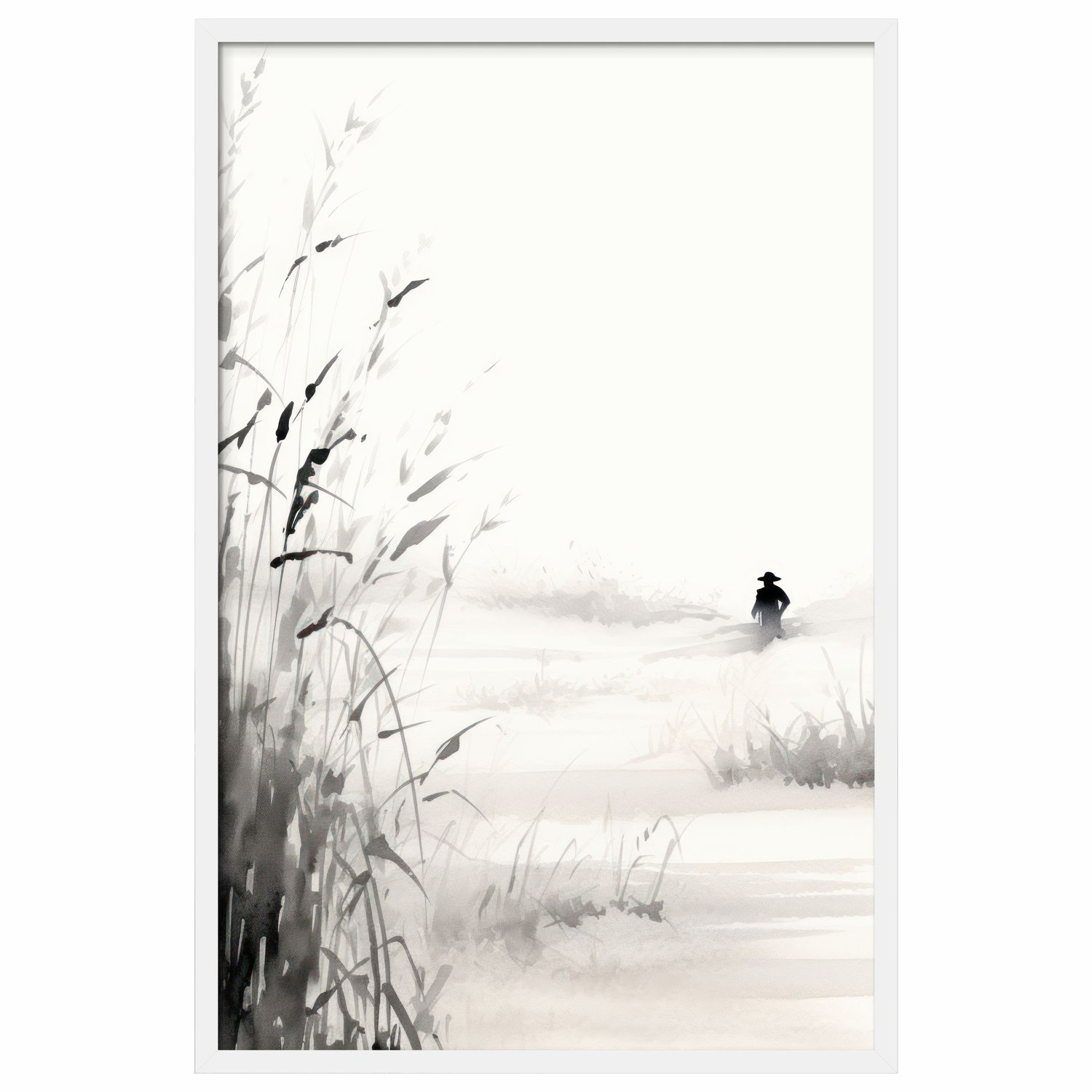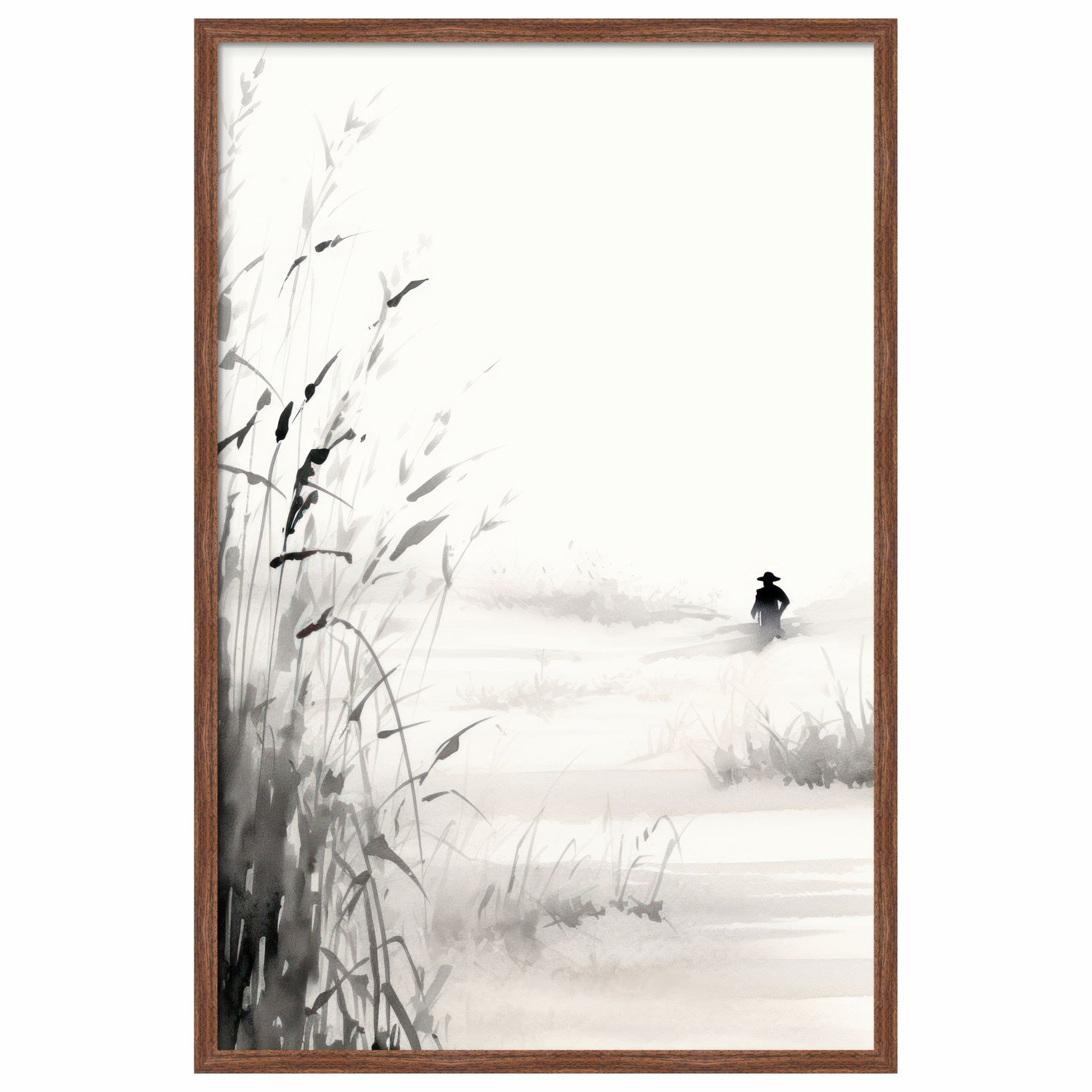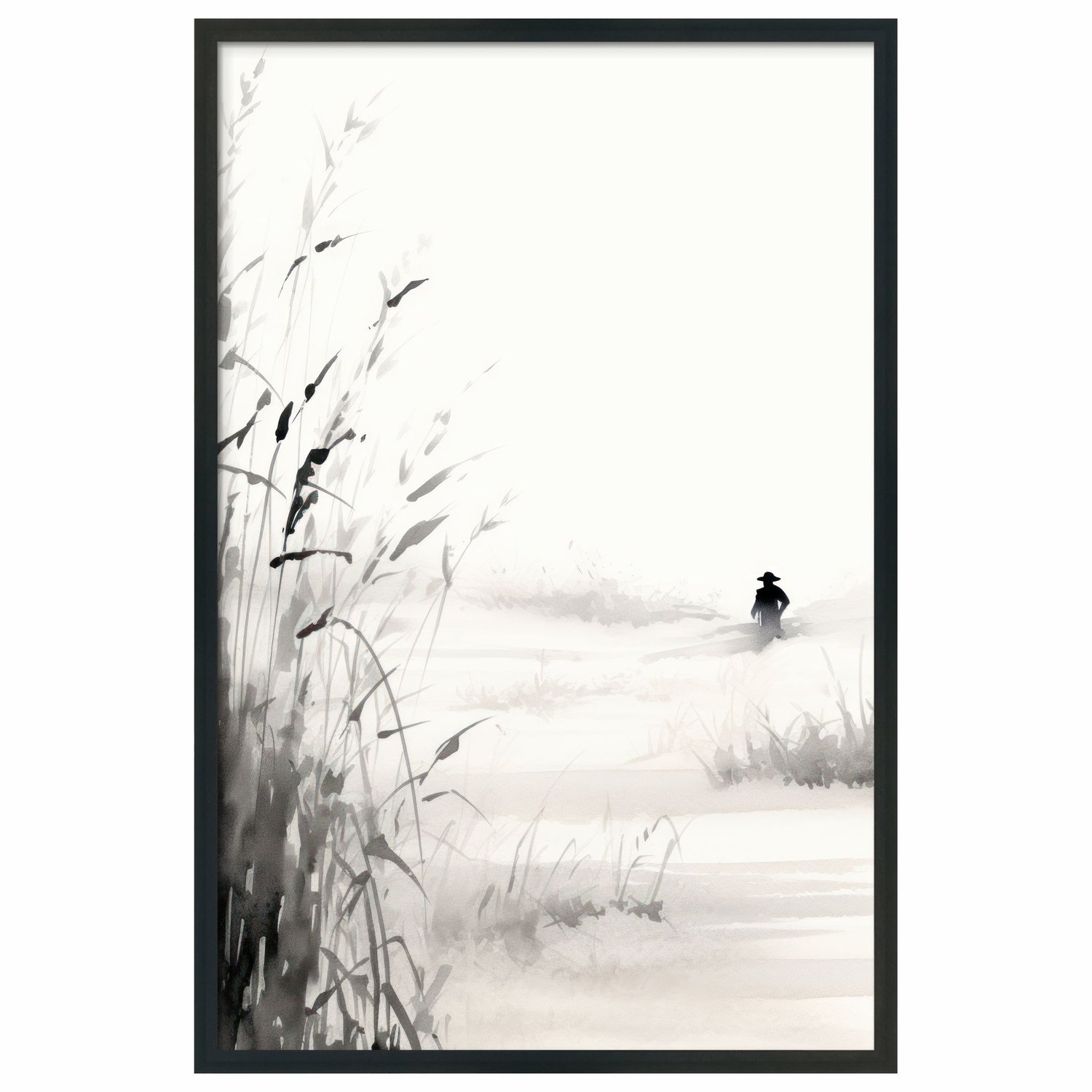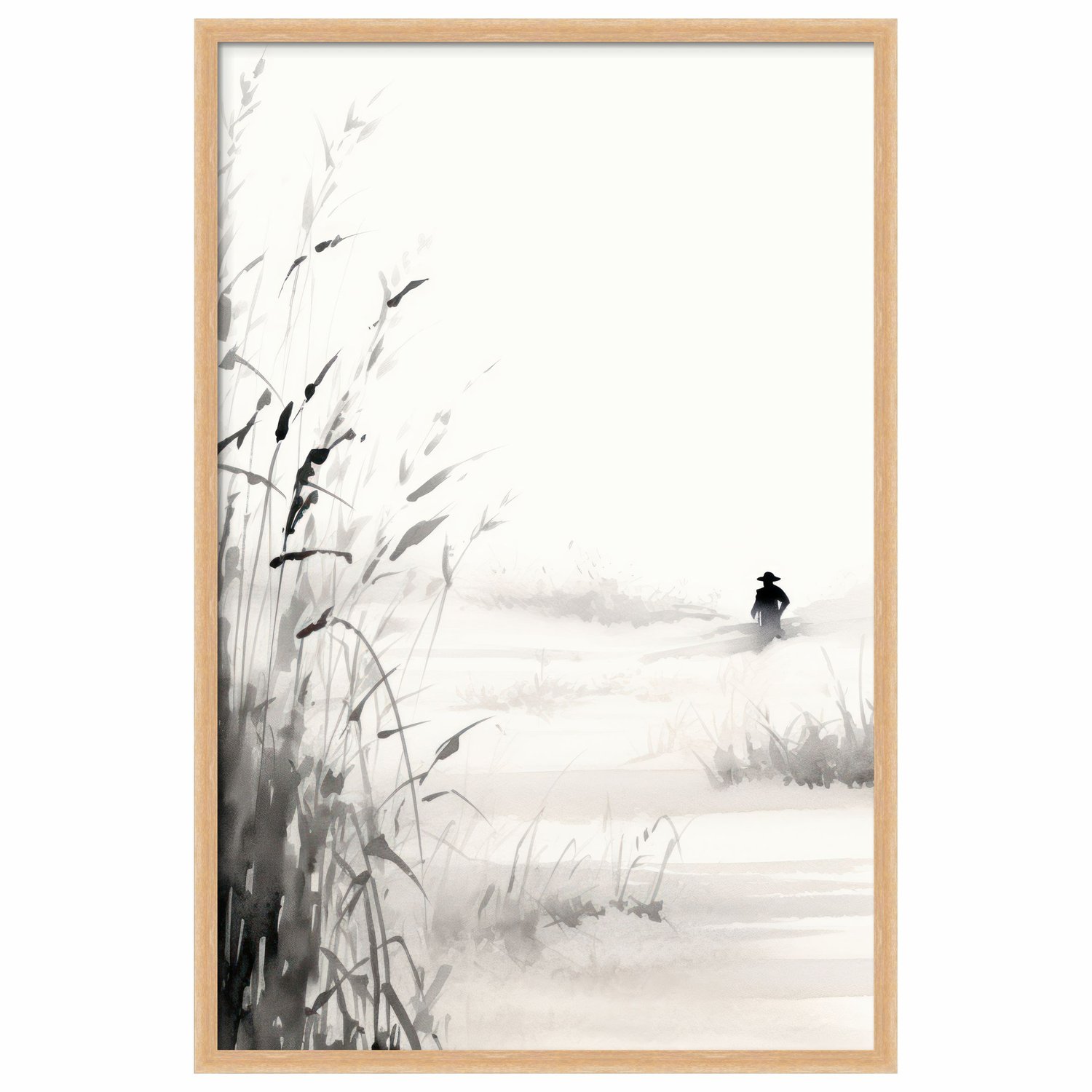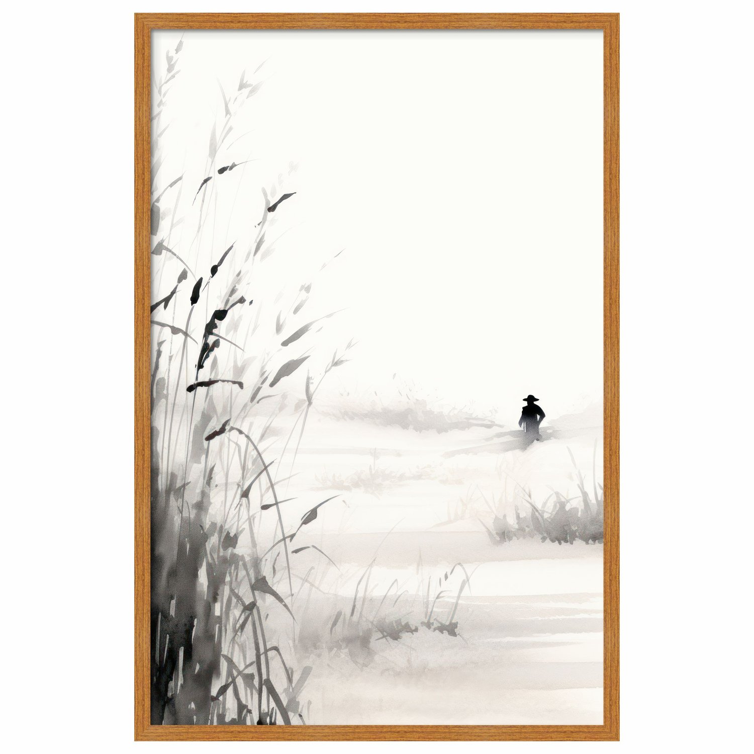 Quadro Decorativo Tanbo Otoko Pintura Homem em Meio aos Campos de Arroz no Estilo Sumiê