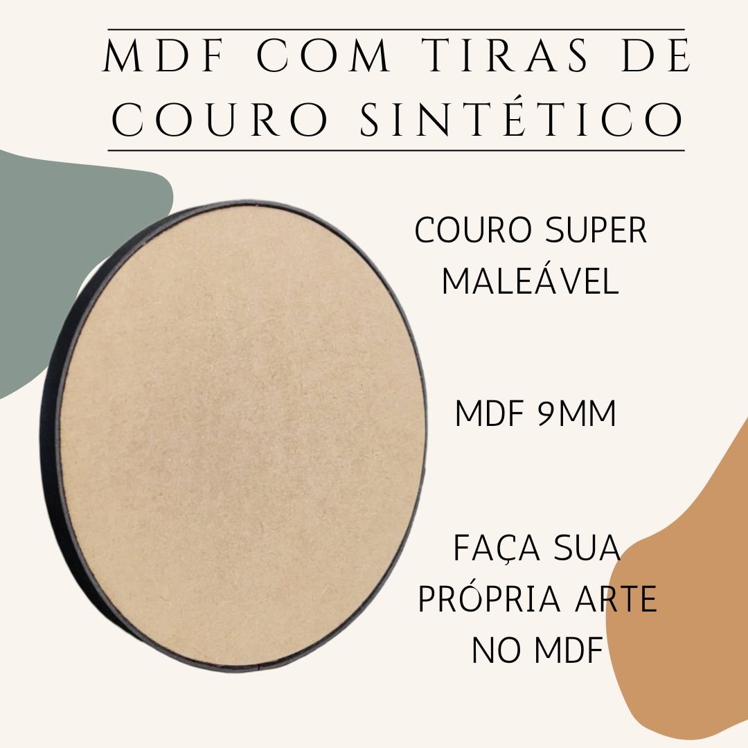 Recorte de mdf 9mm cru superfície lisa com couro sintético. O mdf cru é muito popular para artesanatos devido à sua facilidade de manuseio. É possível fazer artes incríveis para decorar qualquer ambiente que desejar. E o mais incrível ainda, é que nesse modelo acompanha a tira de couro, dando um excelente acabamento e deixando sua peça ainda mais bonita!!!