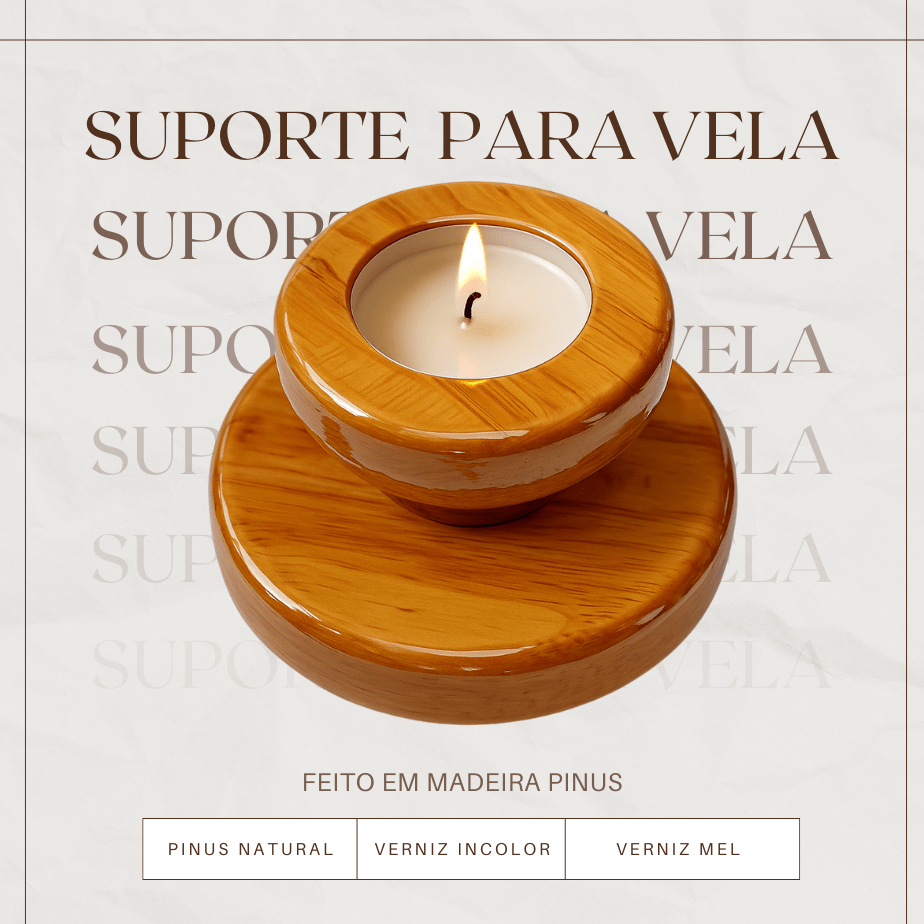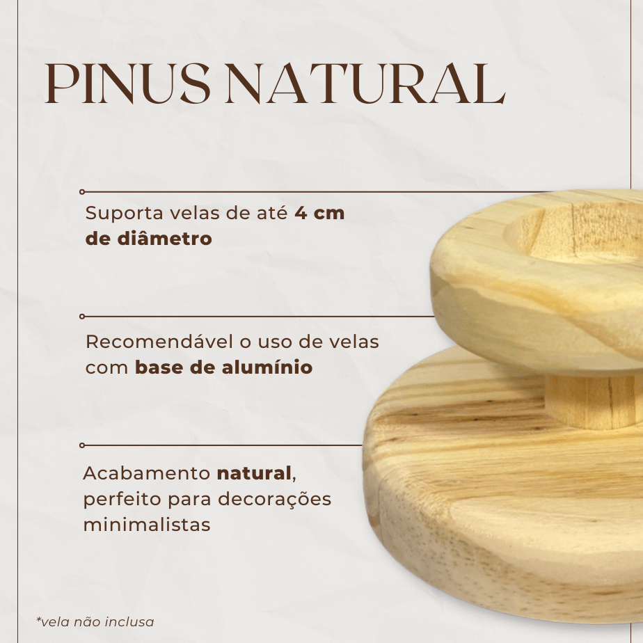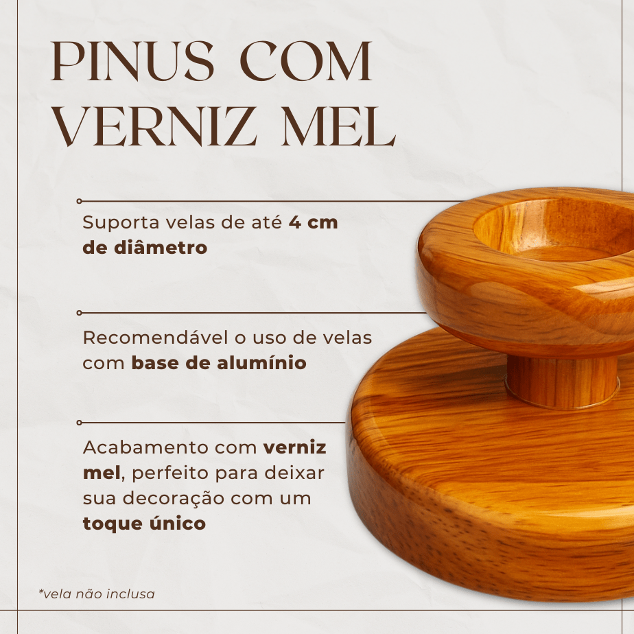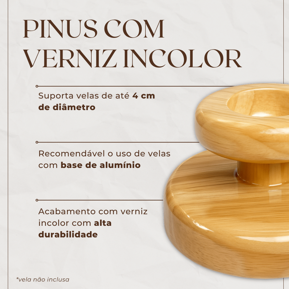Suporte Porta Velas Castiçal Em Madeira Pinus