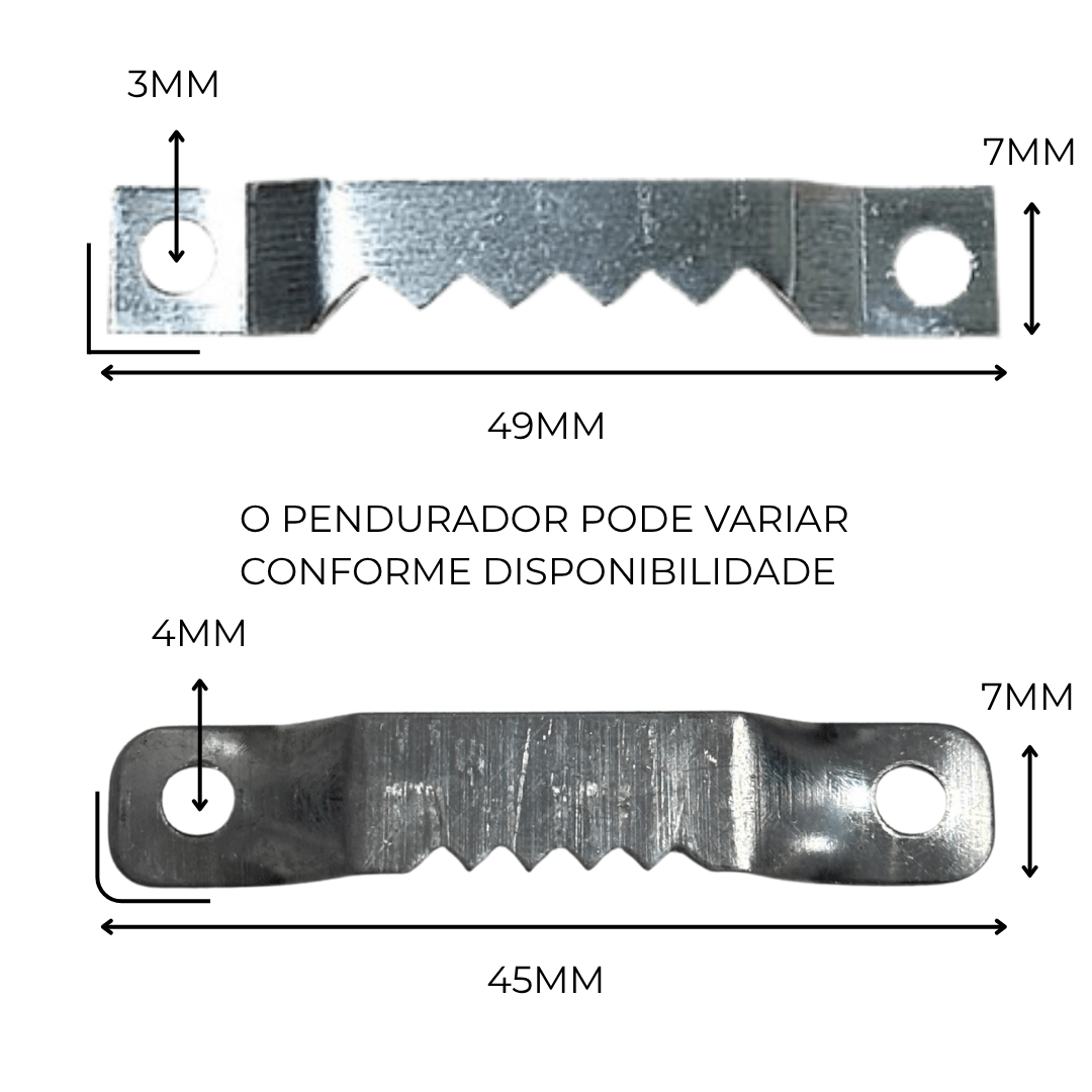 Suporte Pendurador Serrilha para Quadros Decorativos e Espelhos. Esse pendurador é simples e muito prático para pendurar quadros, espelhos e outros objetos em paredes. A escolha do pendurador adequado depende de vários fatores, incluindo o tamanho e o peso do objeto que você pretende pendurar. Certifique-se de selecionar um suporte que seja proporcional e atenda às suas necessidades específicas.