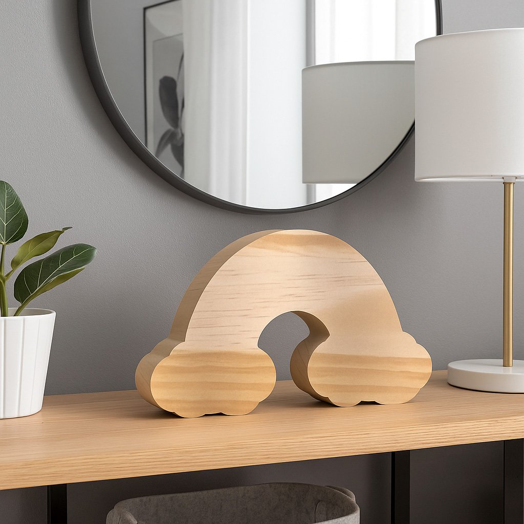 Feito em pinus selecionado, nosso recorte em forma de arco-íris une a beleza natural da madeira ao charme lúdico e delicado das formas decorativas. É a peça perfeita para quem deseja trazer cor, leveza e originalidade a paredes, portas ou móveis, criando composições únicas que transitam do estilo rústico ao cottage, do escandinavo ao criativo. Leve e resistente, ele chega lixado e com acabamento impecável, pronto para receber verniz ou tinta para personalização. É a base ideal para pintura, aplicação de tecidos, colagem de elementos decorativos ou gravações a laser. Seja em um painel temático, numa plaquinha cheia de significado ou como detalhe especial em peças de artesanato, o recorte em forma de arco-íris é um recurso versátil e cheio de personalidade. Ele se adapta com suavidade a projetos delicados ou ousados, sempre com o calor e a textura natural da madeira pinus. Com esse detalhe encantador, cada ambiente ganha cor, poesia e identidade própria, como um pedacinho de céu feito à mão.