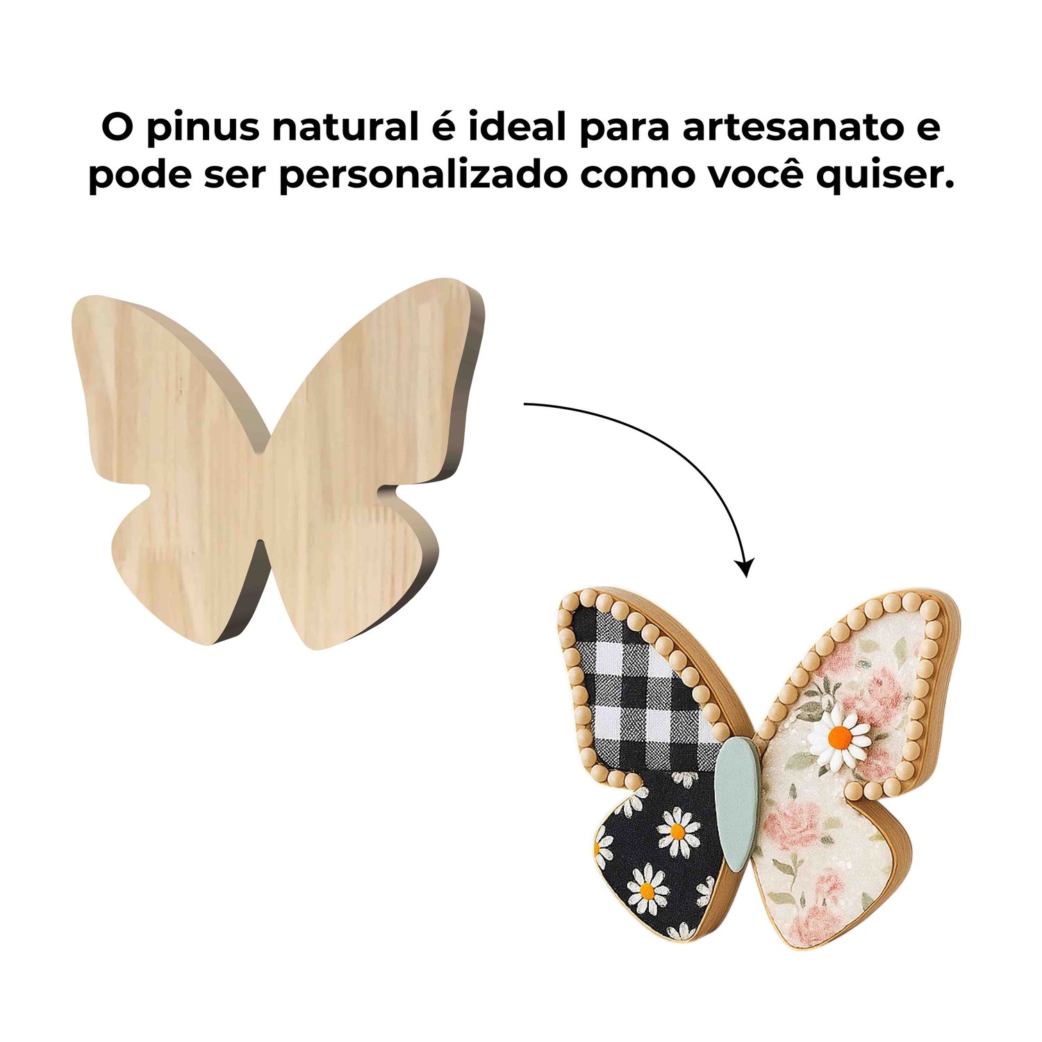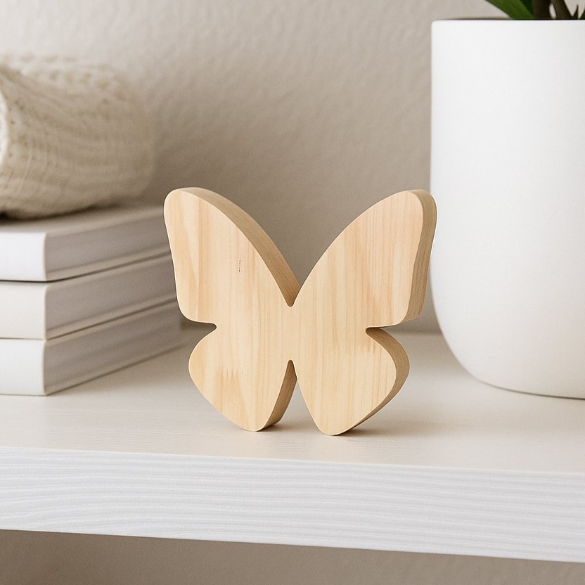 Produzido em madeira pinus, cuidadosamente selecionada, nosso recorte em formato de borboleta é o detalhe que transforma qualquer espaço com leveza e poesia. Com suas asas simétricas e linhas orgânicas, ele transmite a sensação de liberdade, renovação e beleza, tornando-se perfeito para ambientes que pedem um toque especial, seja no quarto das crianças, na porta maternidade, em peças artesanais ou como destaque em um painel decorativo.
