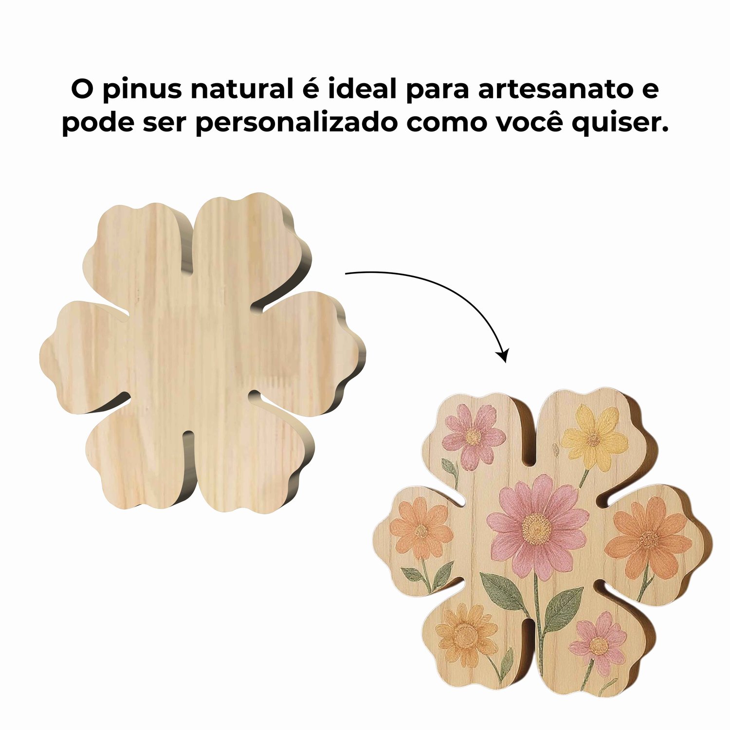 Escolha o tamanho que melhor se adapta ao seu projeto e transforme seu ambiente com a delicadeza e o frescor da madeira pinus em formato de flor — um detalhe que encanta e inspira.