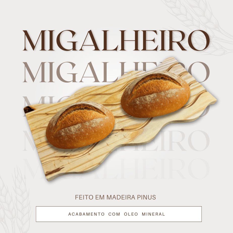 Tábua de Pão Migalheiro De Madeira Pinus Com Óleo Mineral