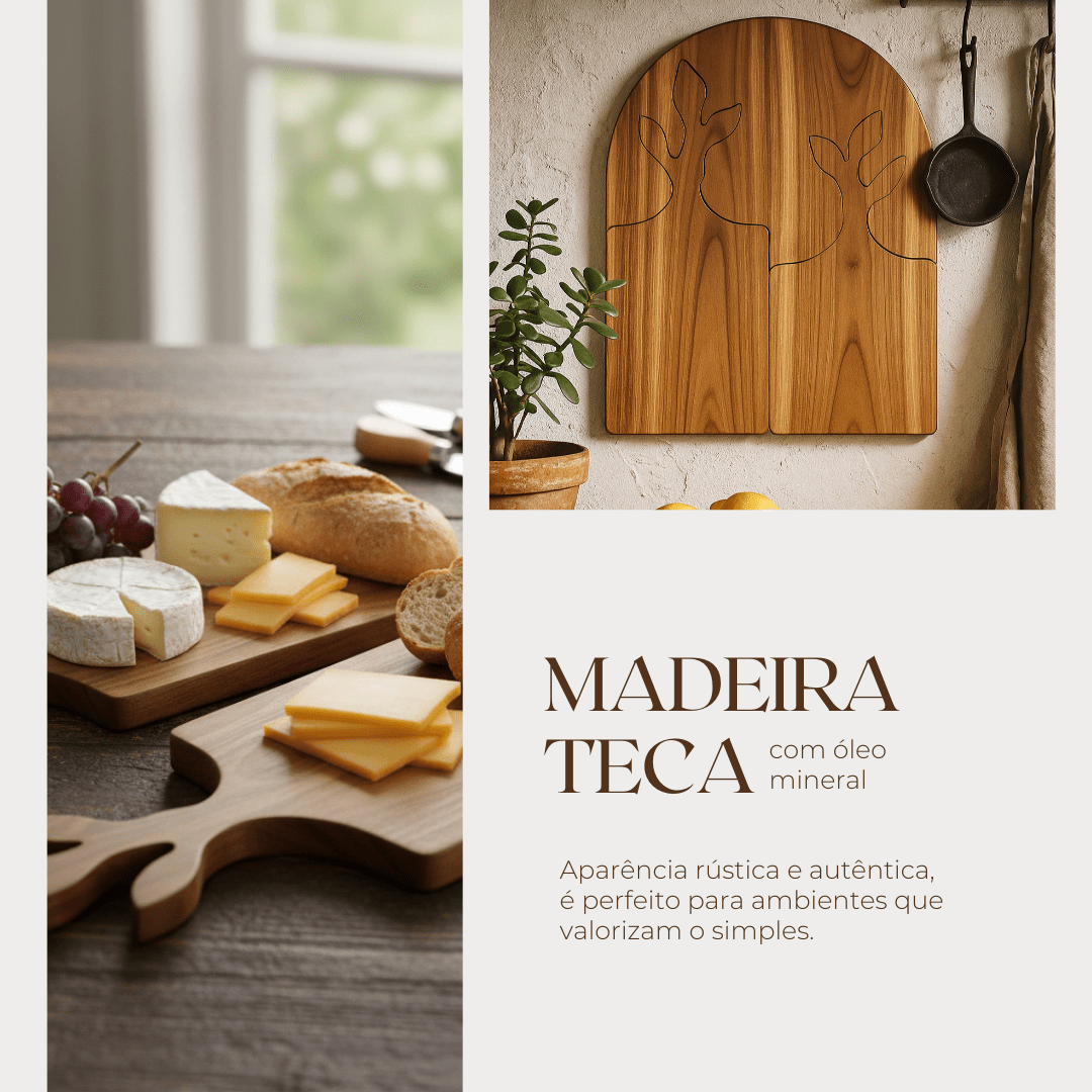 Nossa Tábua de Servir em Madeira Teca é uma peça artesanal feita com madeira nobre, conhecida por sua resistência natural à umidade e pelo tom quente que valoriza qualquer ambiente.