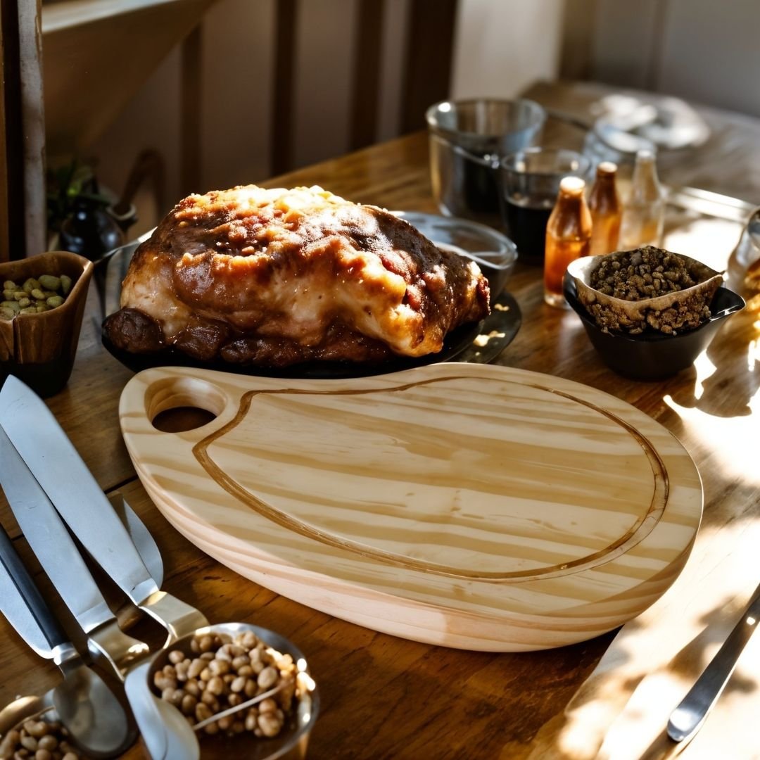 Tábua de Servir em Madeira Maciça de Pinus com óleo mineral próprio para o contato com alimentos, são ideais para servir hambúrgueres, porções, queijos, frios, churrascos, entre outros. O pinus é uma madeira resistente e de alta durabilidade.