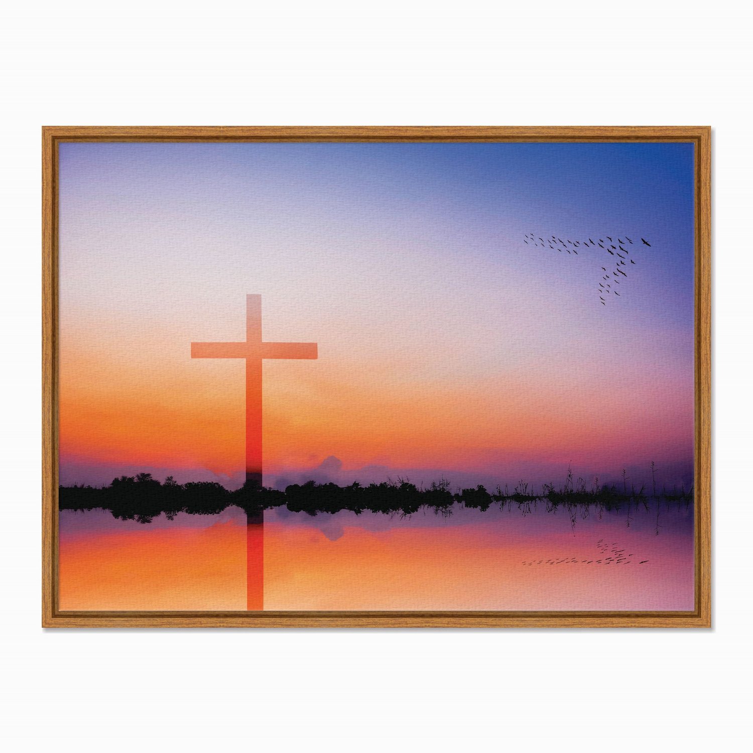 Quadro em Tela Canvas Cruz Sob o Pôr do Sol