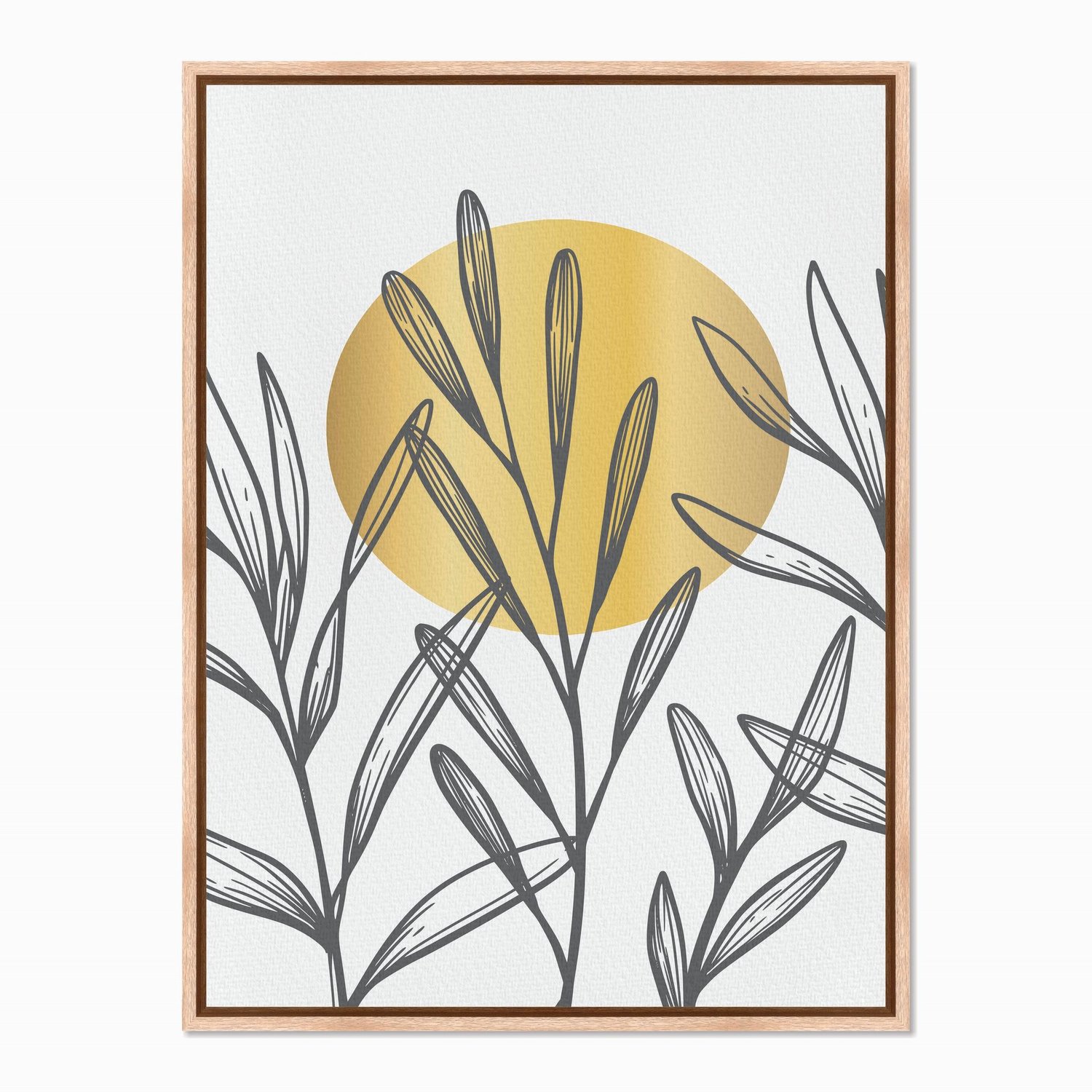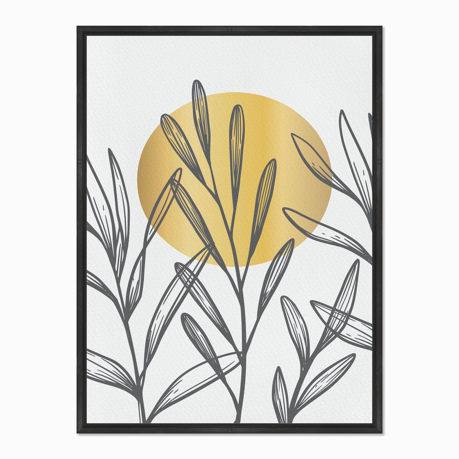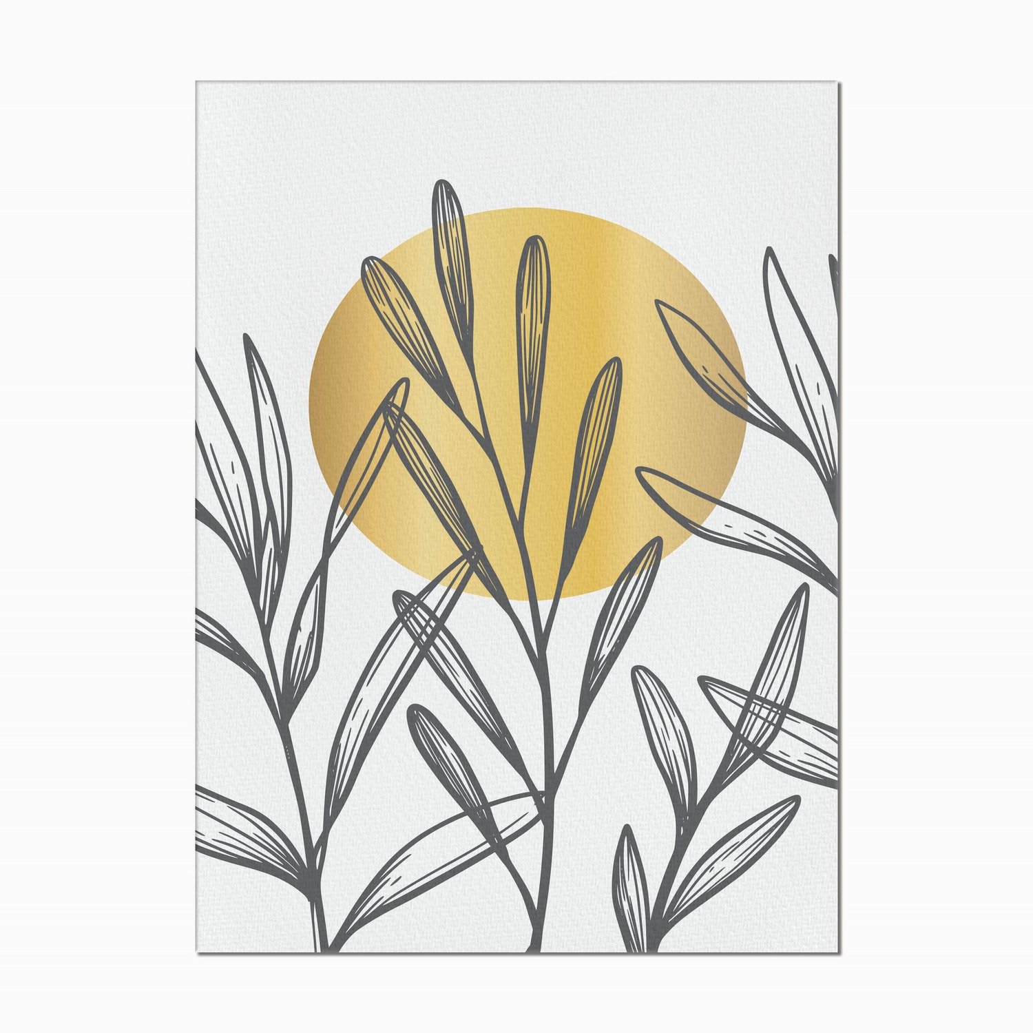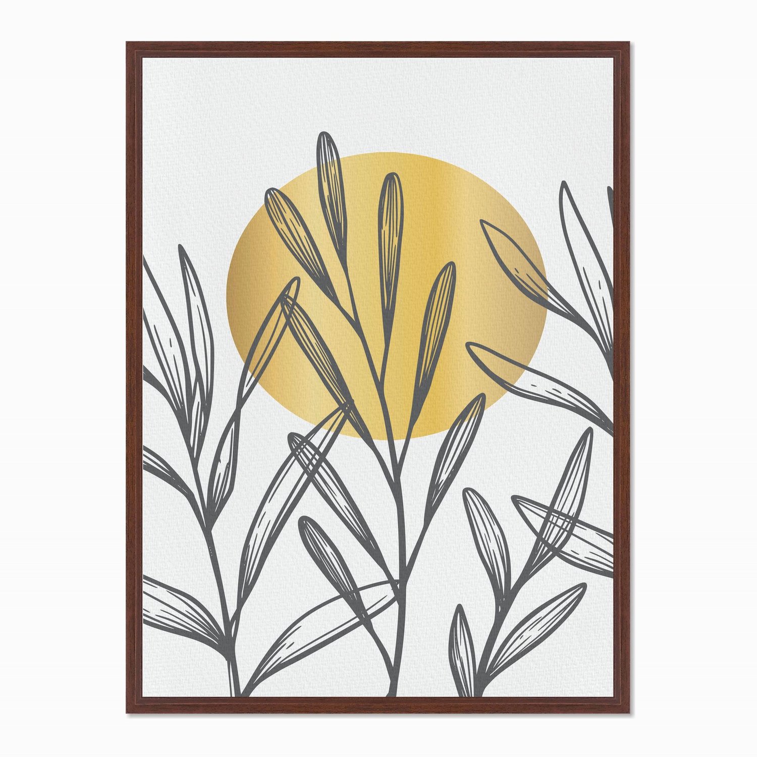 Quadro em Tela Canvas Folhas com Círculo Amarelo